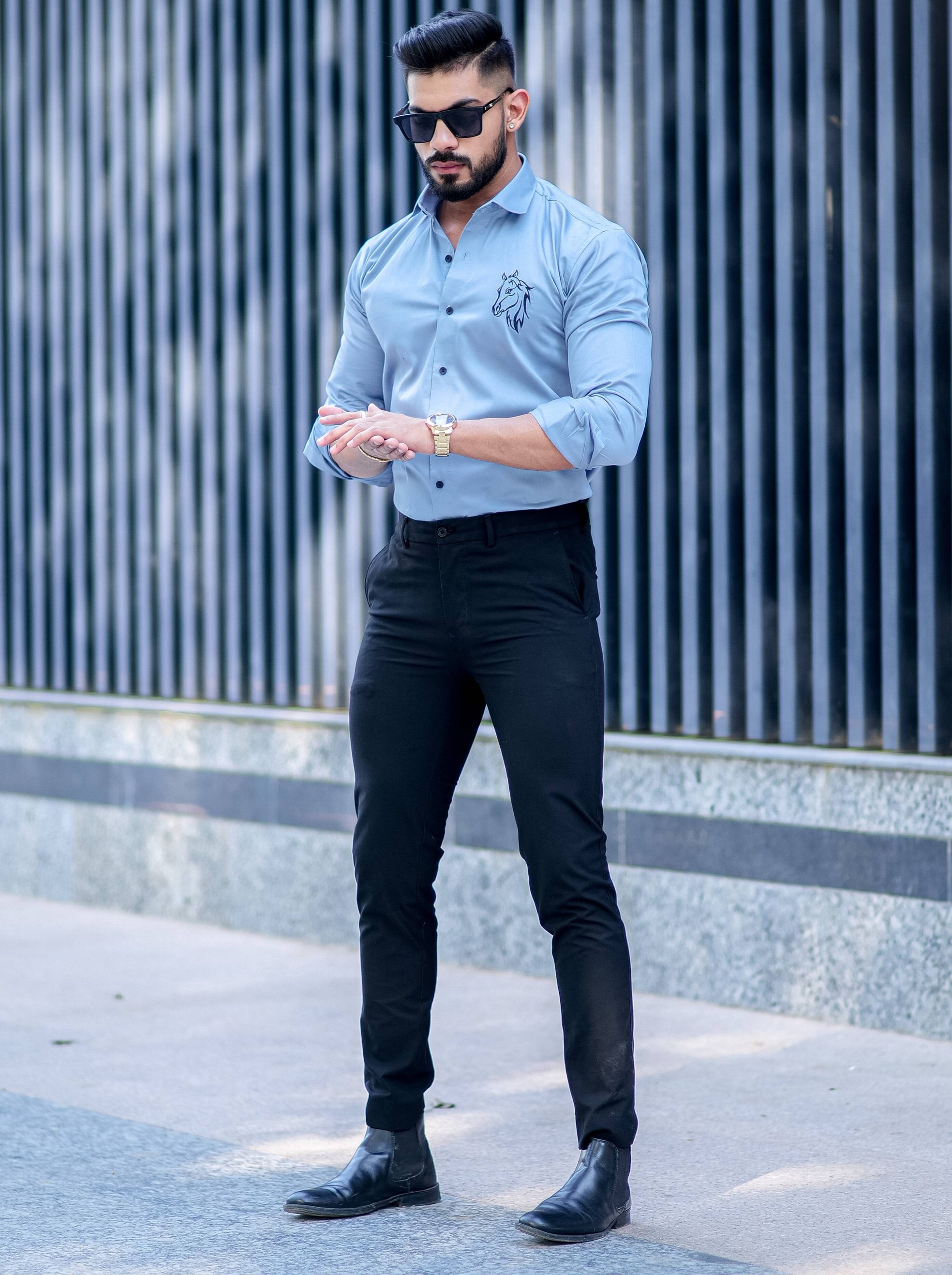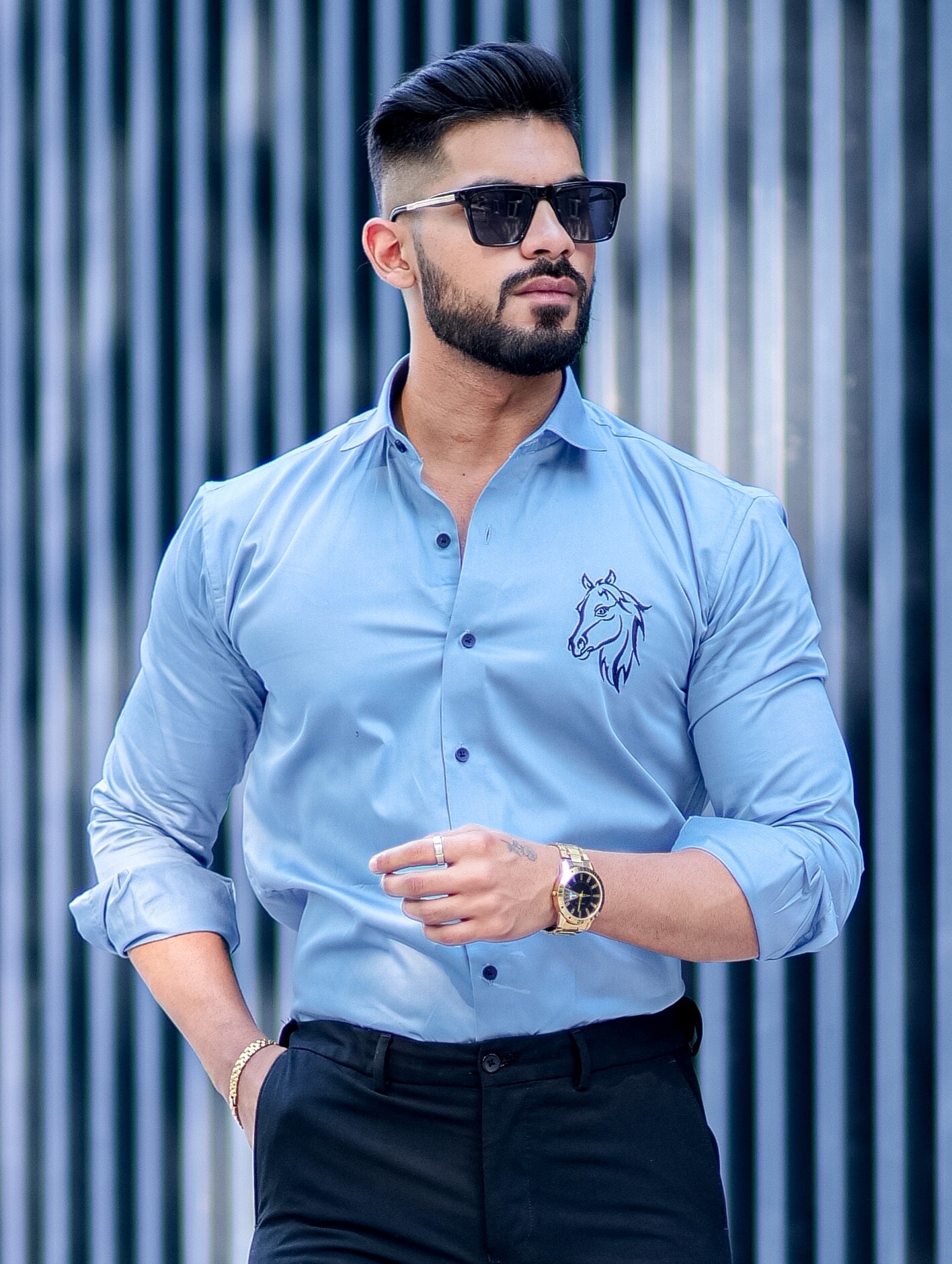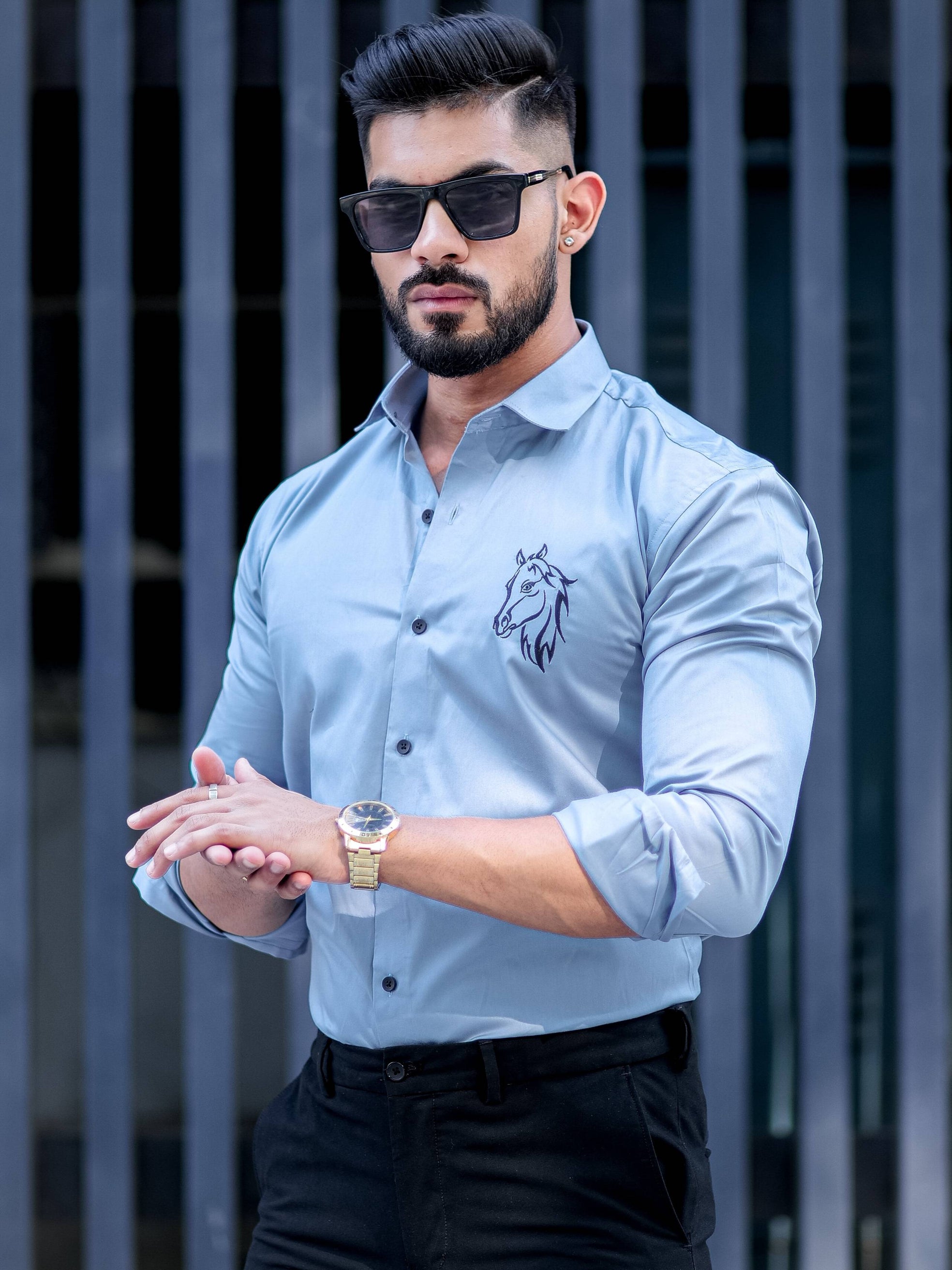 Horse Embroidered Sky Premium Cotton Shirt