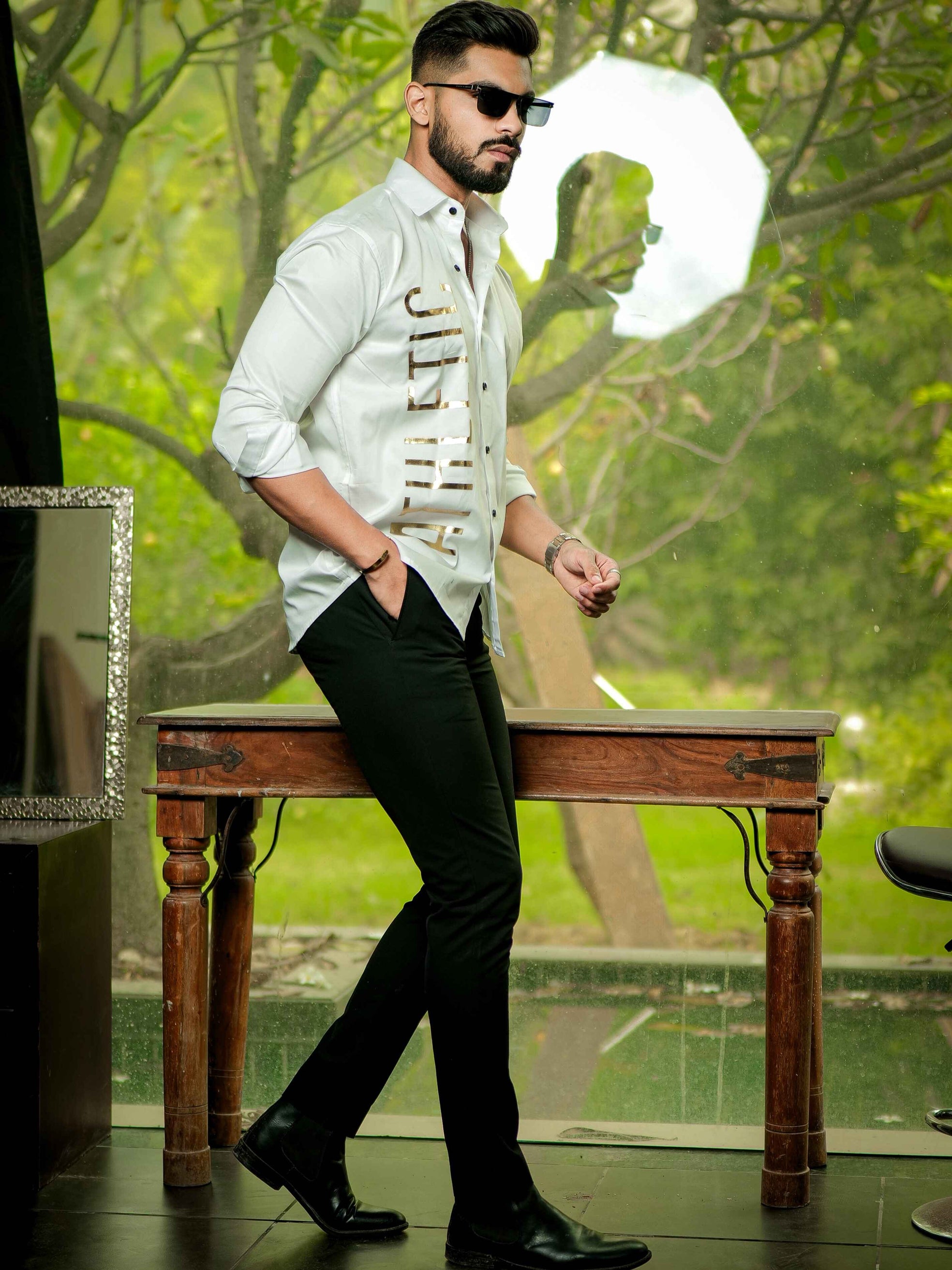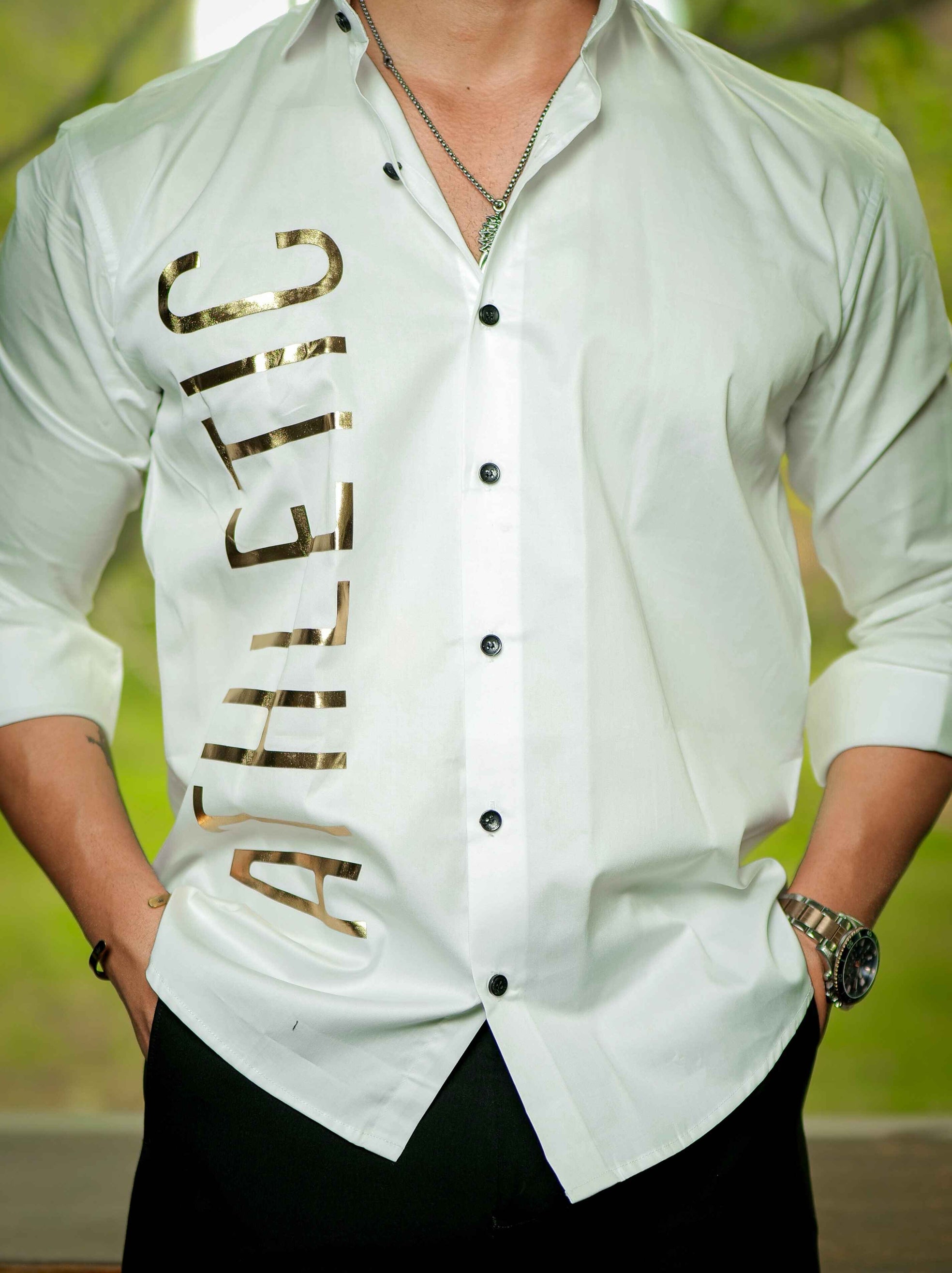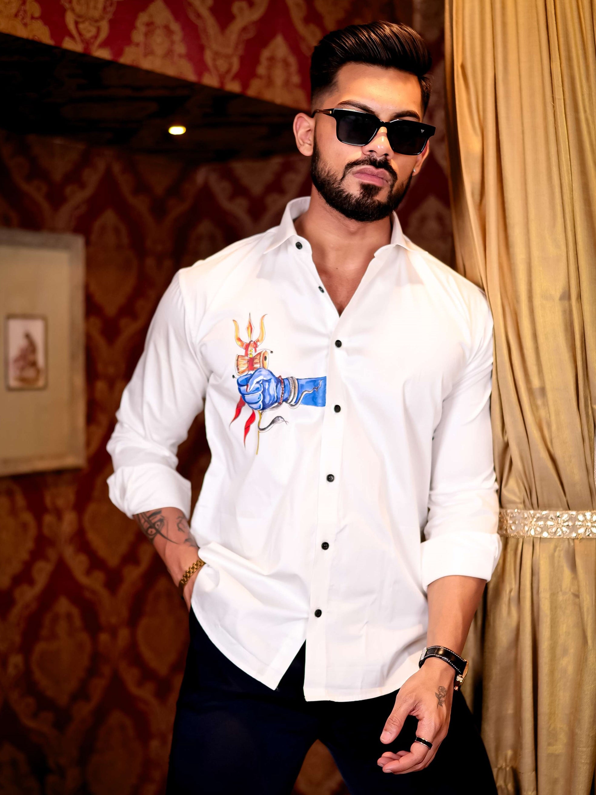 White Golden Embroidered Mufasa Luxury Shirt