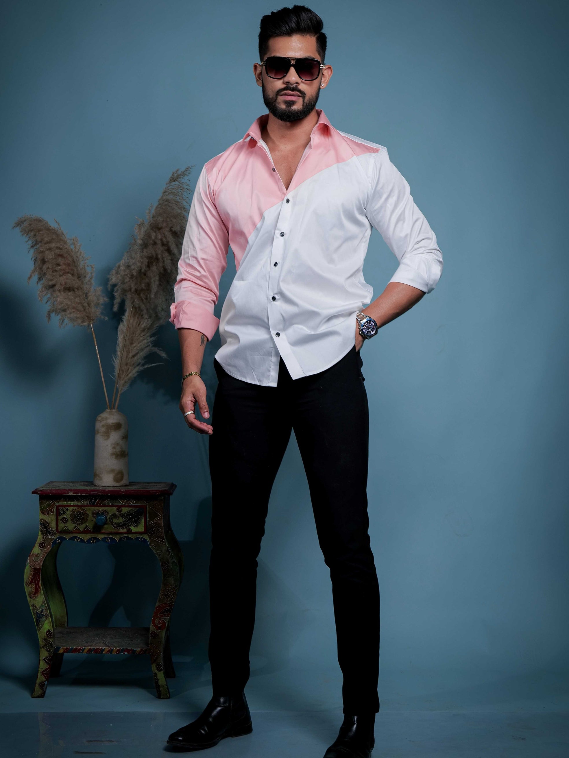 White And Peach Designer Satin Cotton Shirt