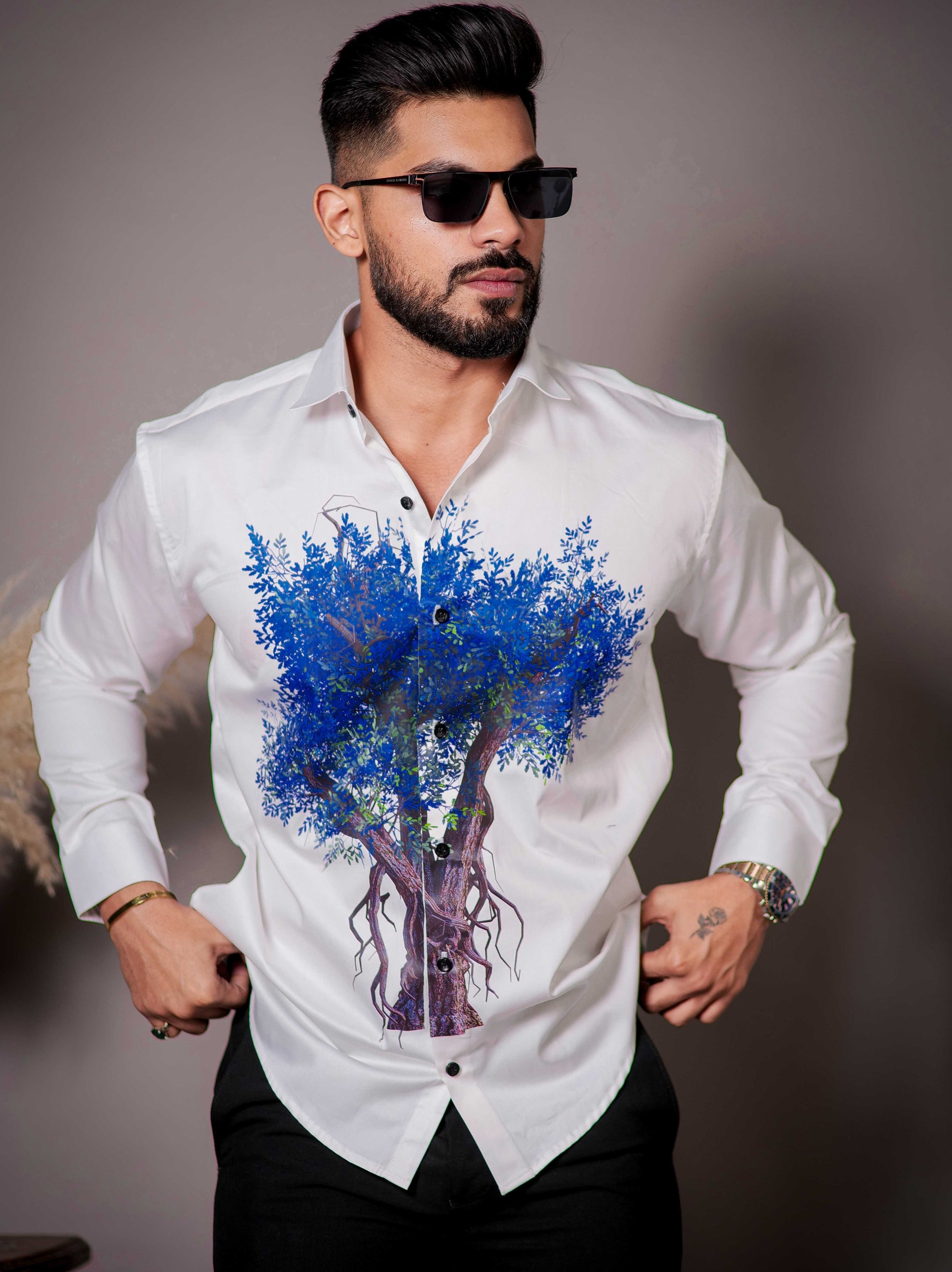White Club Wear Printed Satin Cotton Shirt For Men's