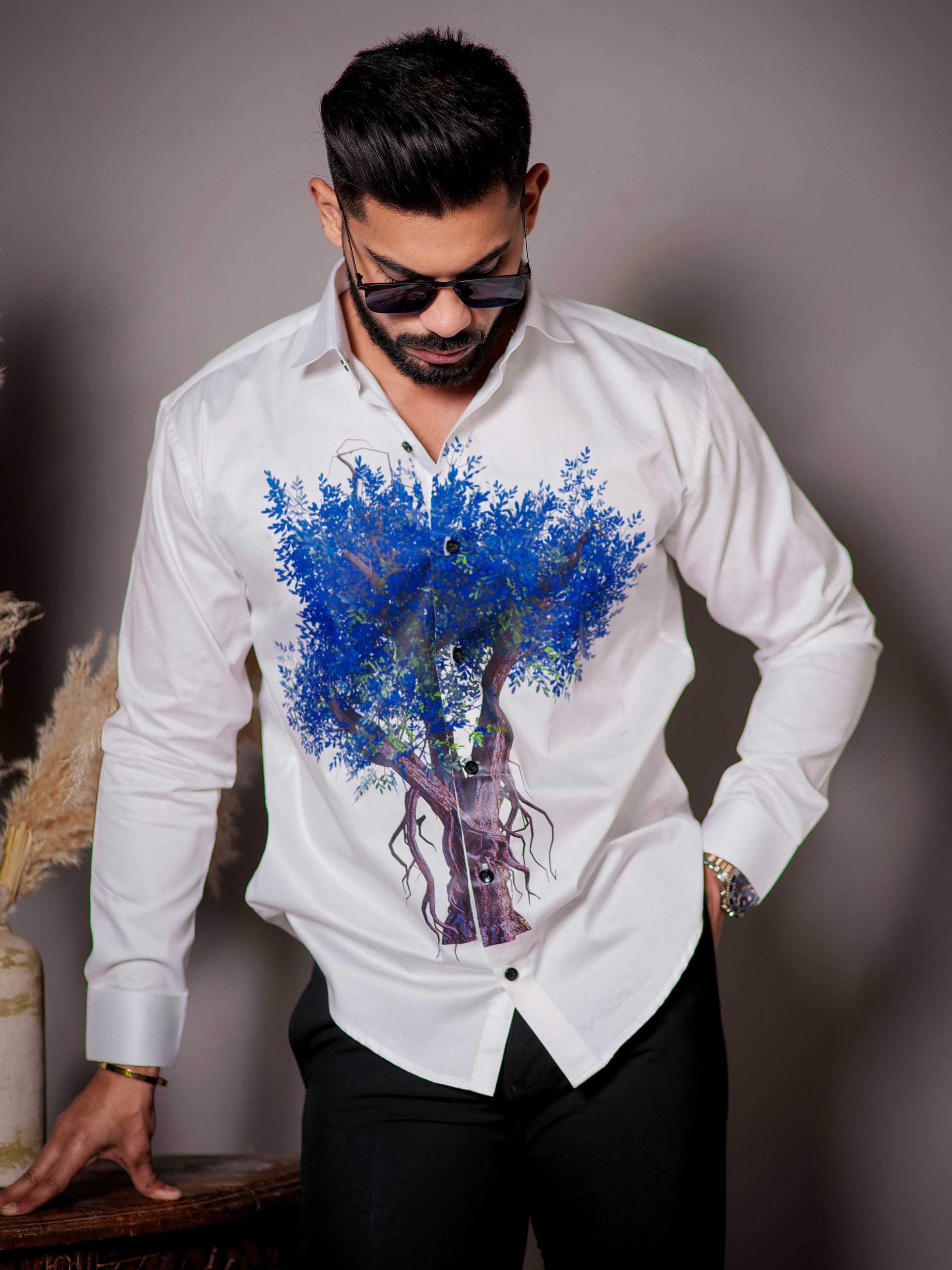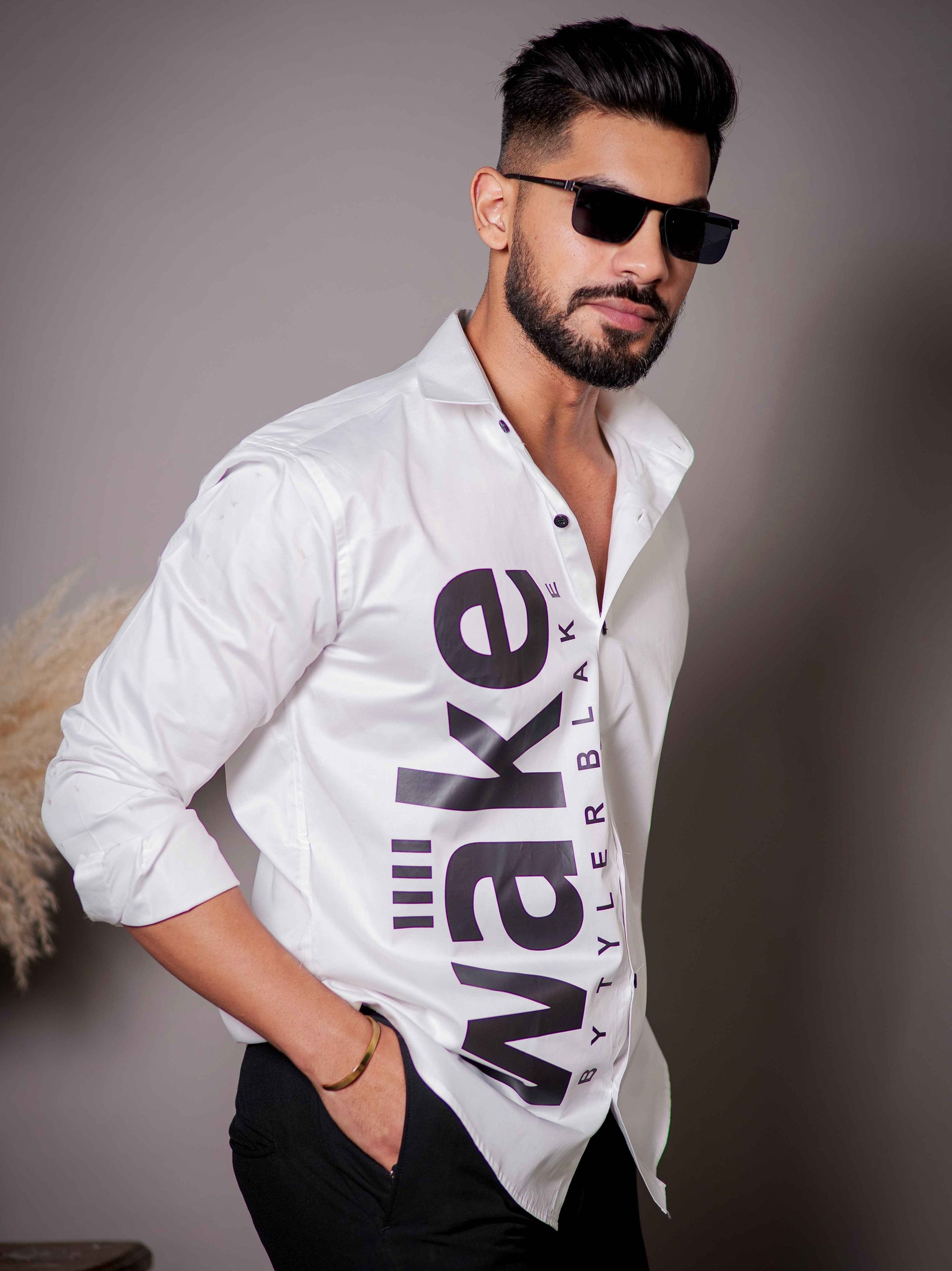White Club Wear Printed Satin Cotton Shirt