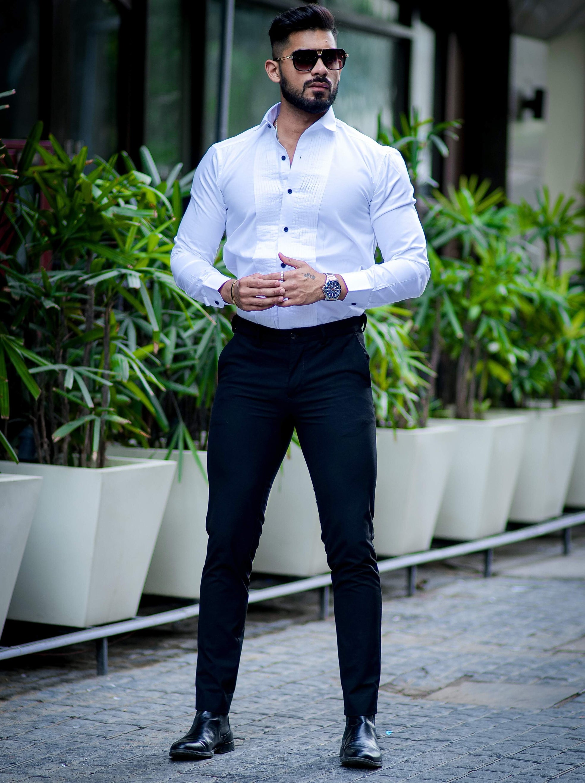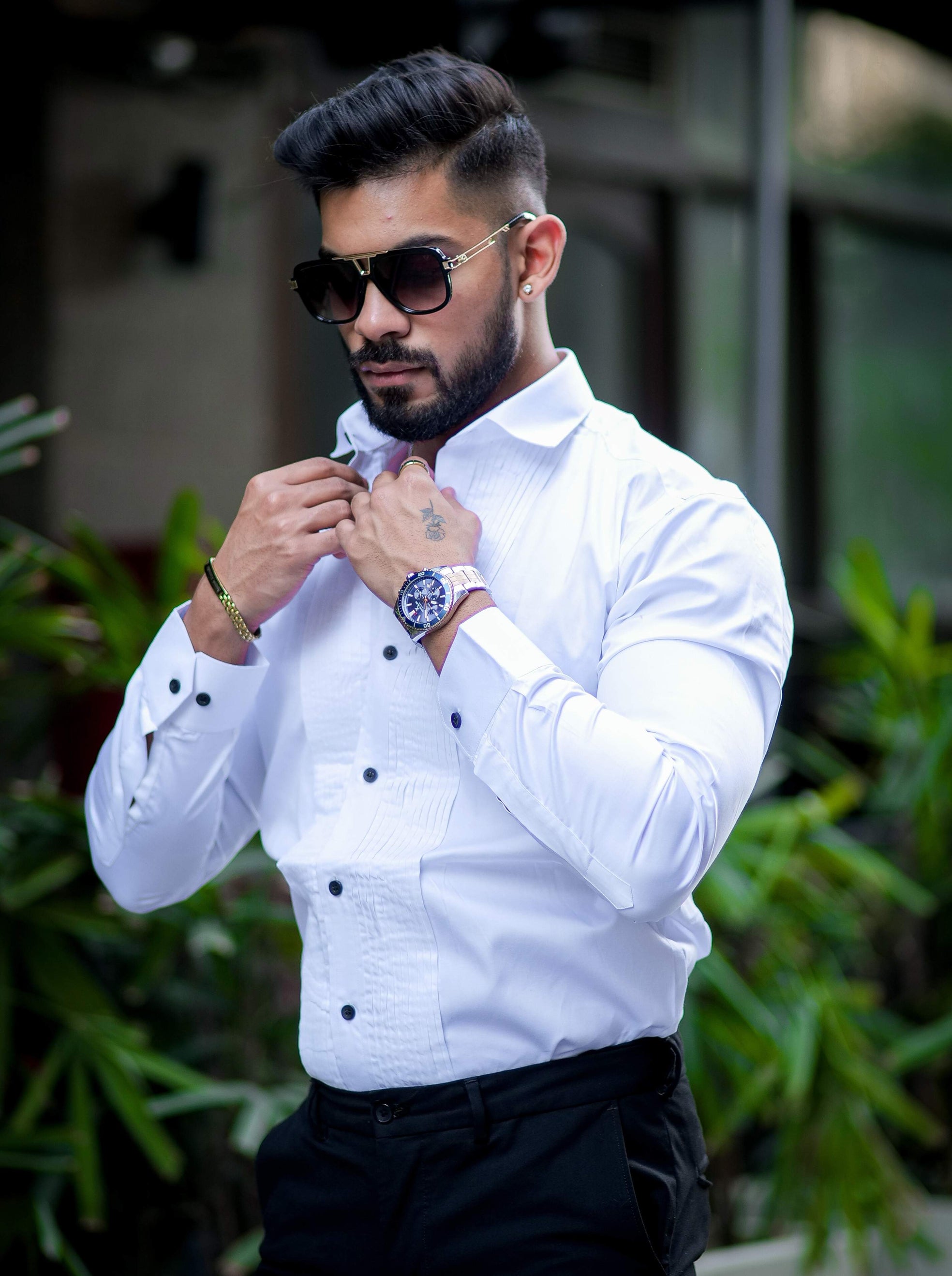 White Subtle Sheen Tuxedo Premium Giza Satin Cotton Shirt