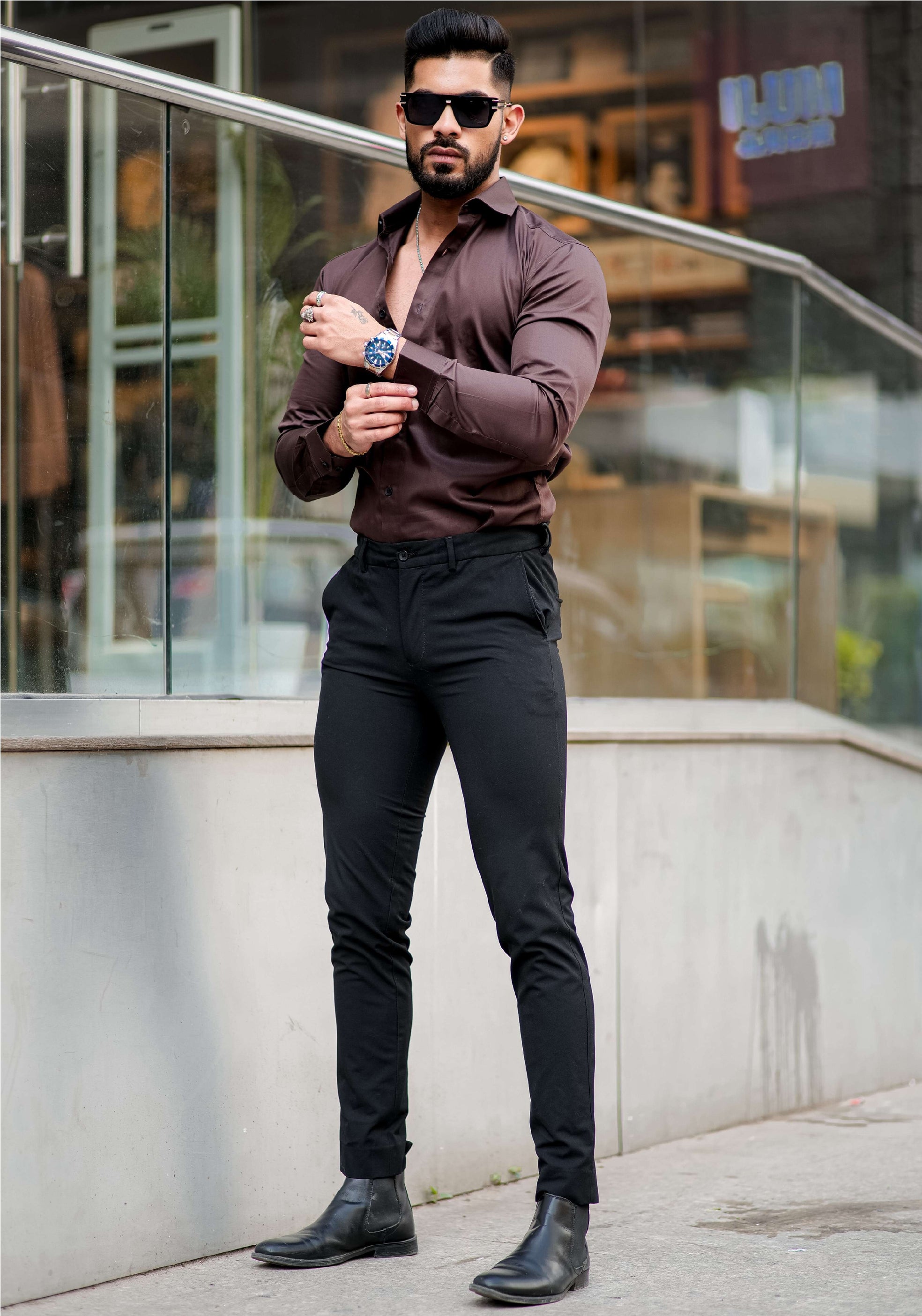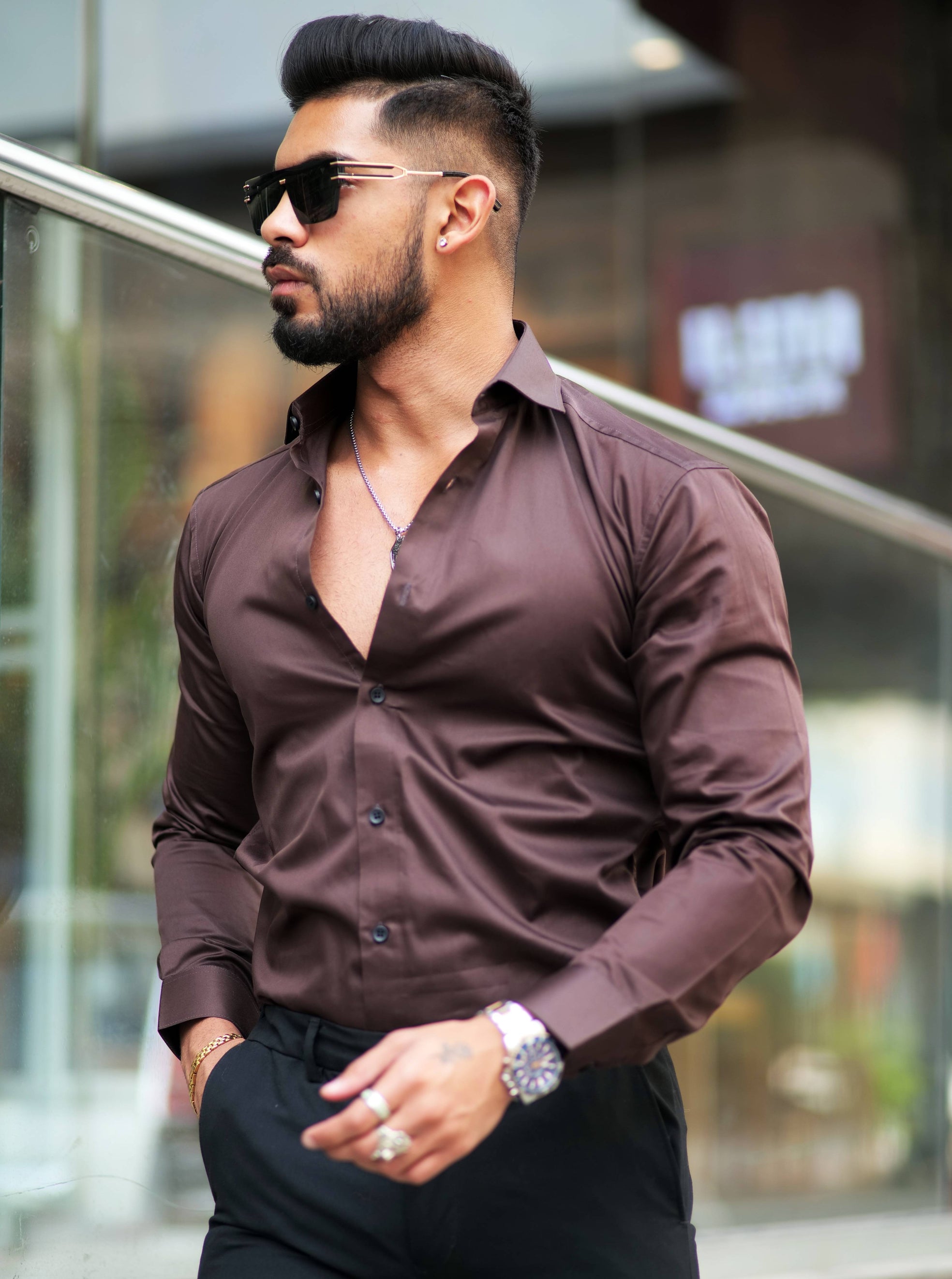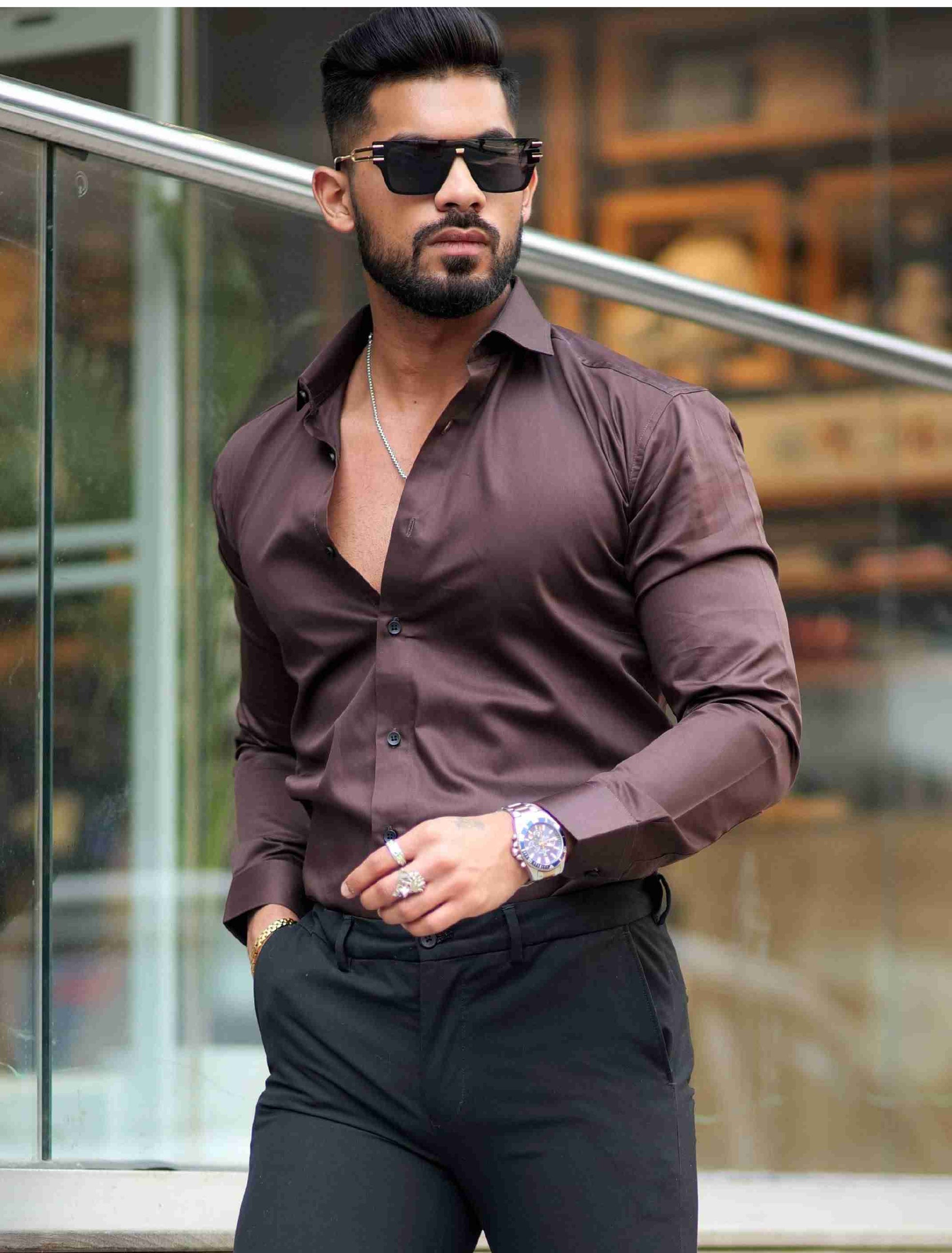 Formy Woody Brown Luxury Formal Satin Cotton Shirt For Men's