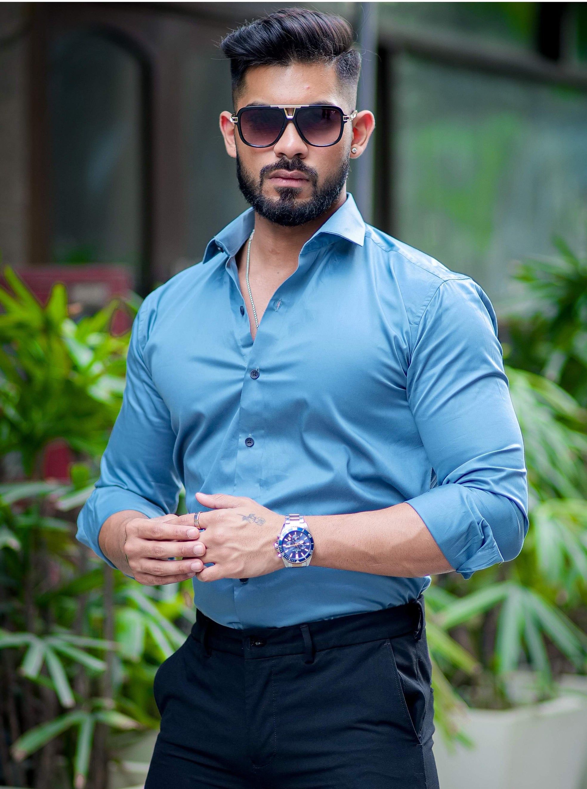 Formy Cool Blue Luxury Satin Cotton Shirt For Men's