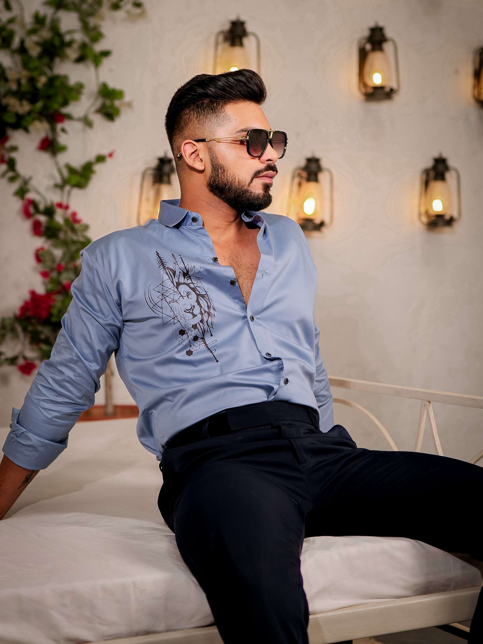 Sky Club Wear Printed Satin Cotton Shirt