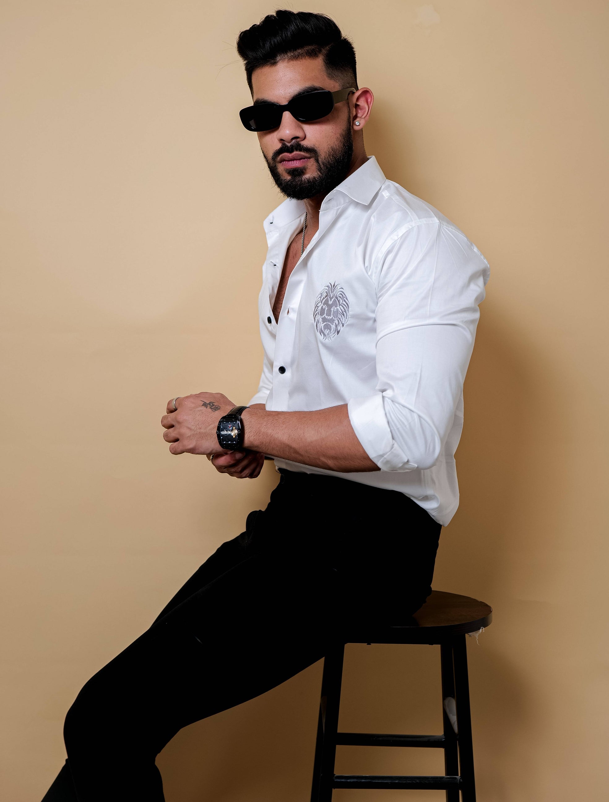 Mufasa Embroidered White Luxury Cotton Shirt