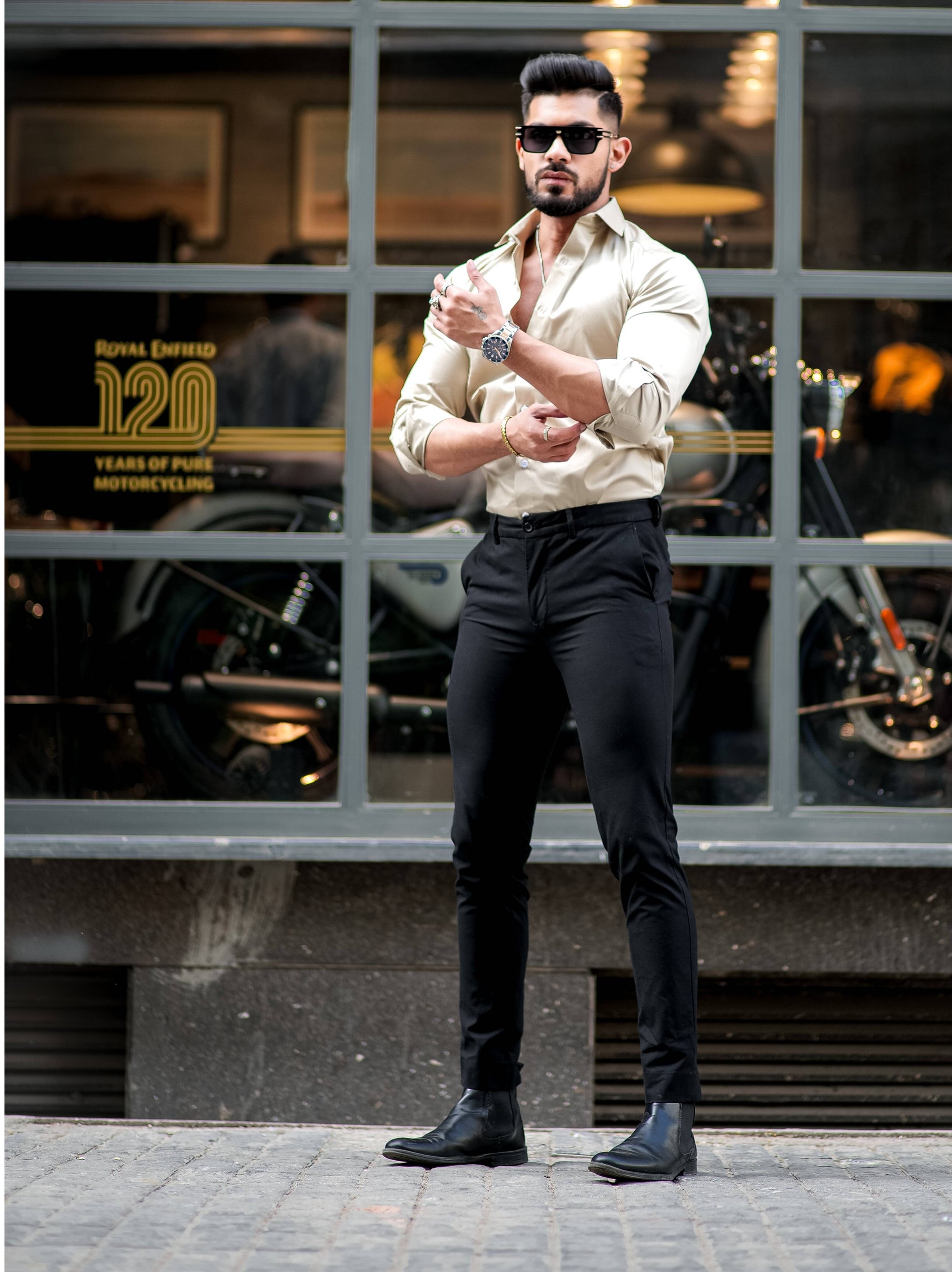 Starry Beaded Black Premium Shirt For Men