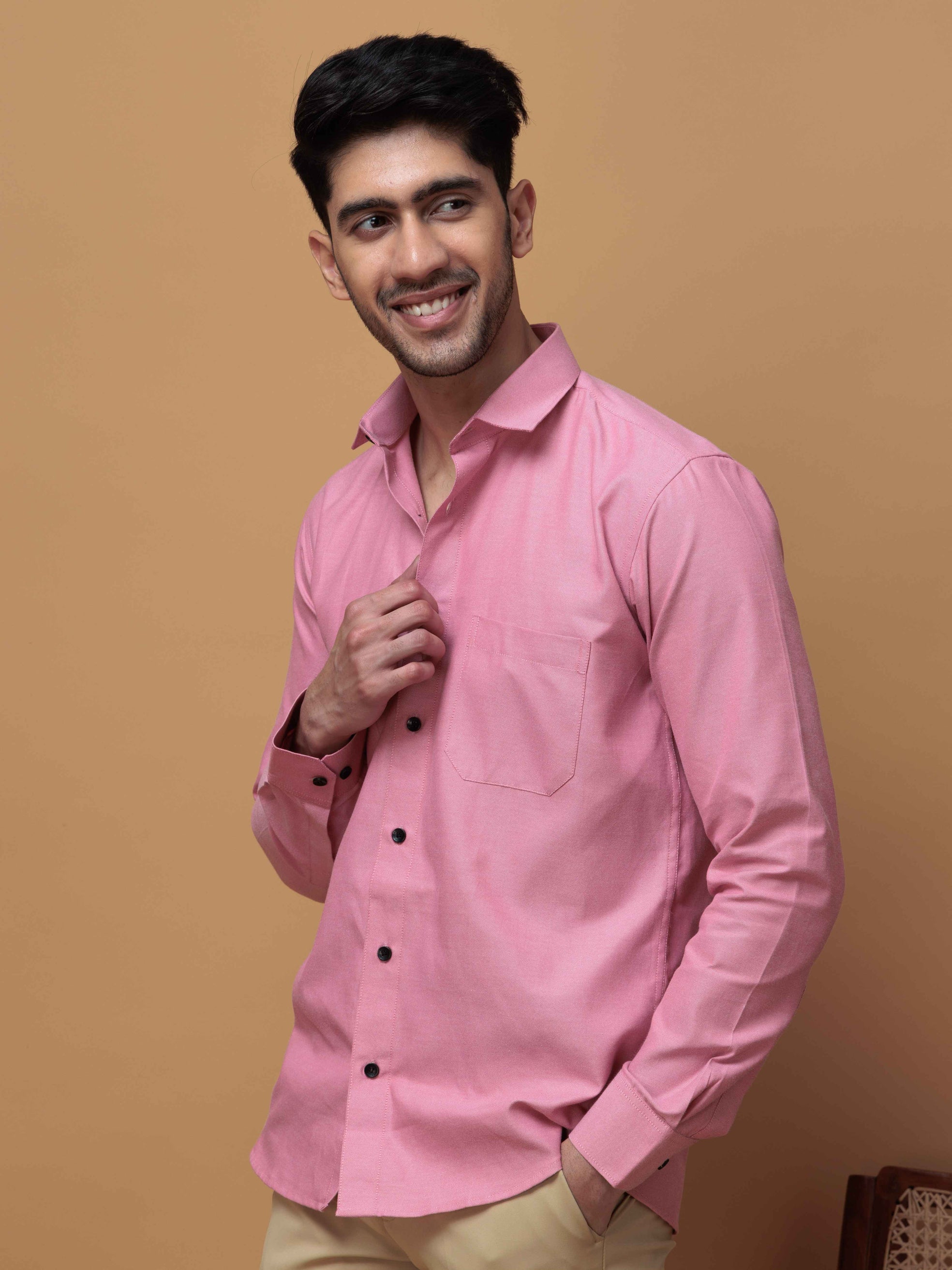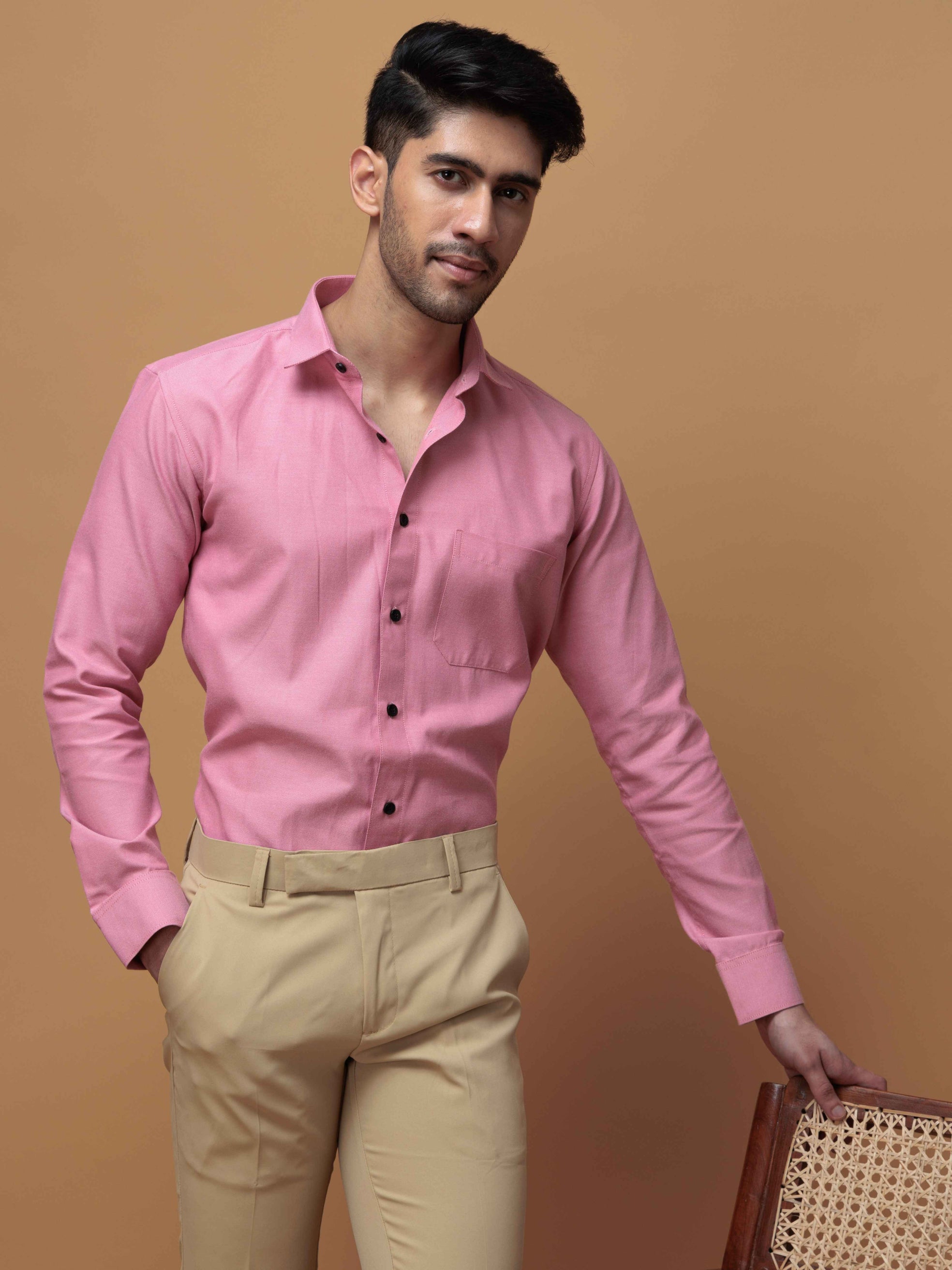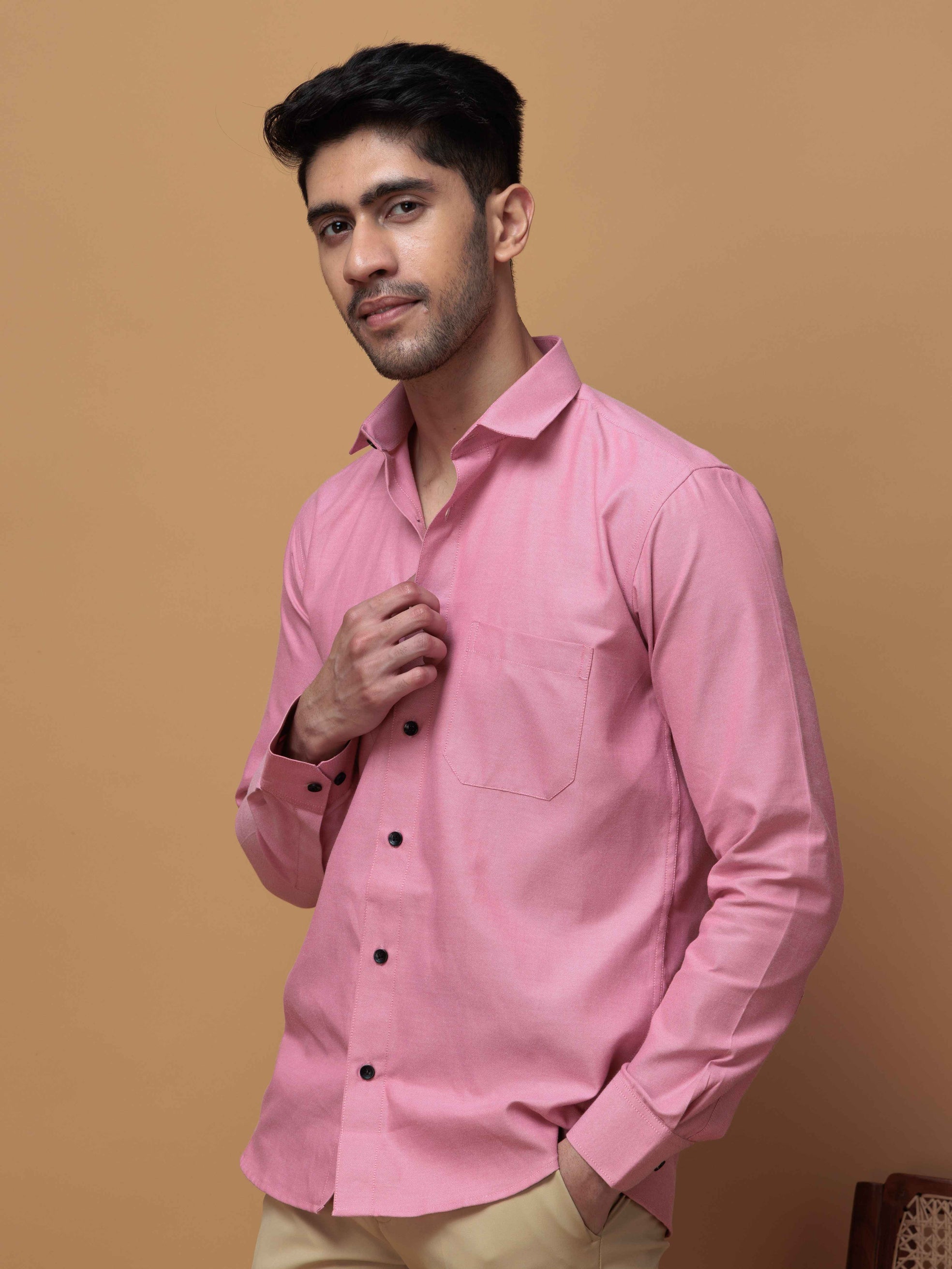 FORMAL PINK PLAIN OXFORD COTTON CASUAL SHIRT FOR MEN'S