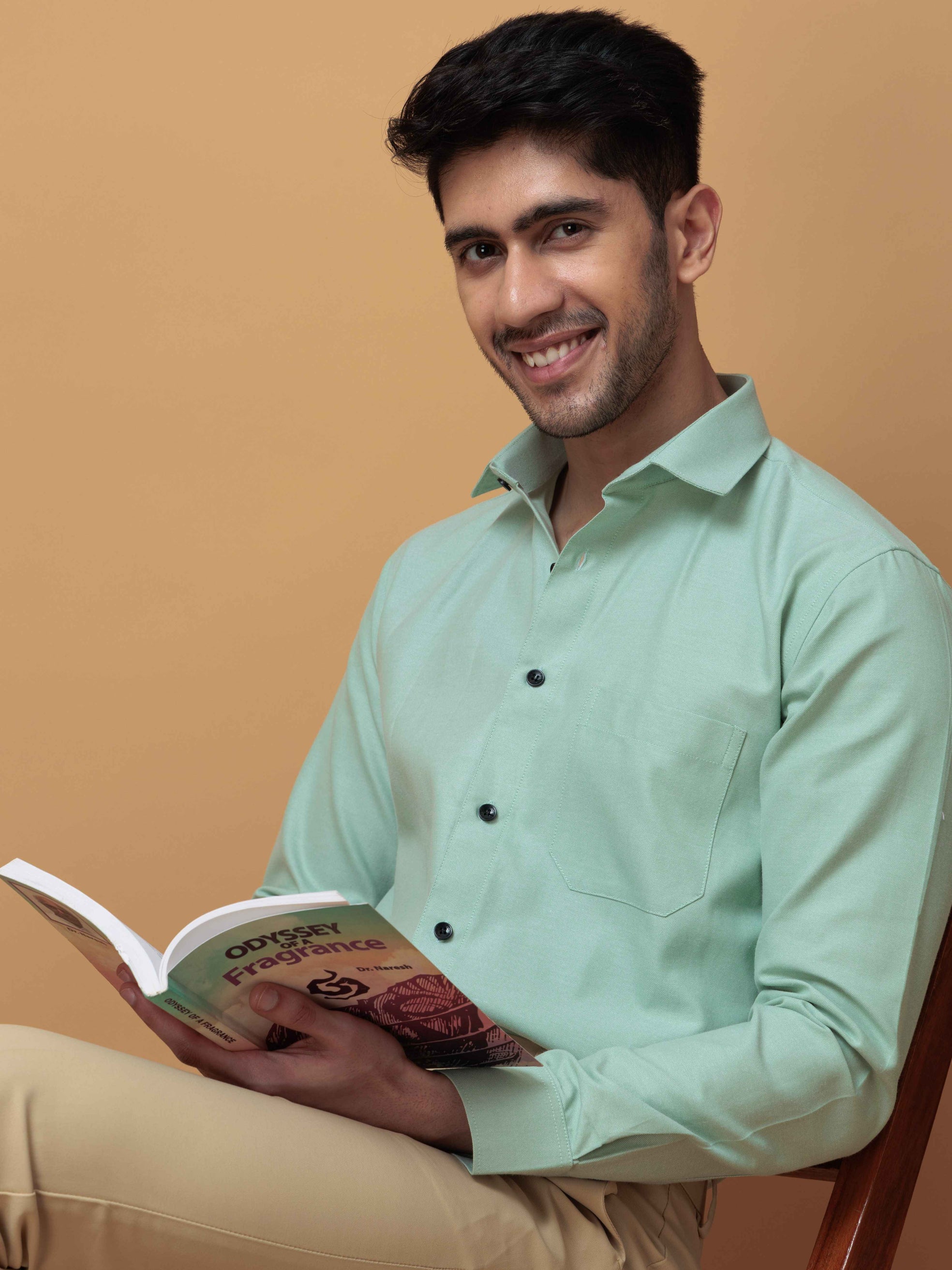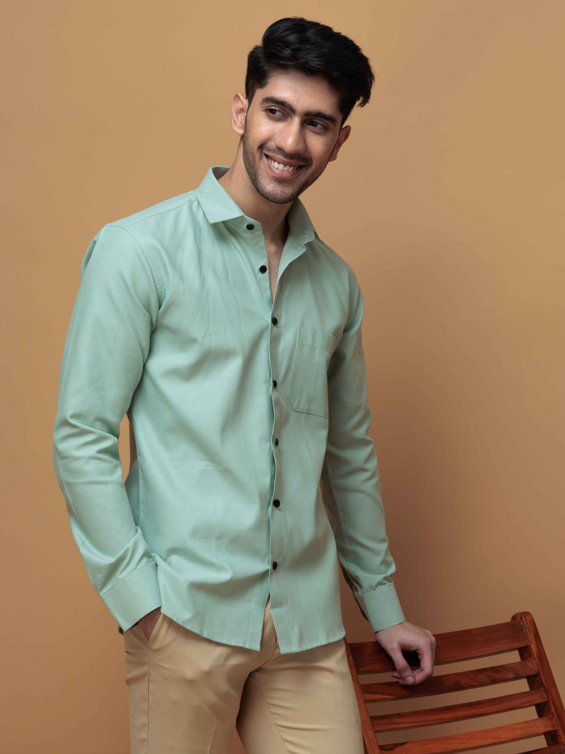 FORMAL GREEN PLAIN OXFORD COTTON CASUAL SHIRT FOR MEN'S