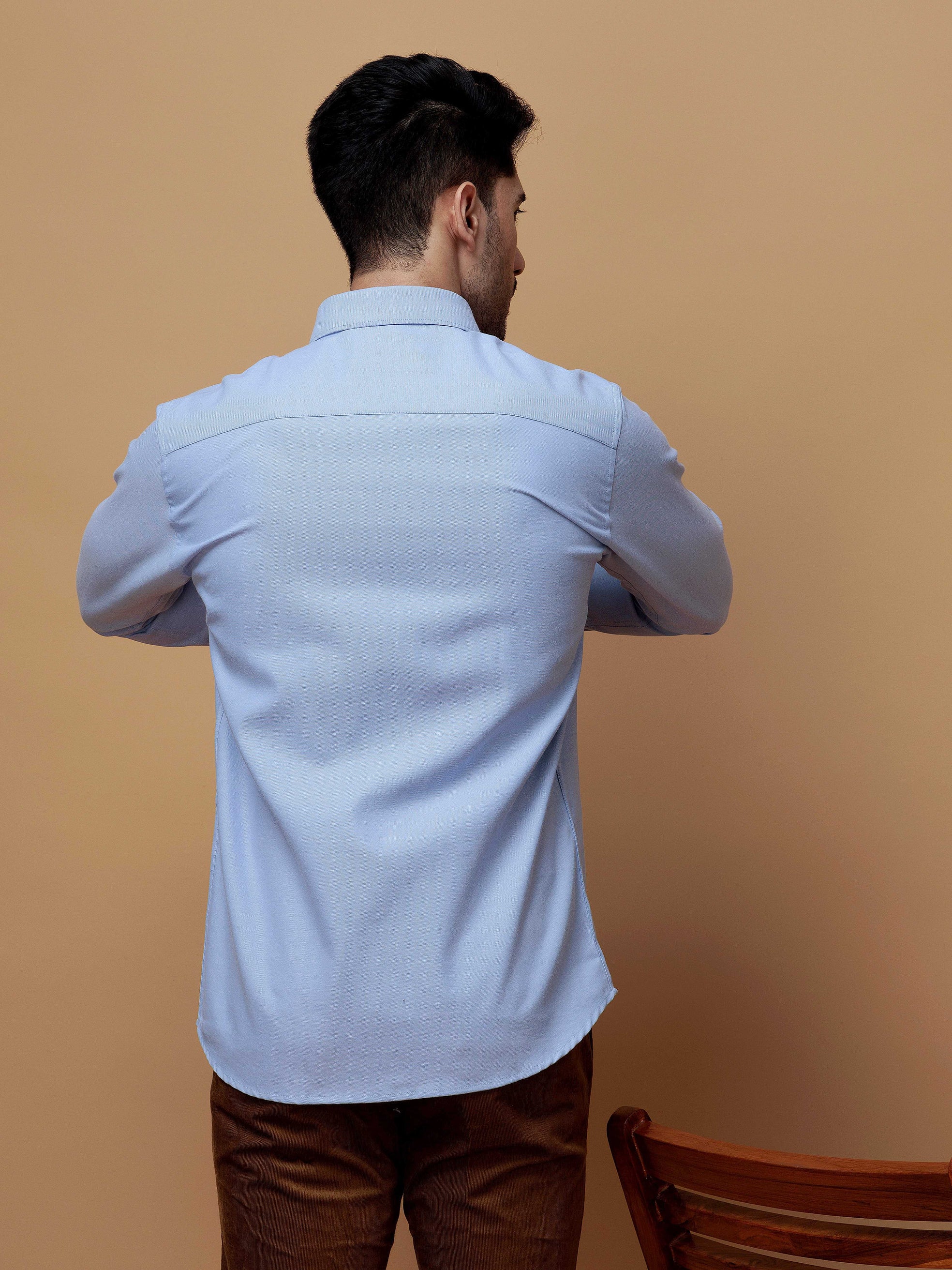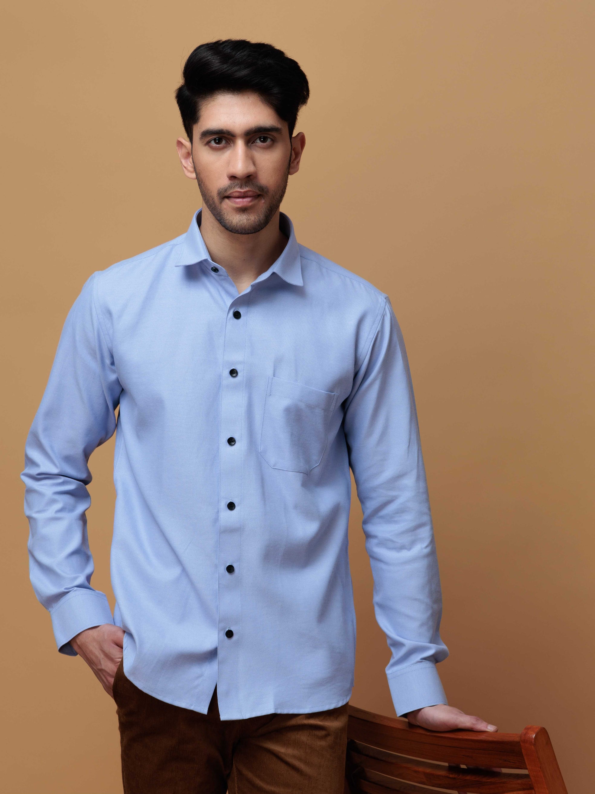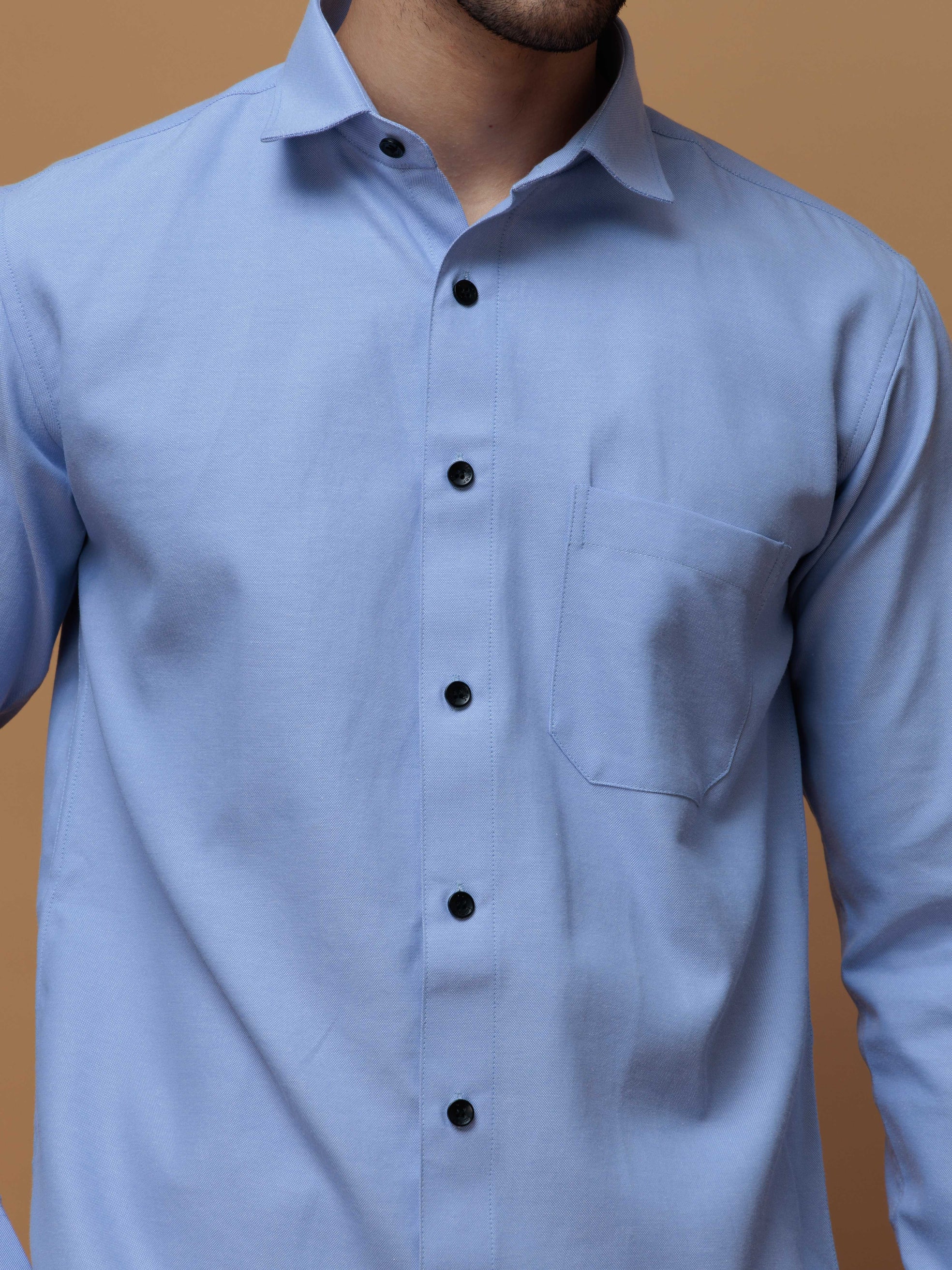 FORMAL SKY BLUE PLAIN OXFORD COTTON CASUAL SHIRT FOR MEN'S