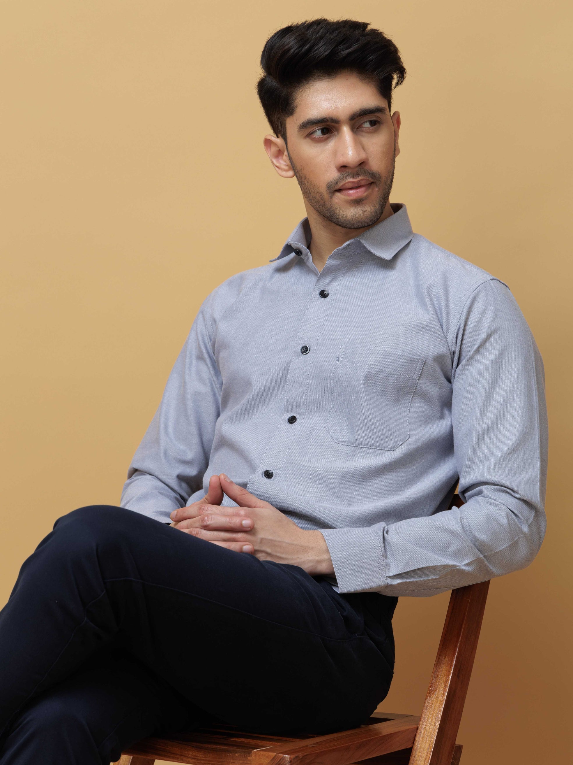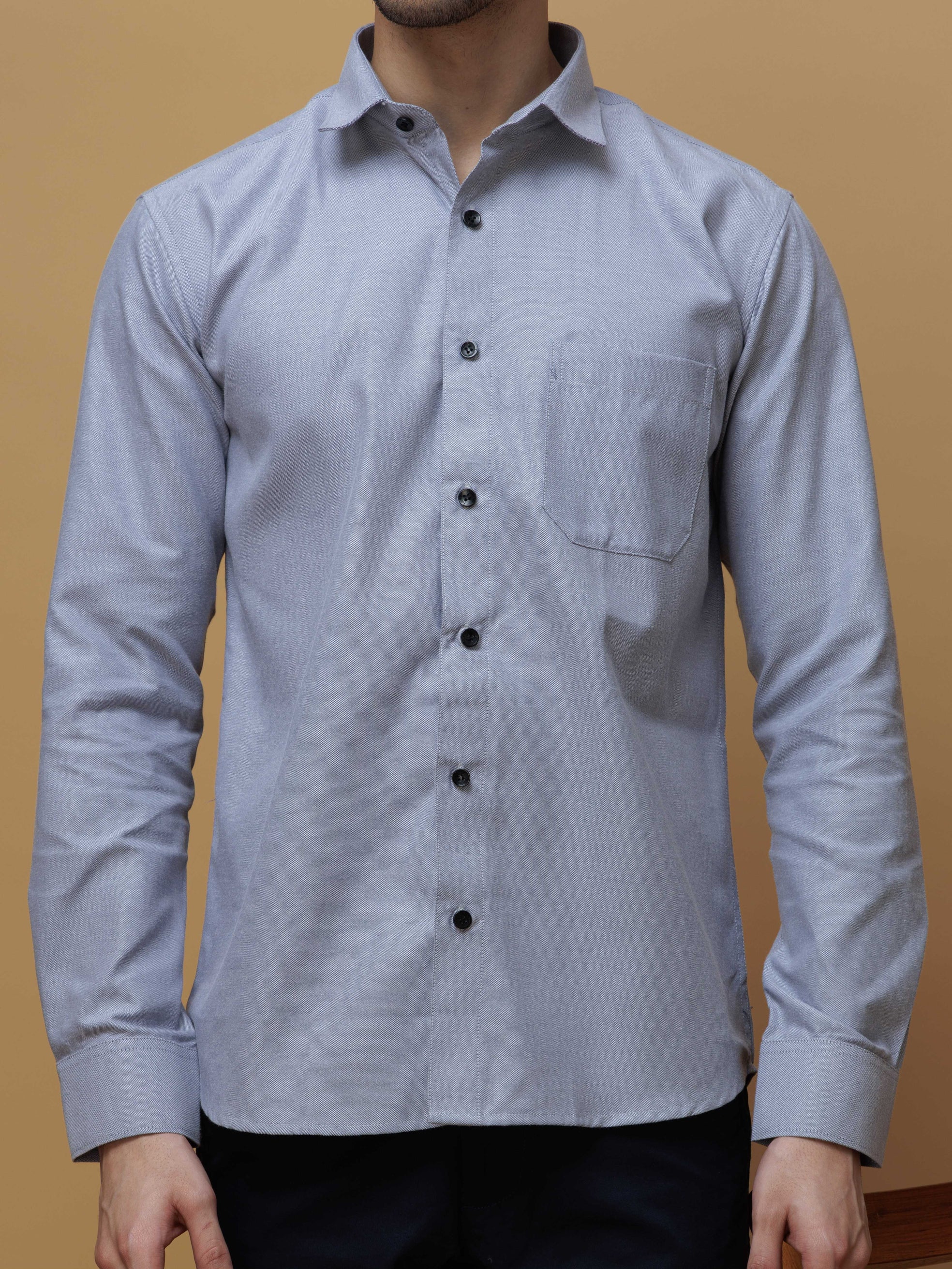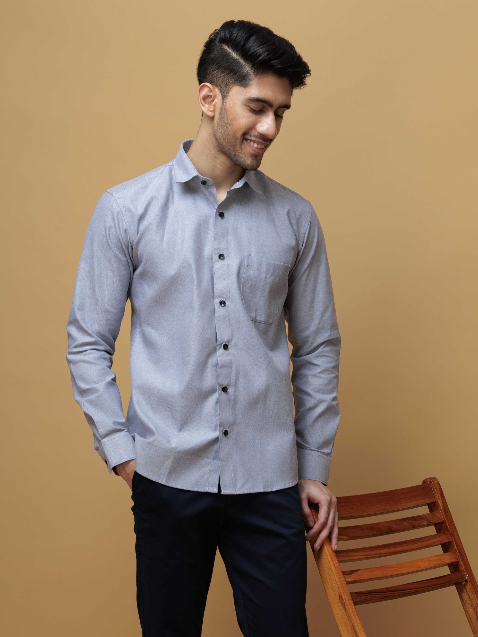FORMAL GREY PLAIN OXFORD PREMIUM COTTON CASUAL SHIRT FOR MEN'S