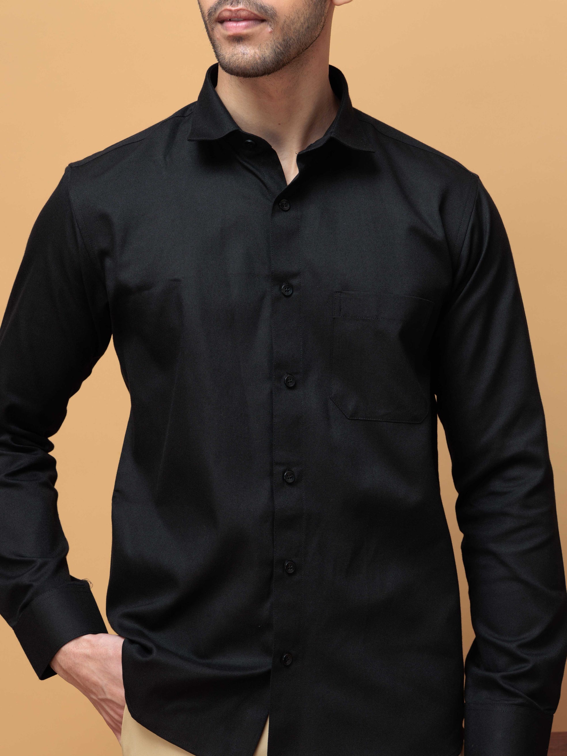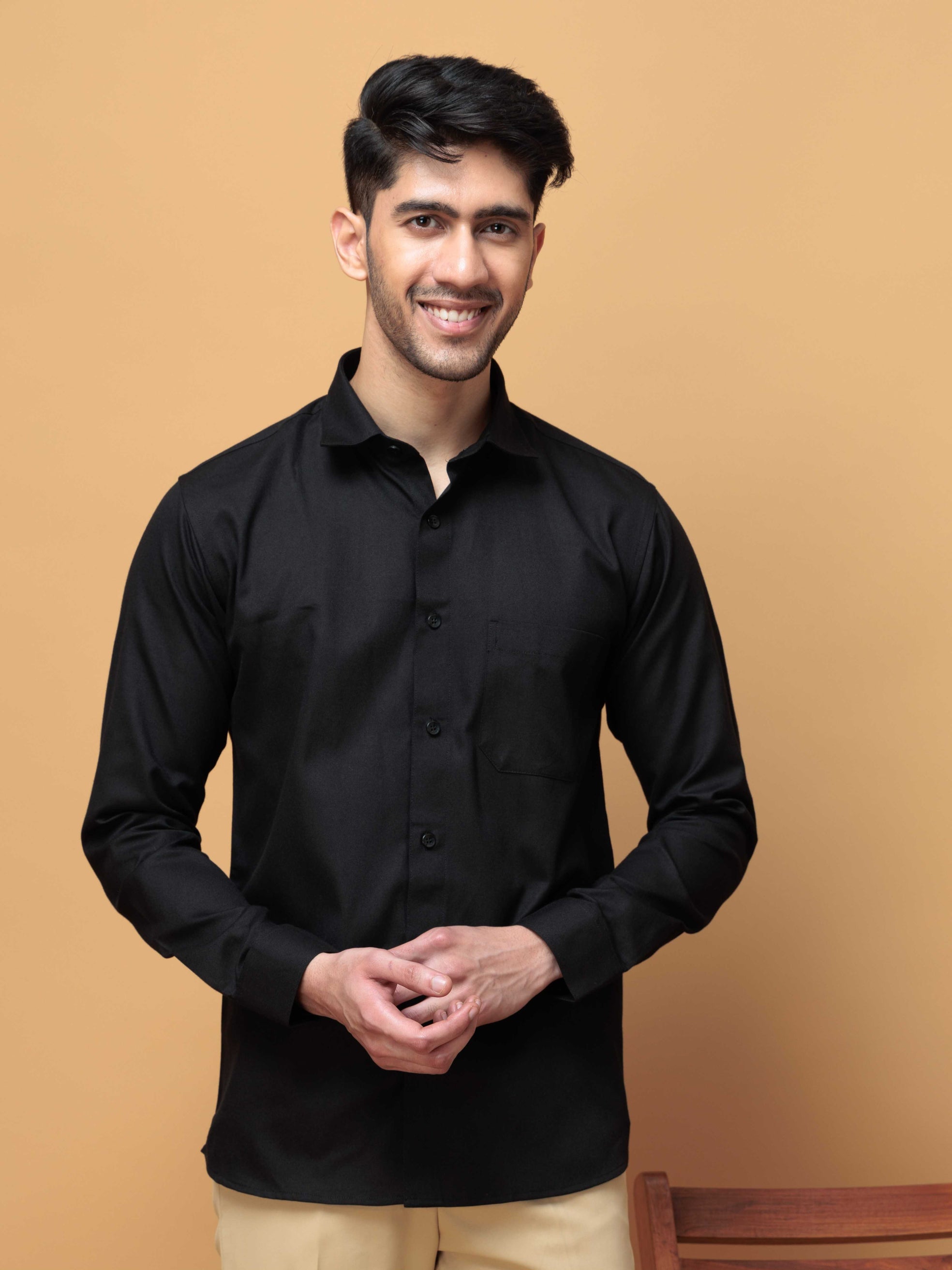 FORMAL BLACK PLAIN OXFORD COTTON CASUAL SHIRT FOR MEN'S