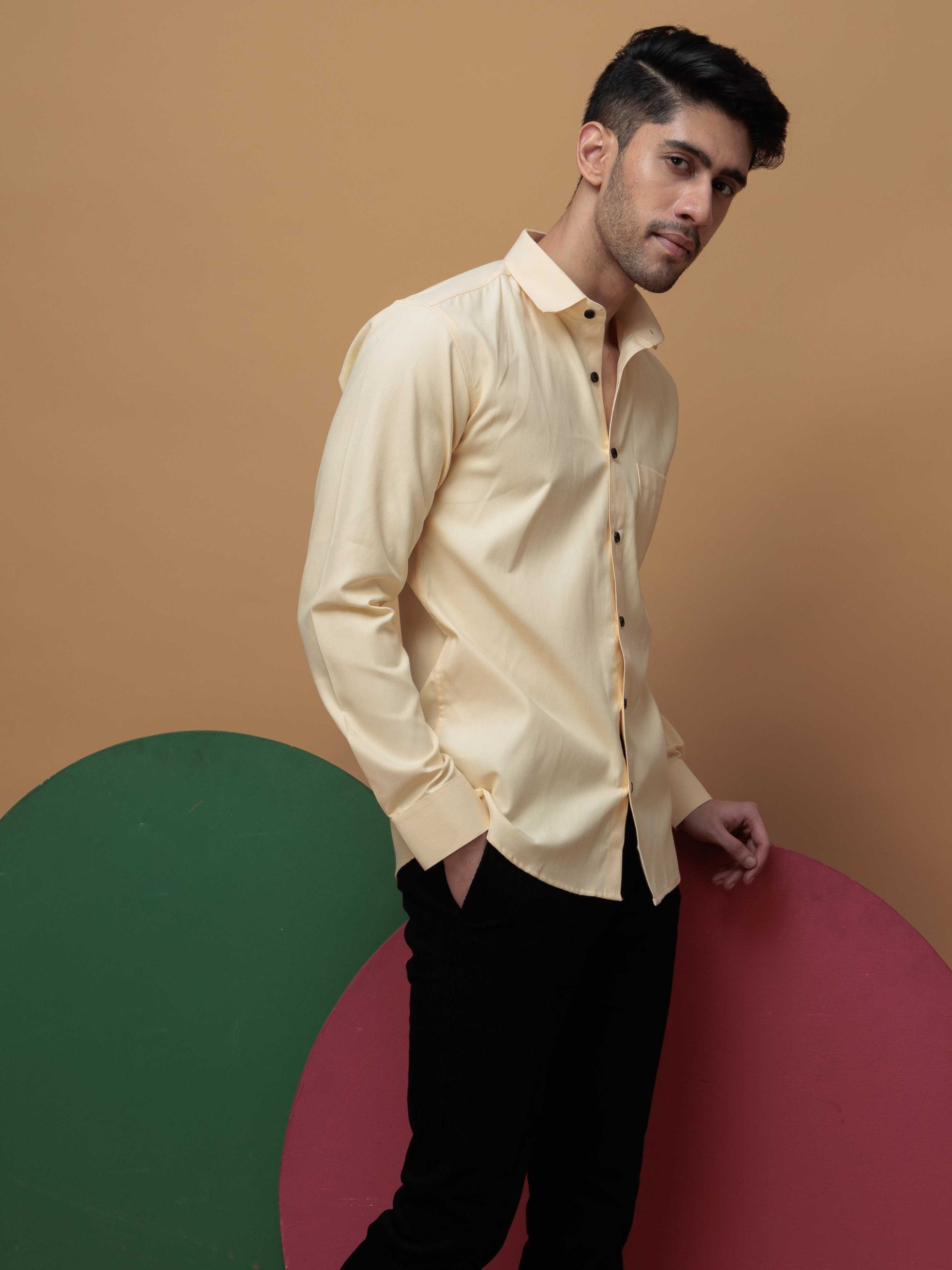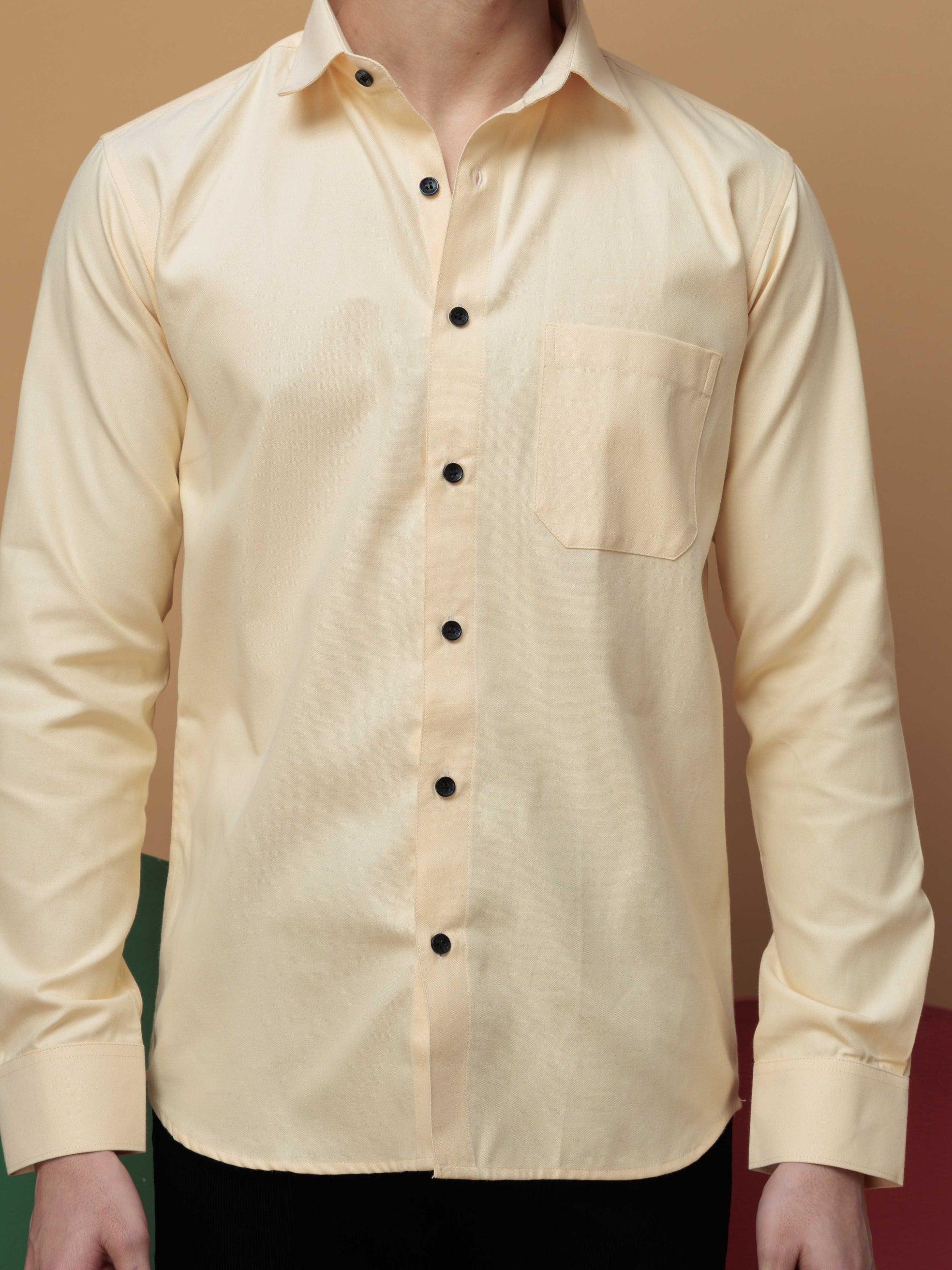 FOOMER FORMY LIGHT YELLOW LUXURY SATIN SHIRT FOR MEN'S