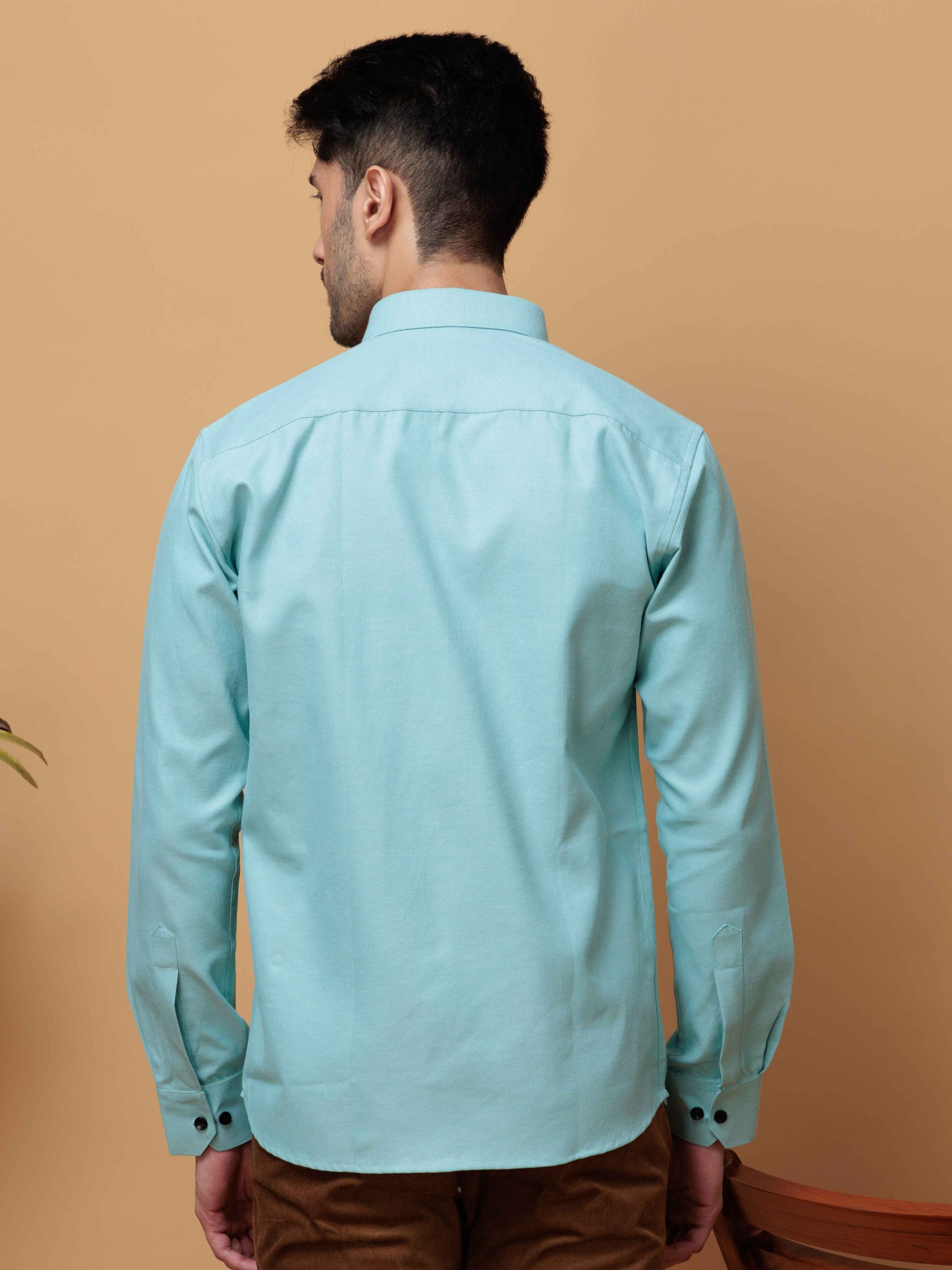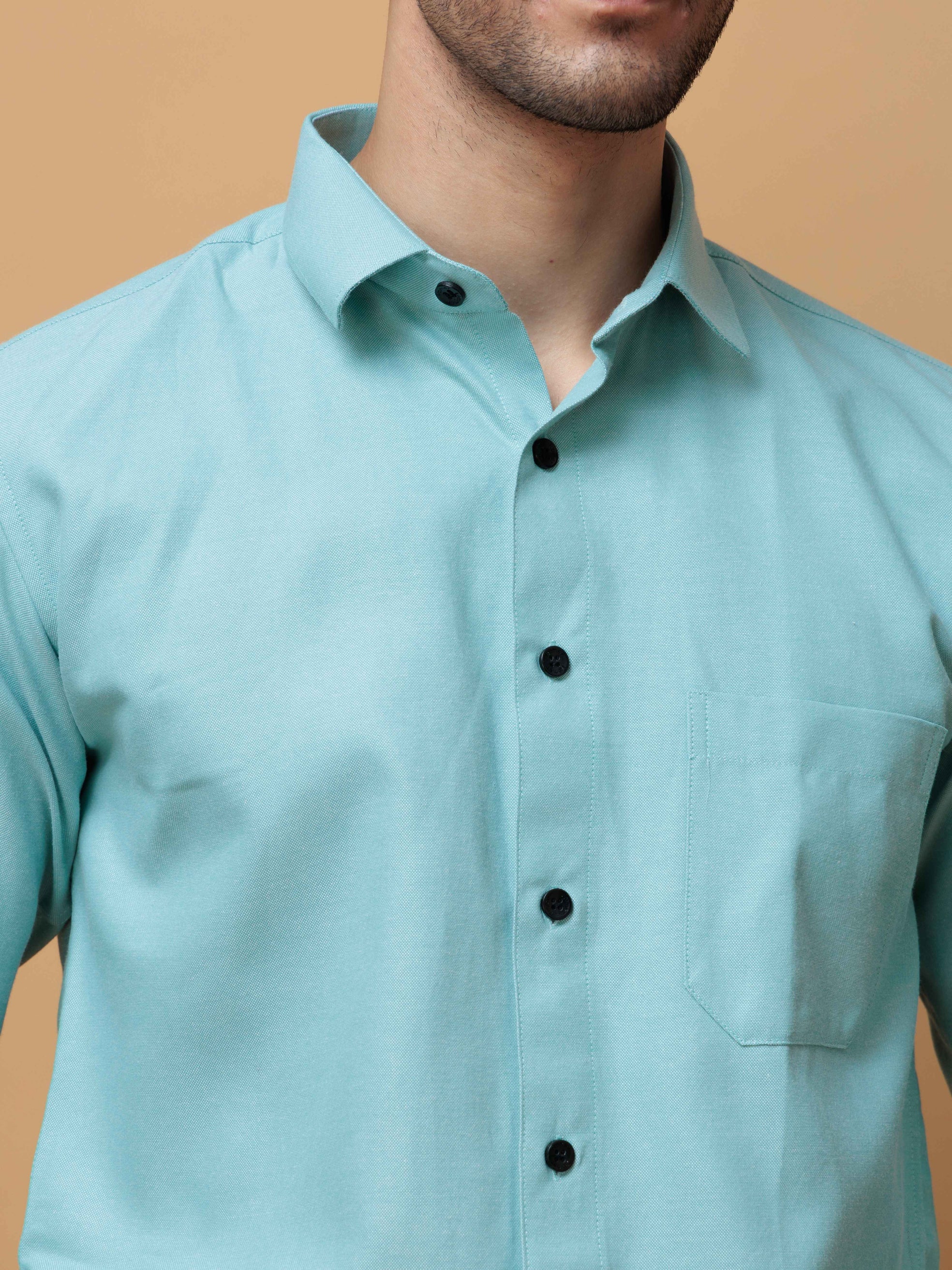 FORMAL CYAN PLAIN OXFORD COTTON CASUAL SHIRT FOR MEN'S