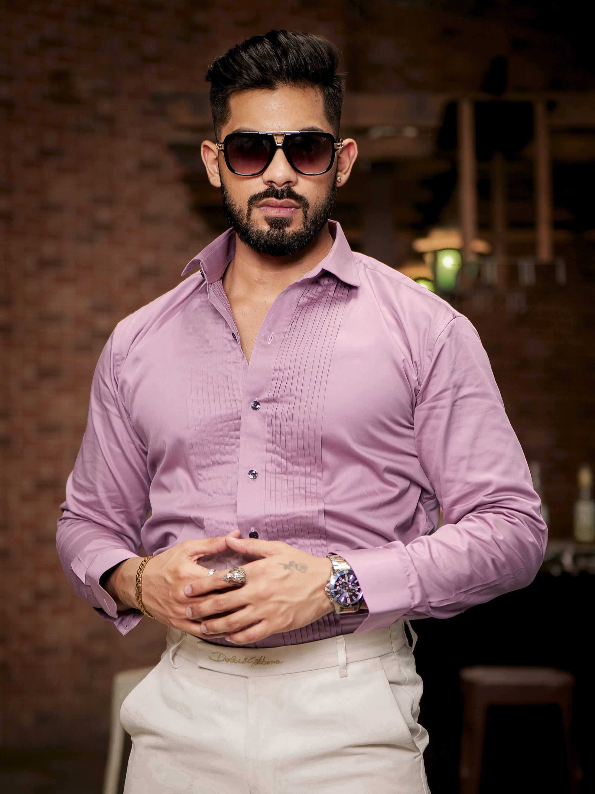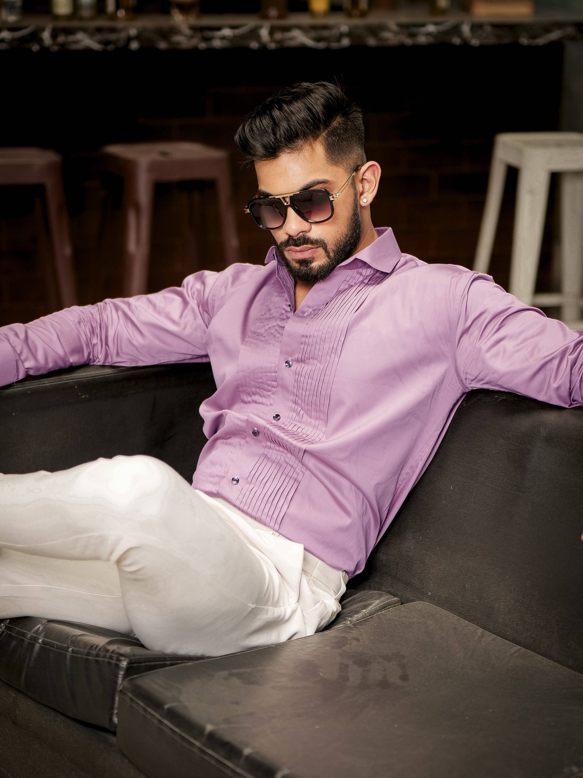 Purple Subtle Sheen Tuxedo Premium Giza Satin Cotton Shirt