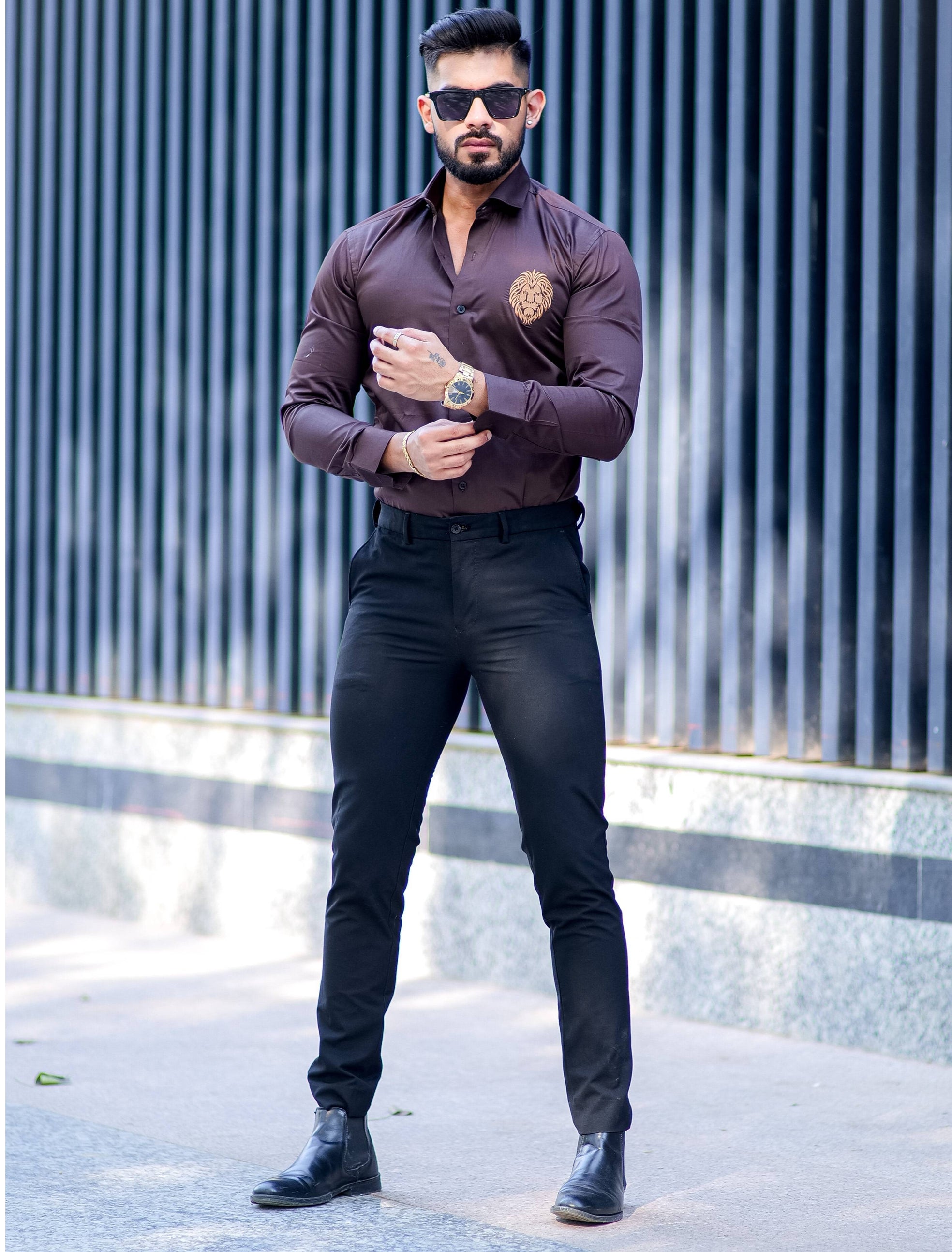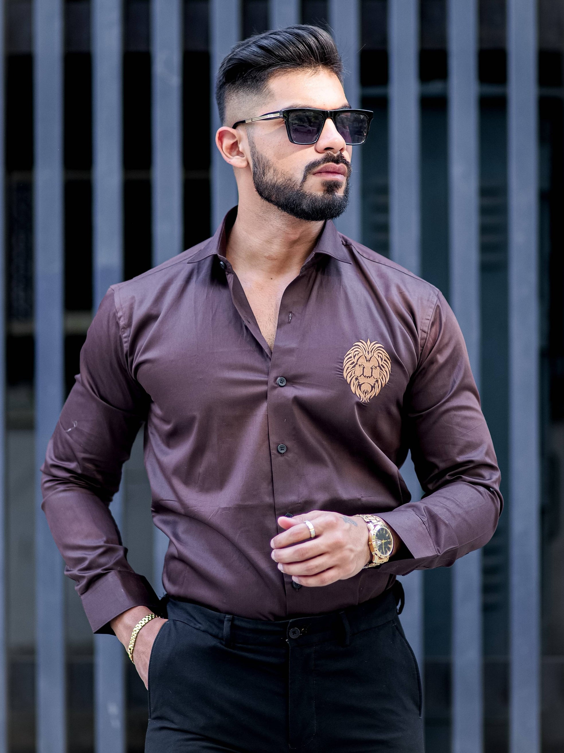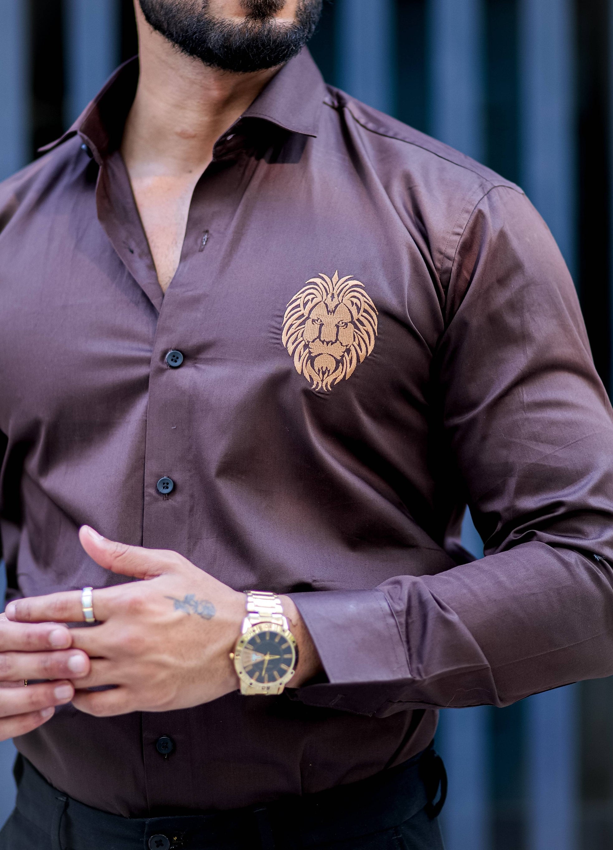 Mufasa Golden Embroidered Brown Premium Shirt For Men