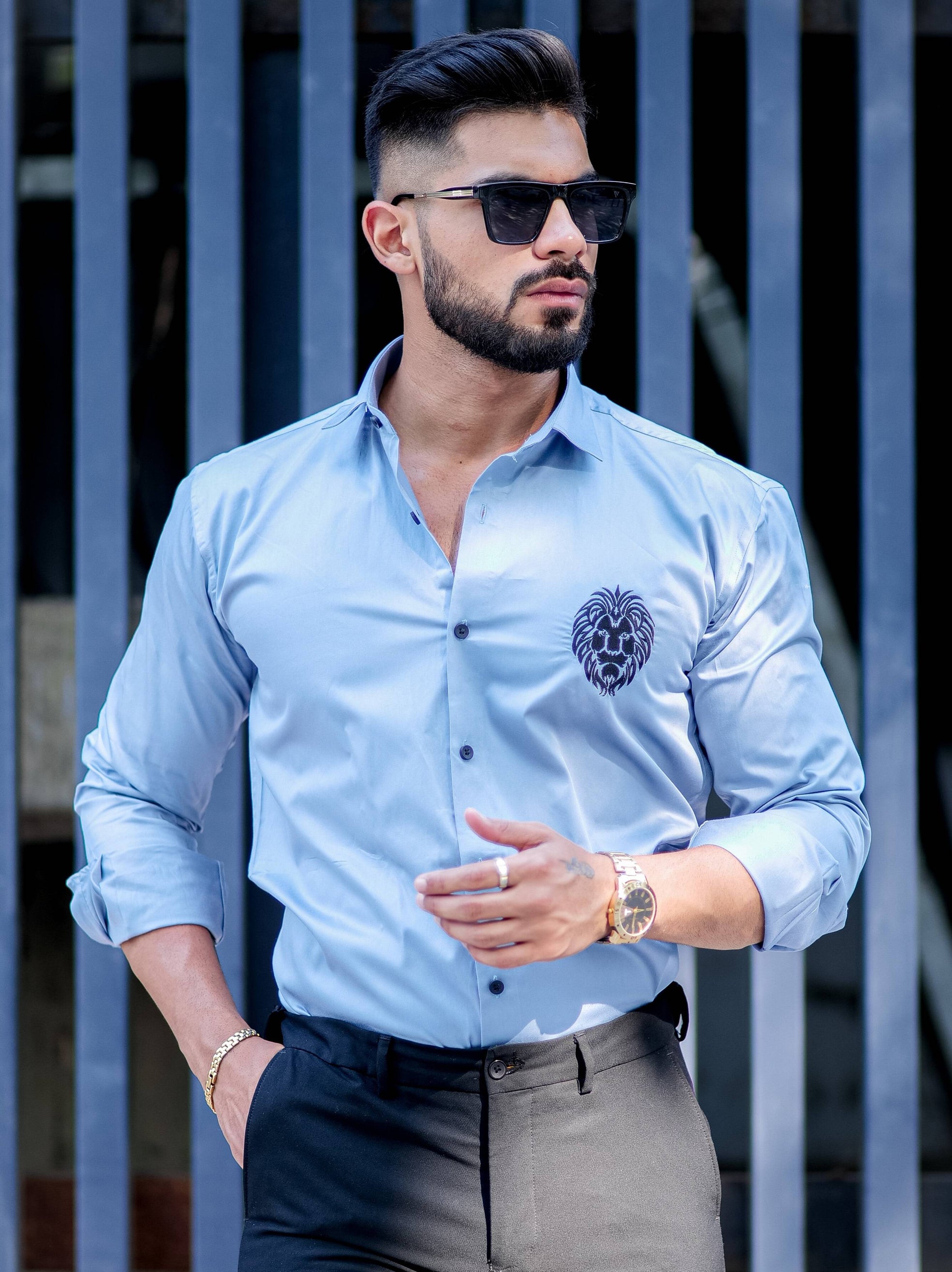 Mufasa Embroidered Grey Black Luxury Shirt For Men