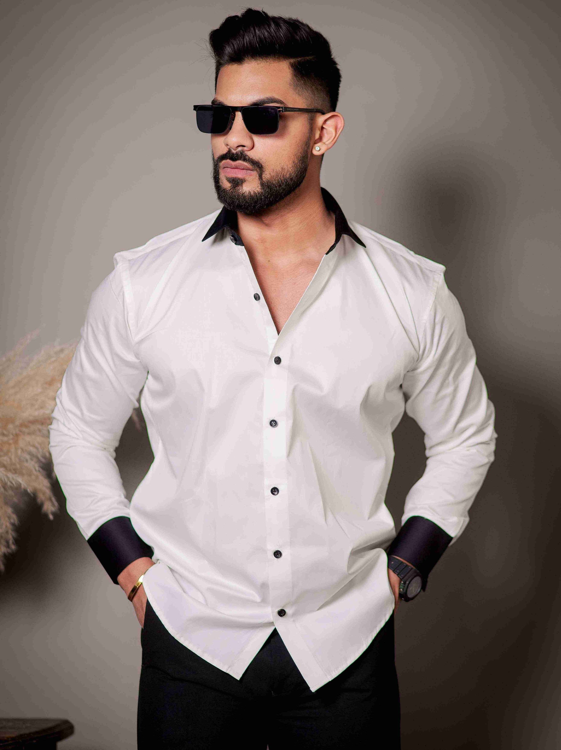 White Designer Giza Satin Cotton Shirt