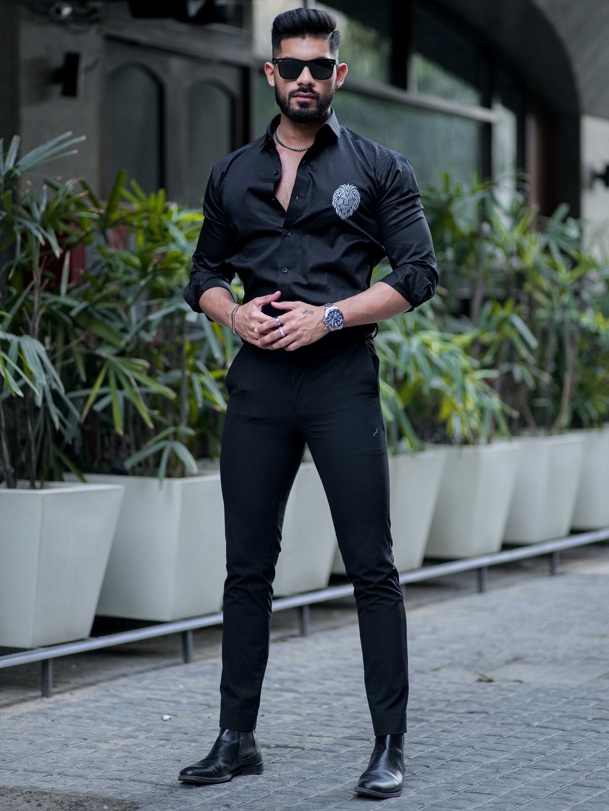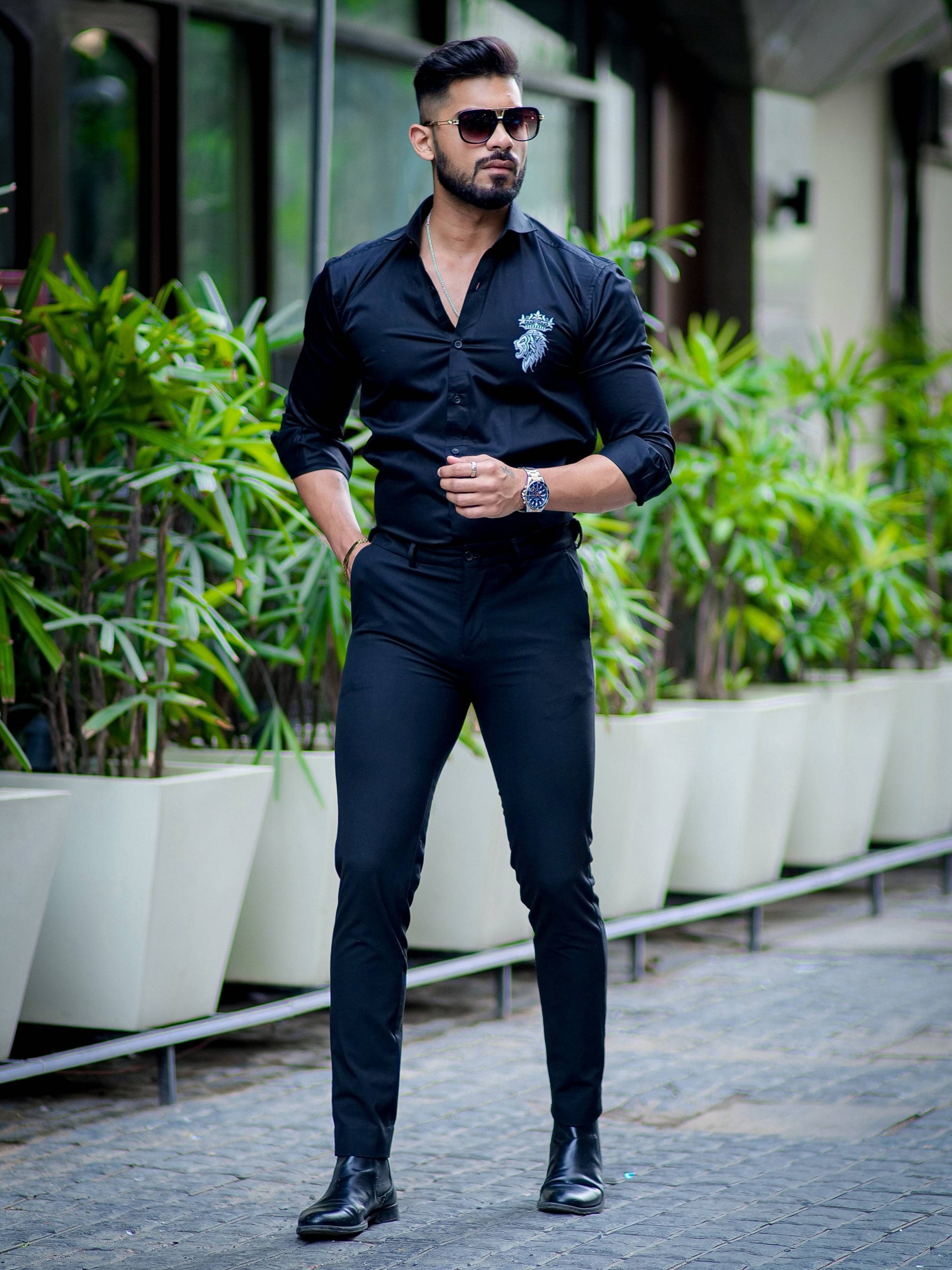 Black Mufasa Embroidered Premium Cotton Shirt For Men