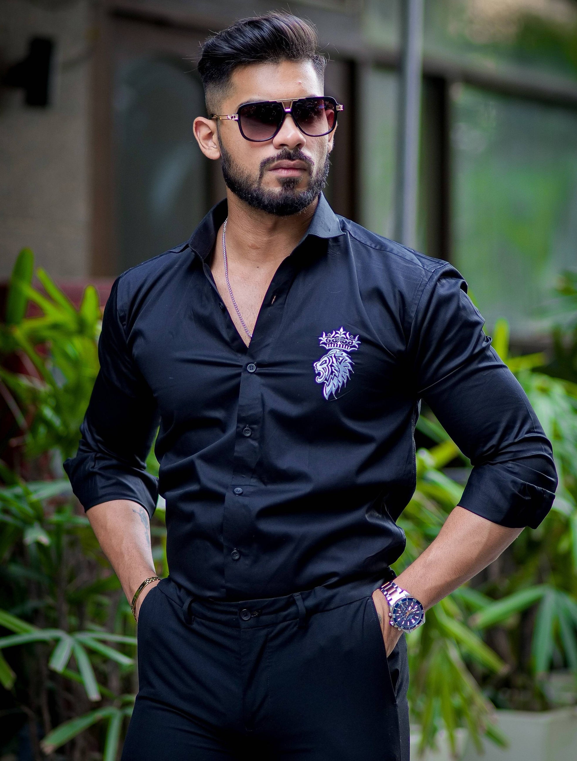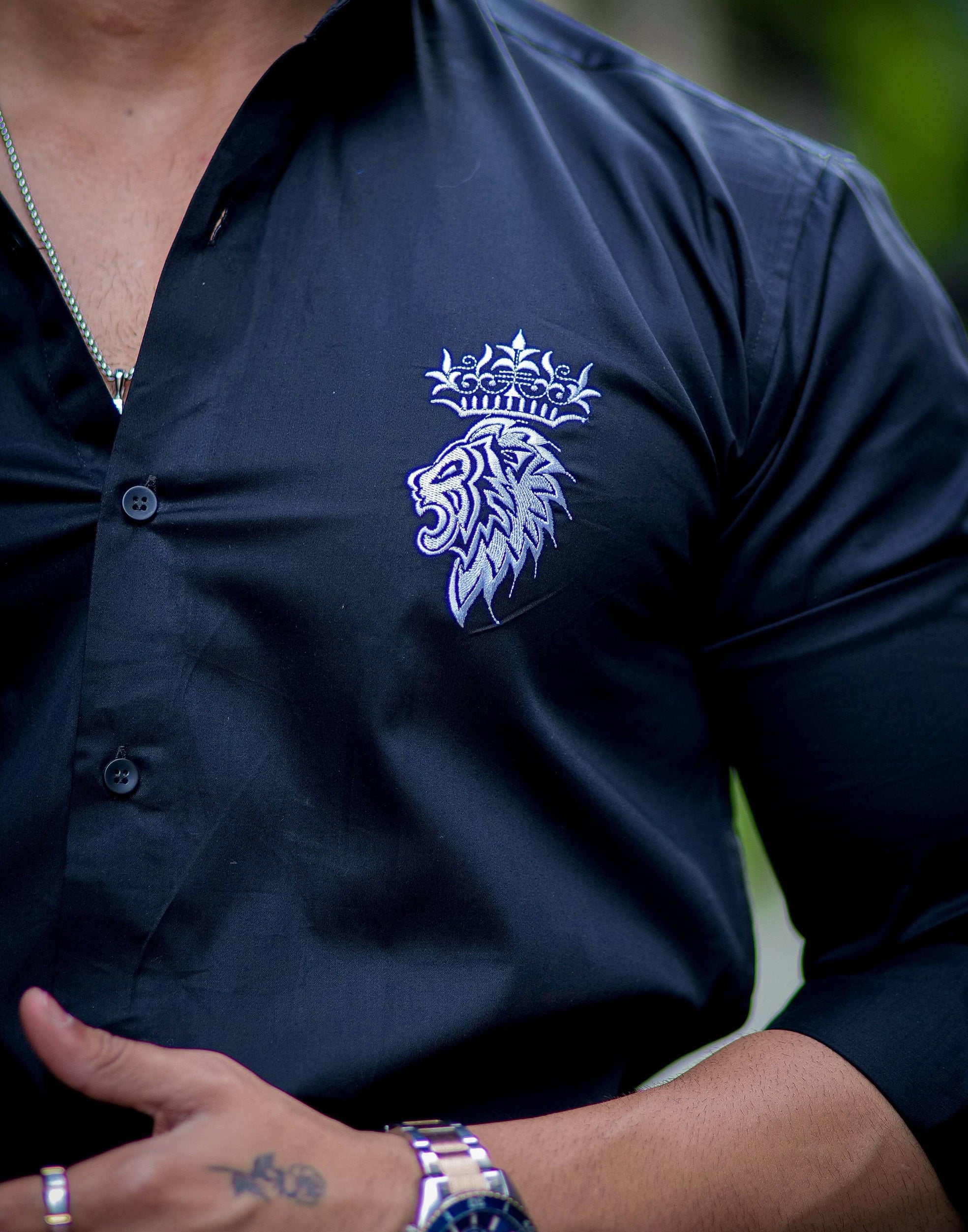 Crown With Lion Embroidered Black Premium Designer Shirt