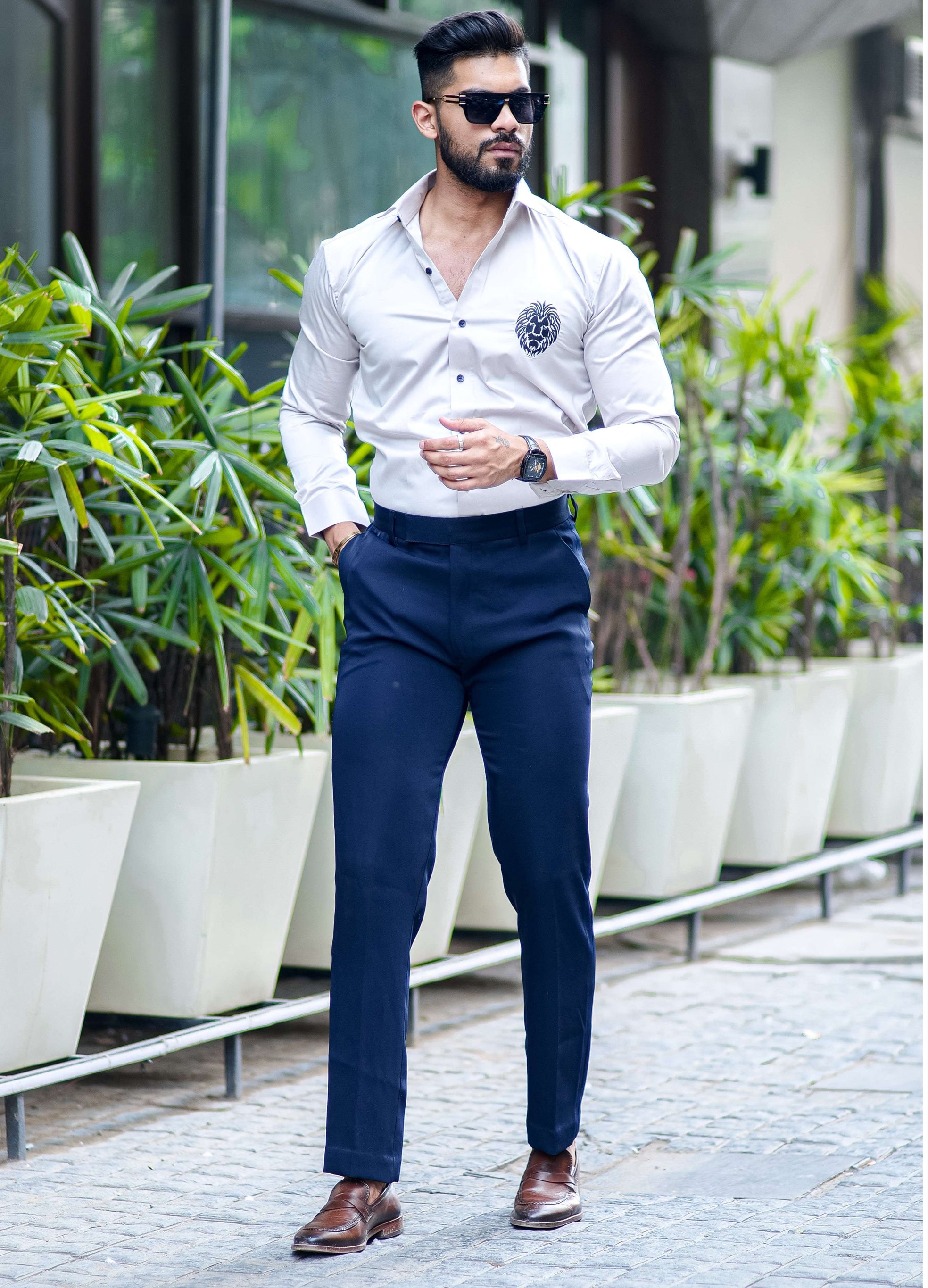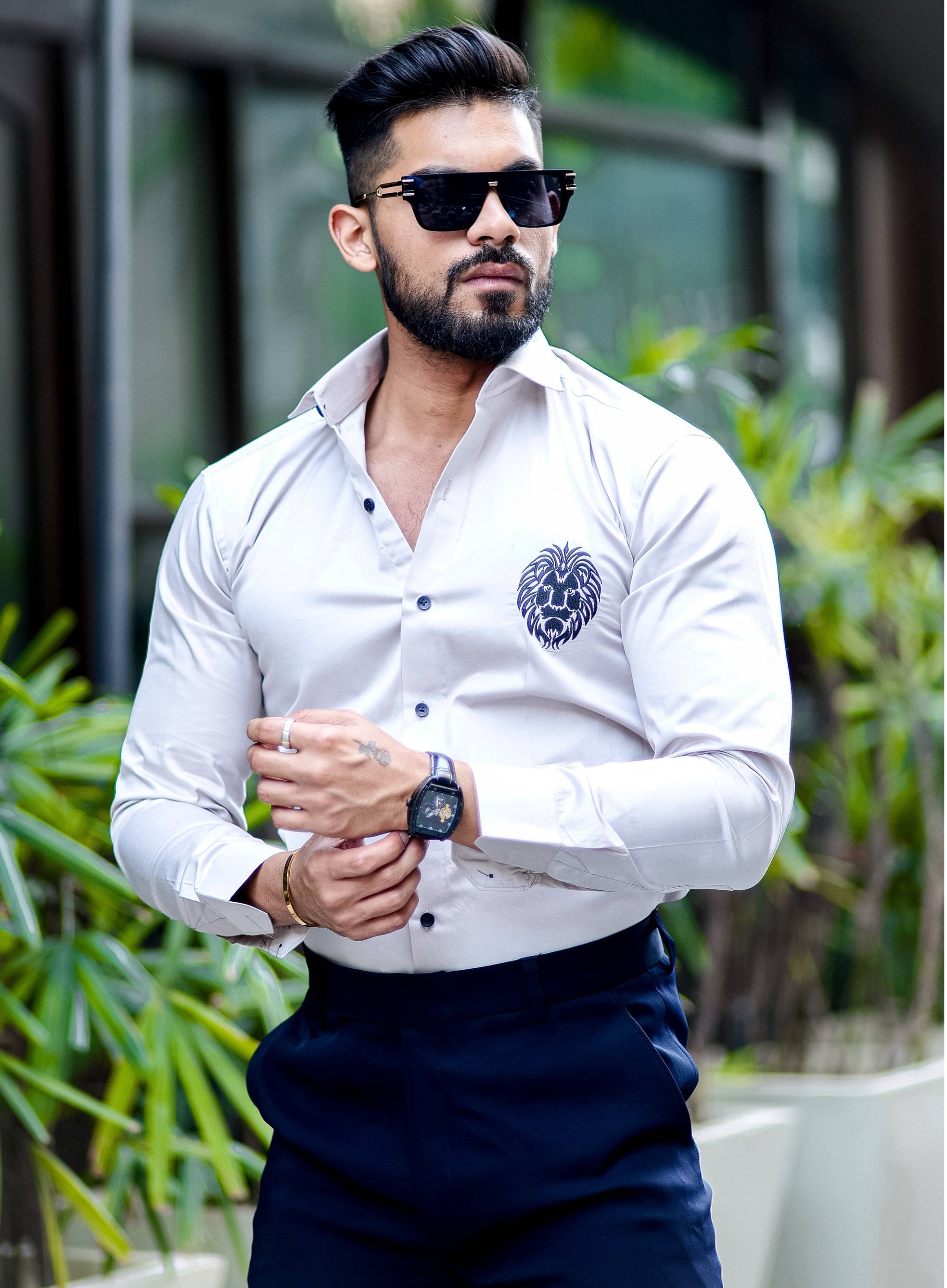 Mufasa Embroidered White Luxury Cotton Shirt