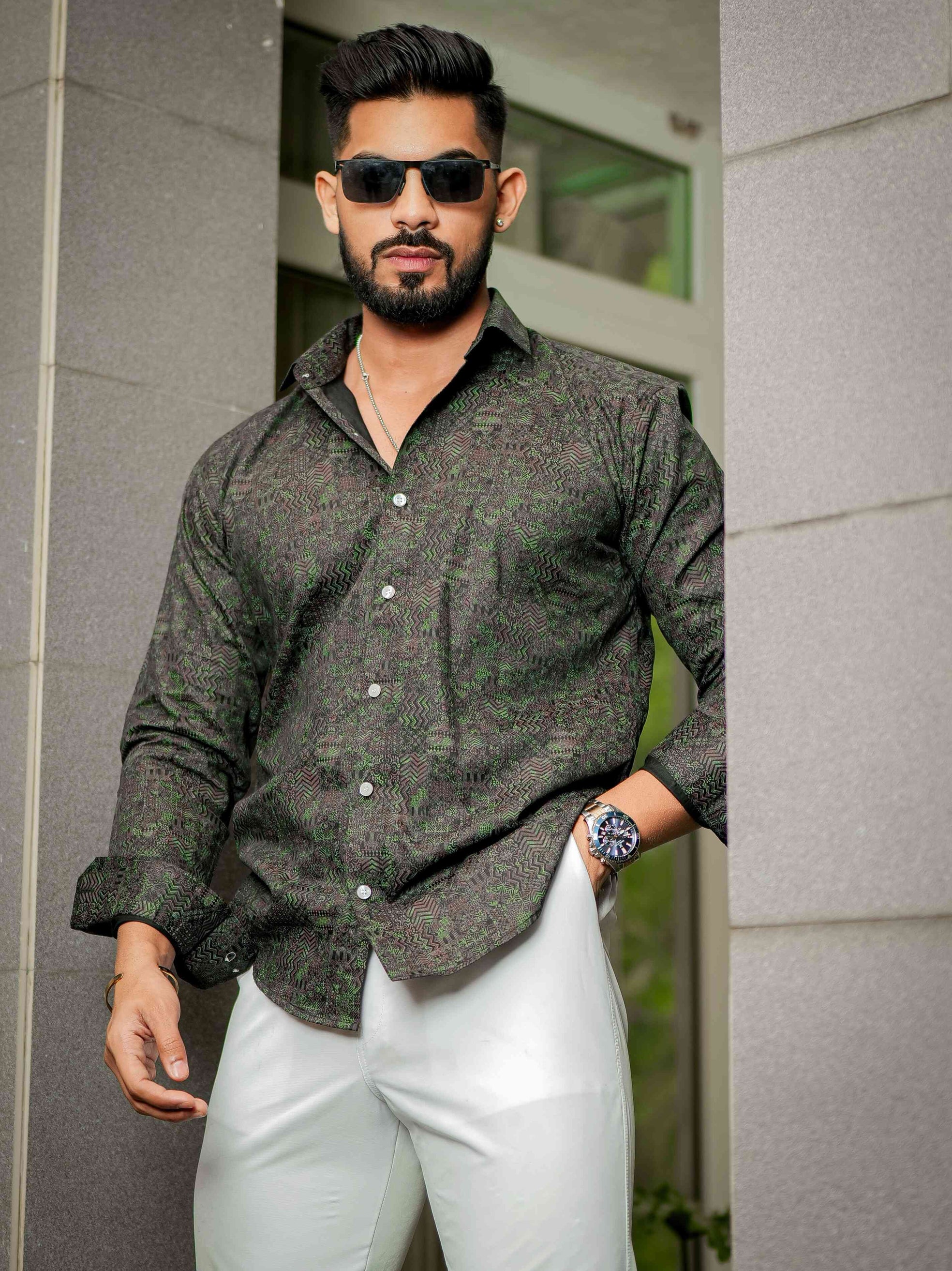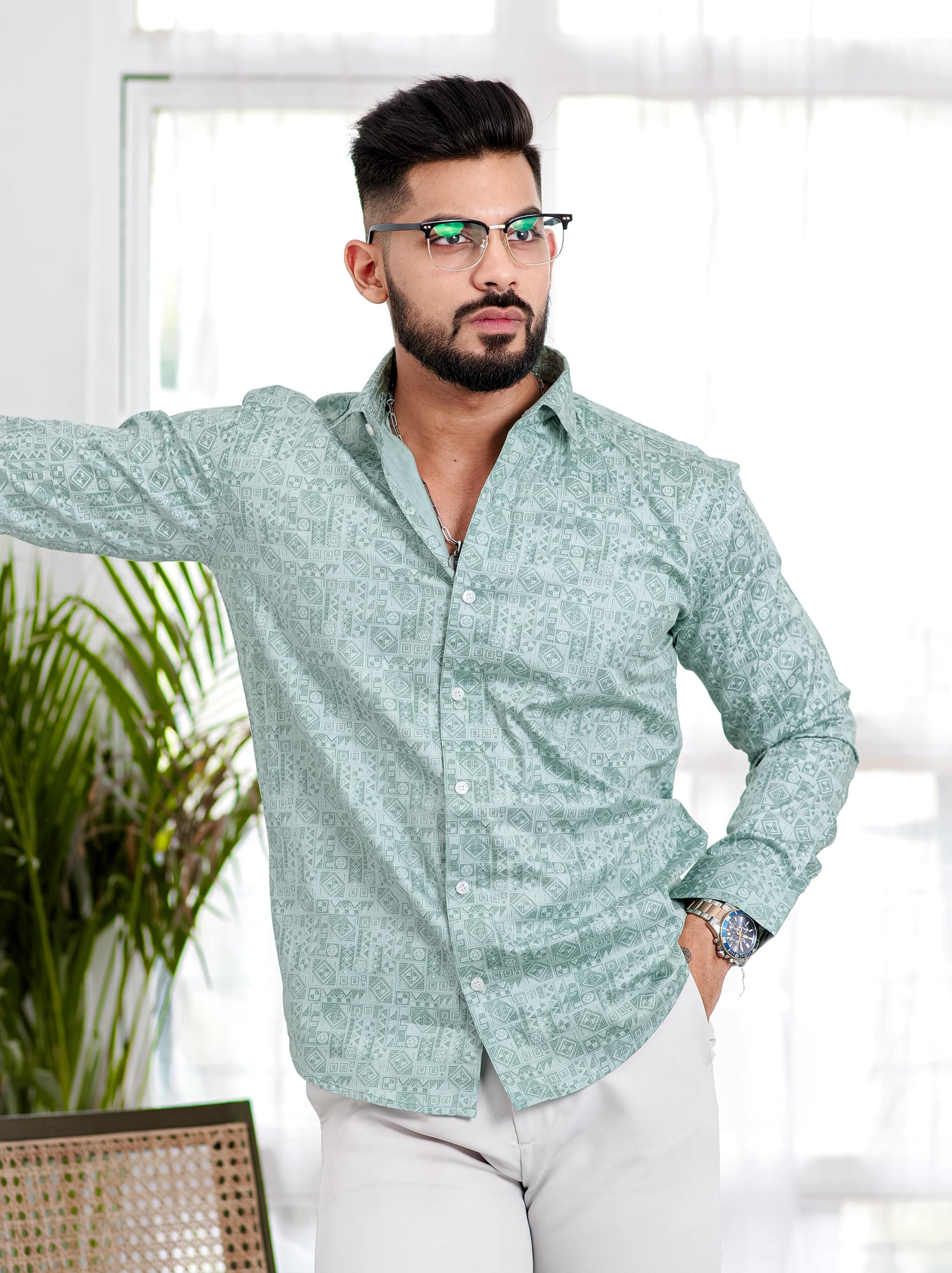 Green Oxford Cotton Designer Shirt