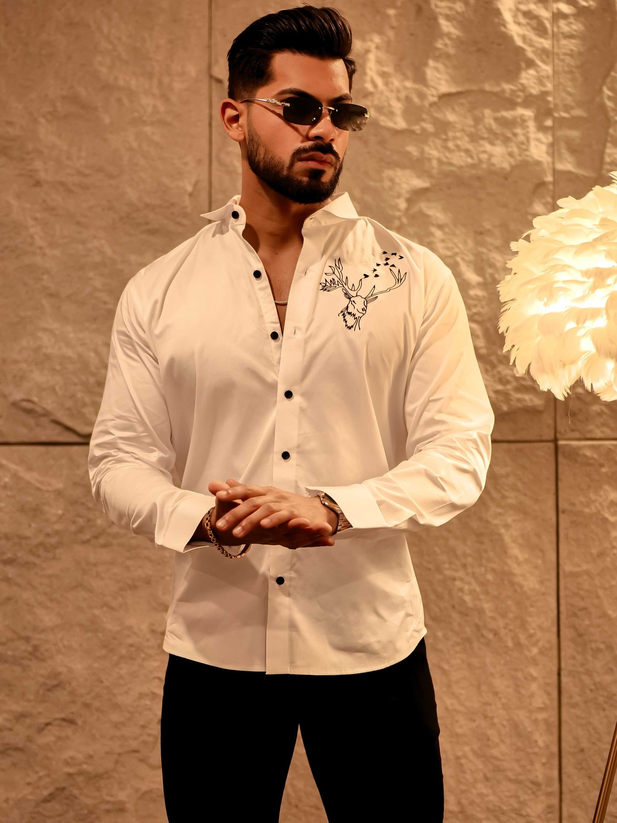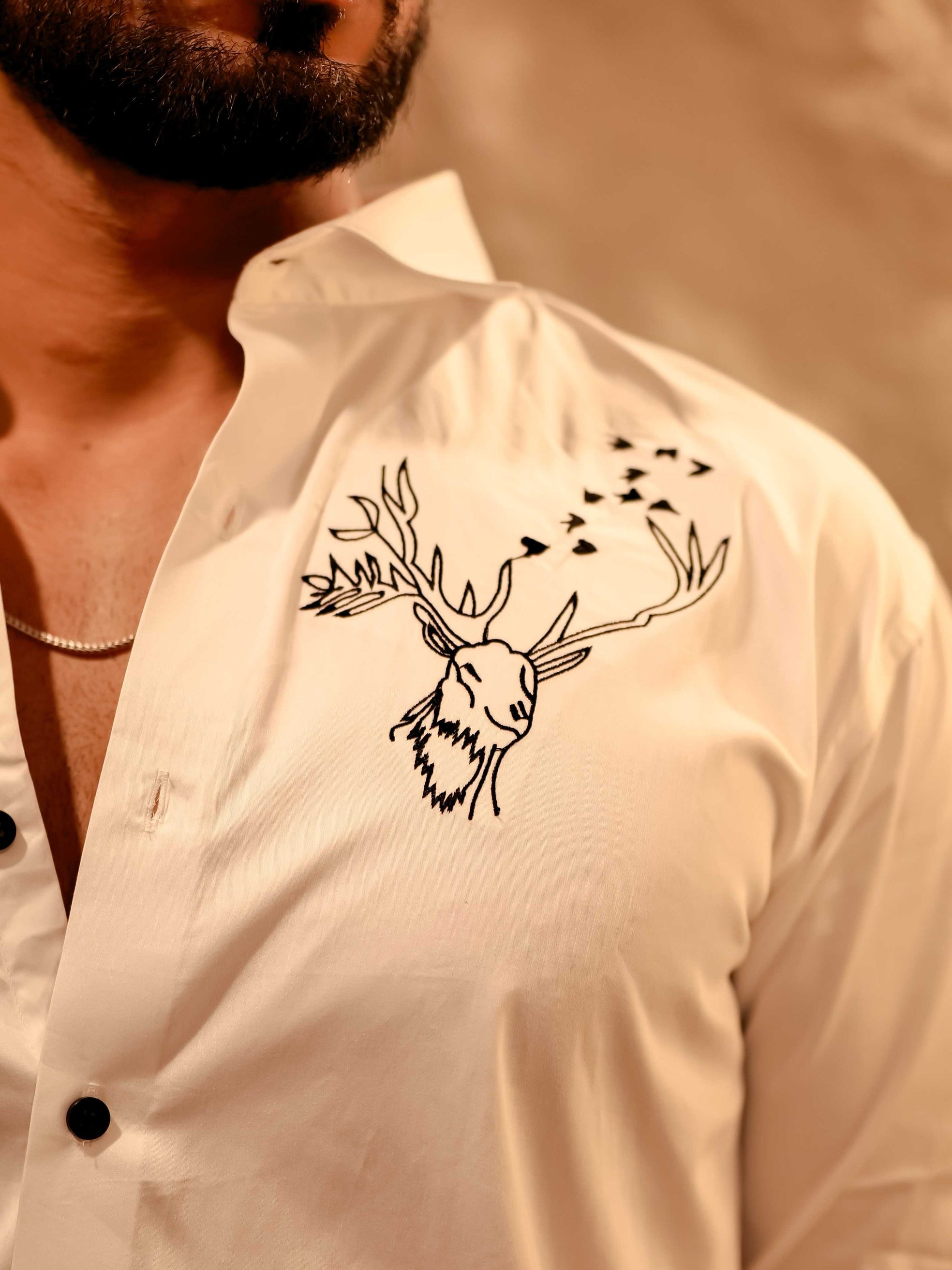 Reindeer Embroidered White Luxury Cotton Shirt