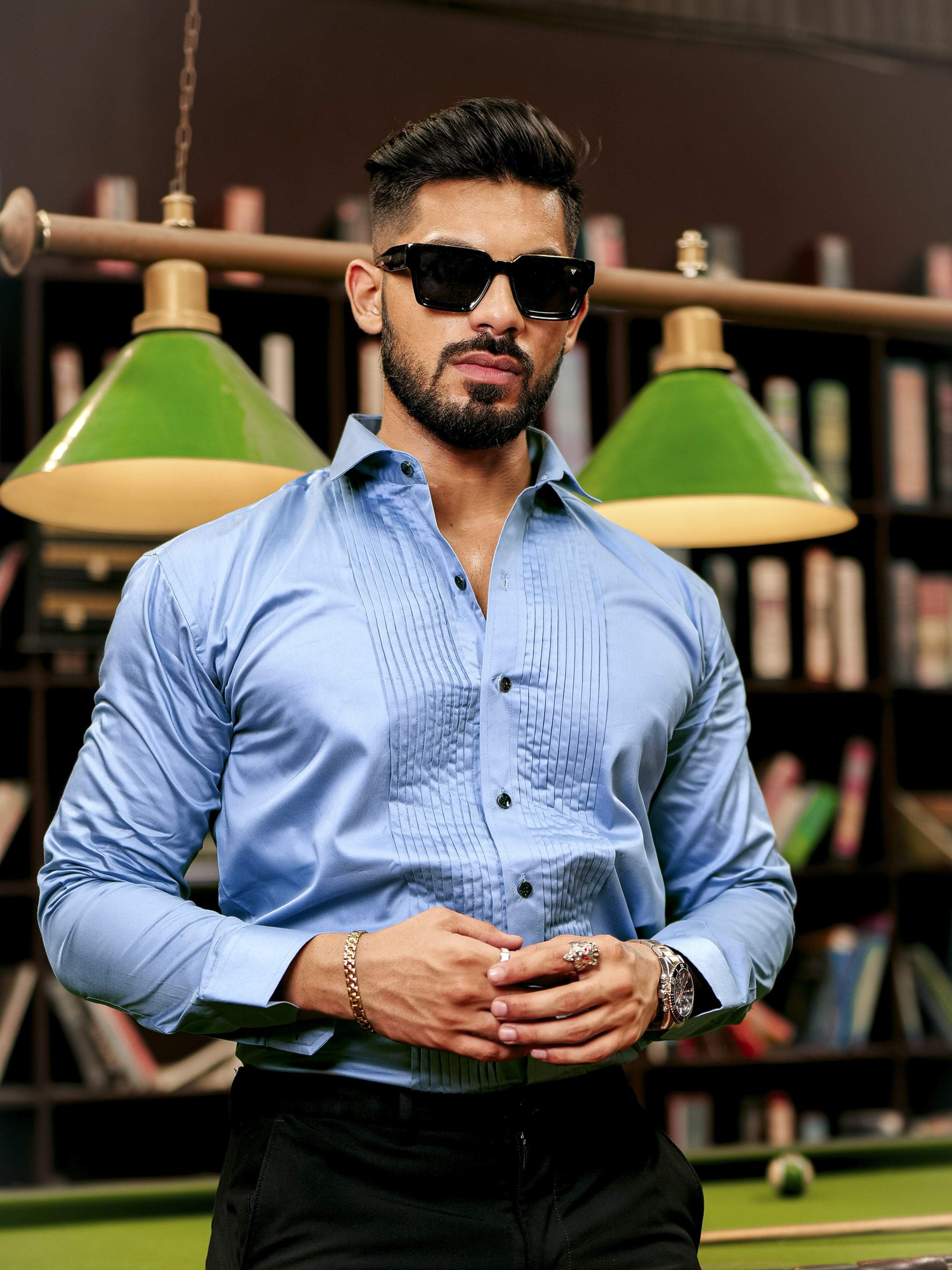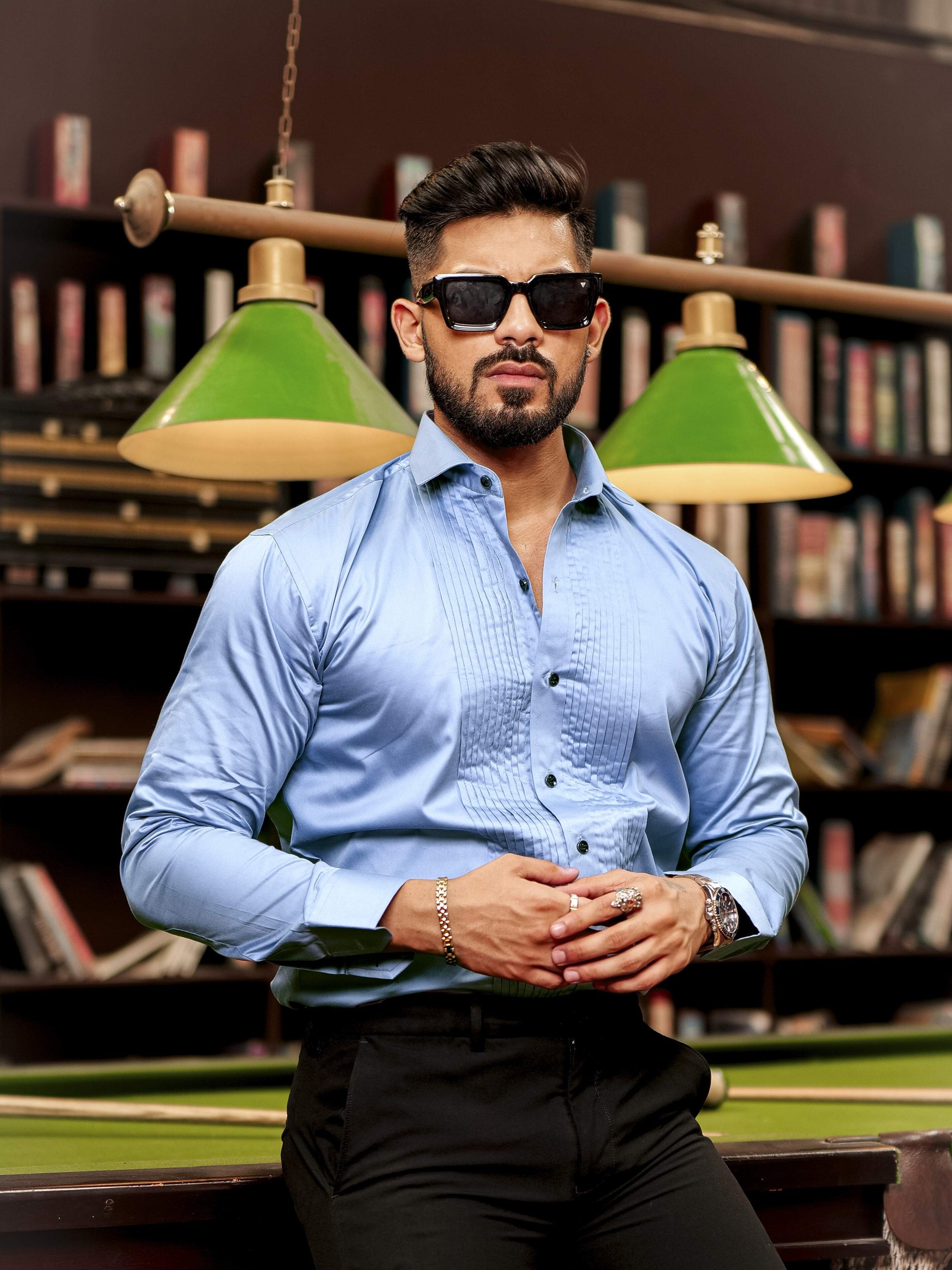Sky Subtle Sheen Tuxedo Premium Giza Satin Cotton Shirt
