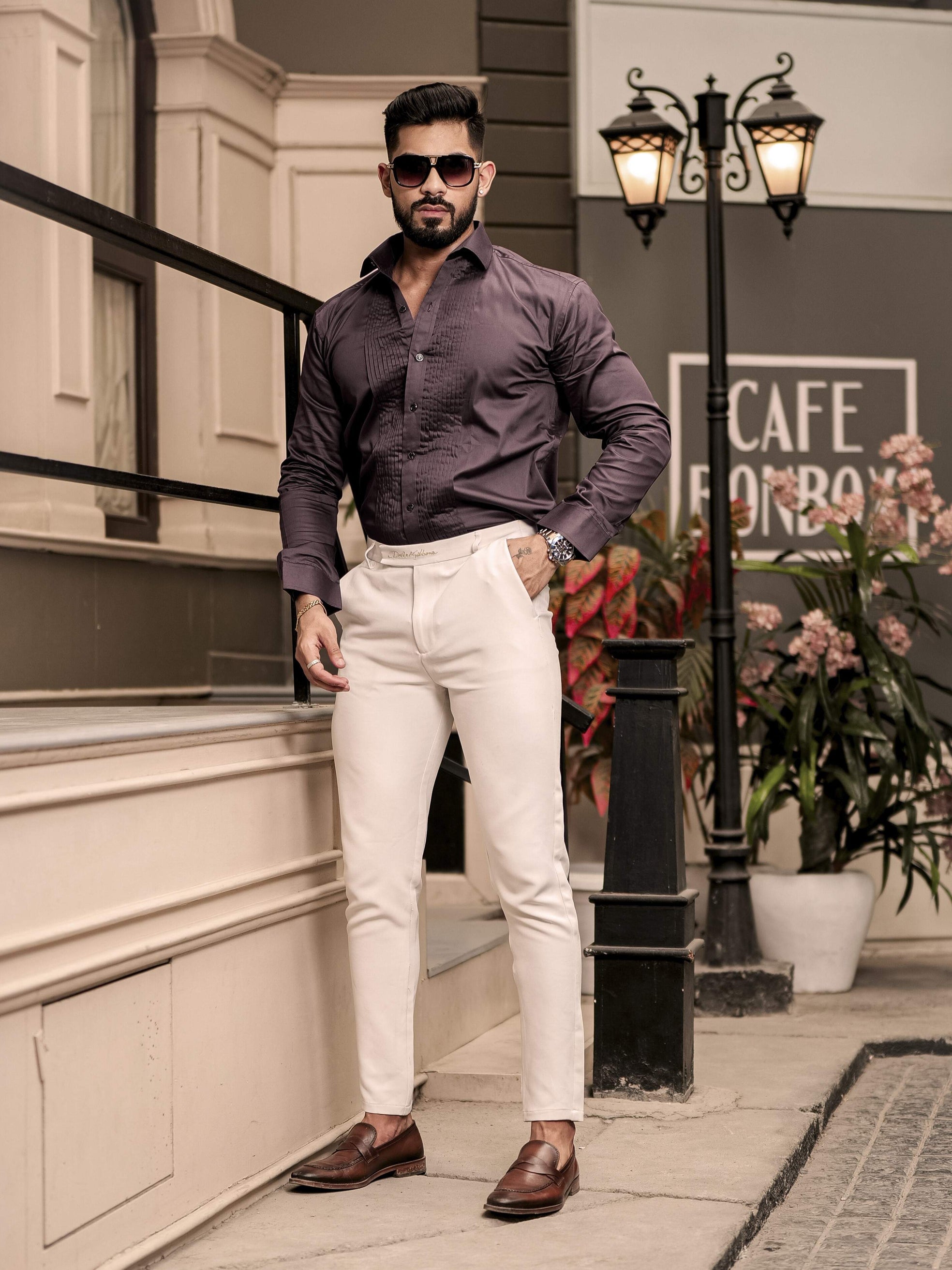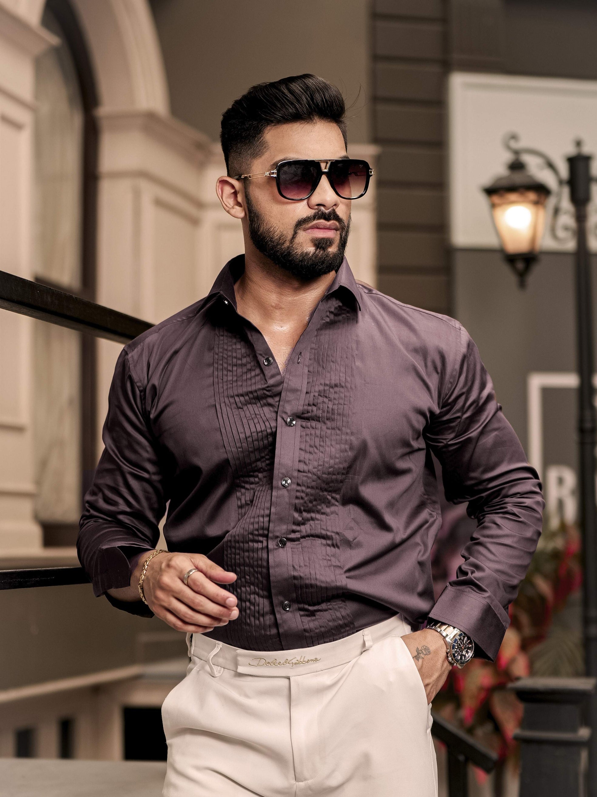 Brown Subtle Sheen Tuxedo Premium Giza Satin Cotton Shirt