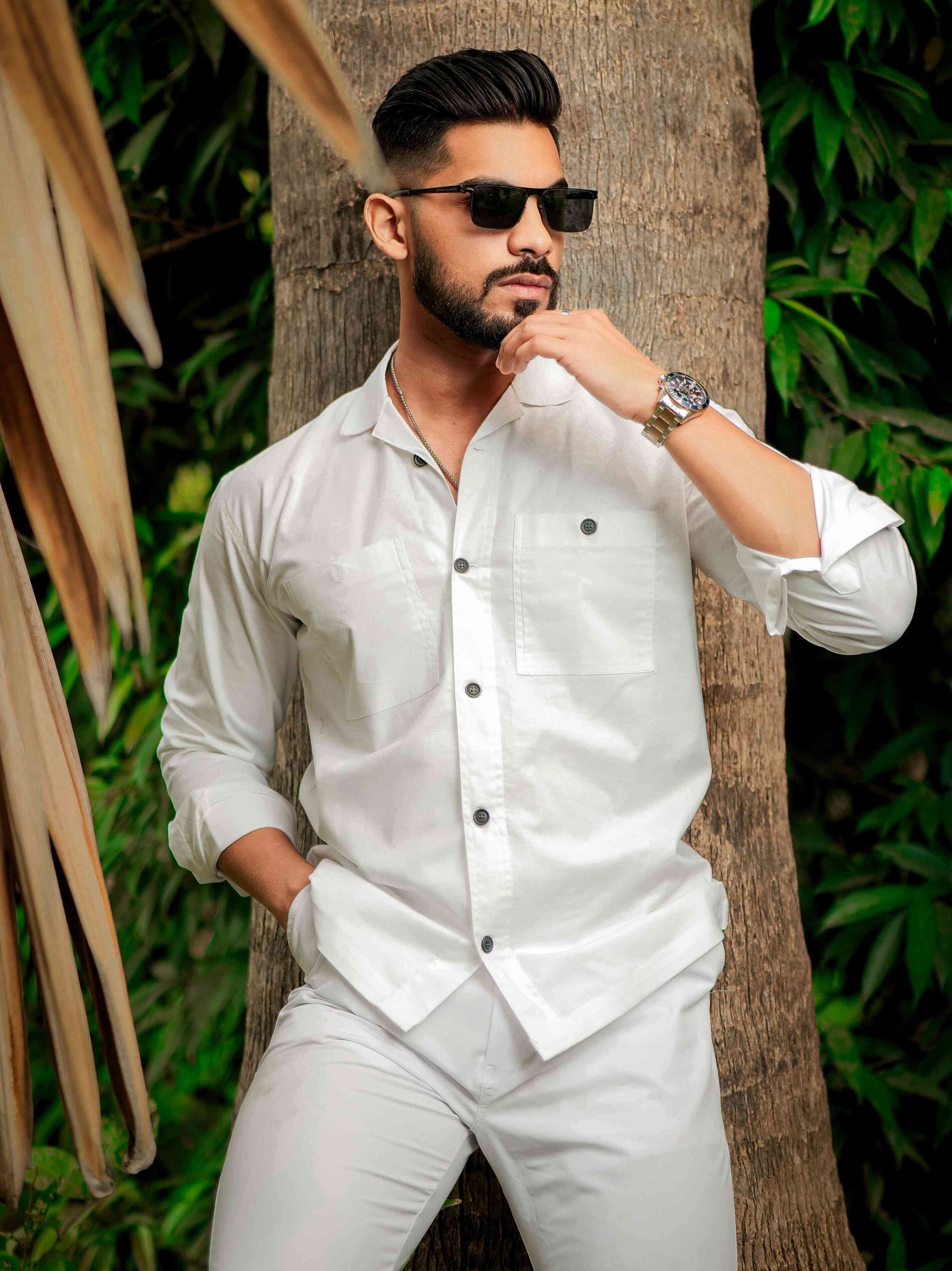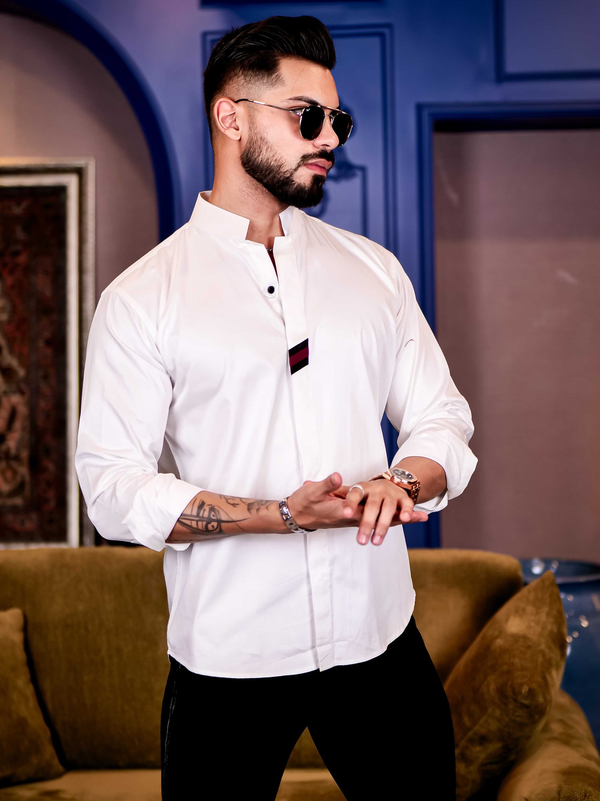 White Satin Cotton Designer Shirt