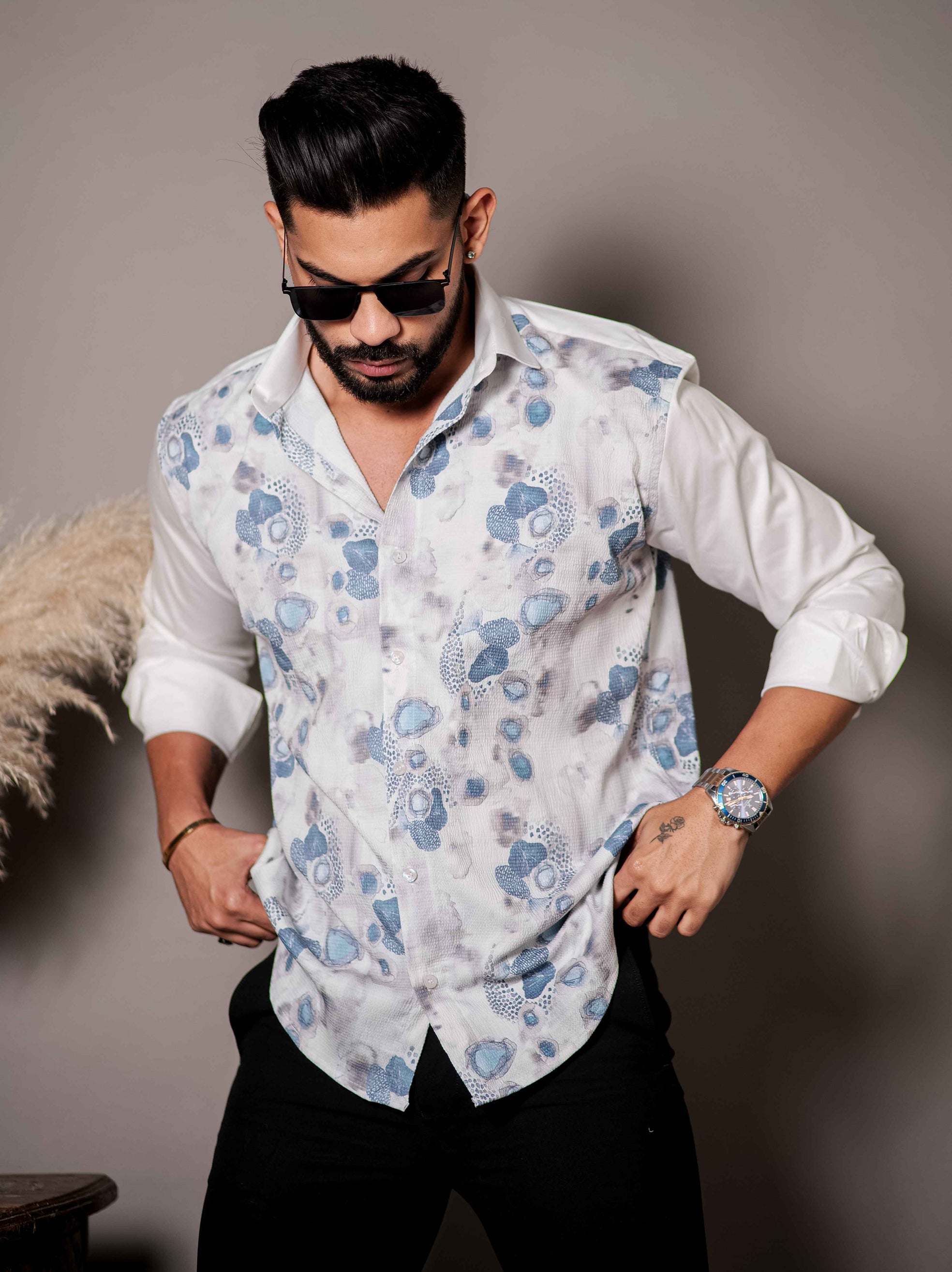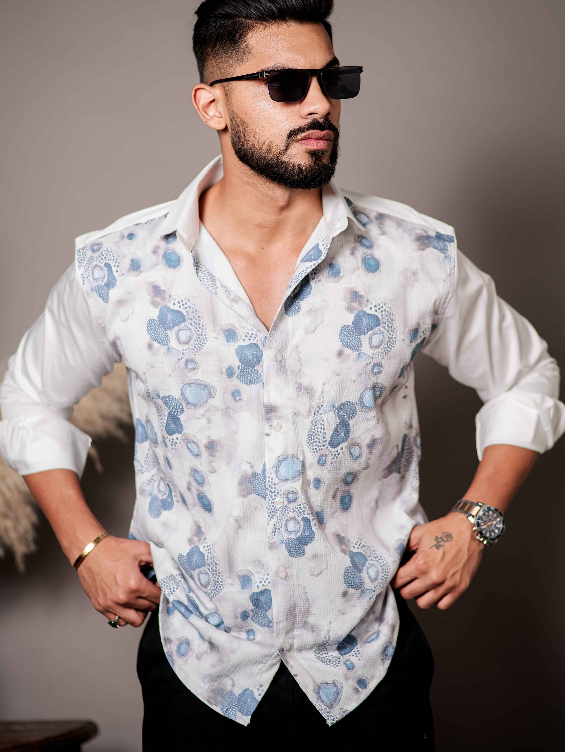 White Printed Premium Shirt for Men's