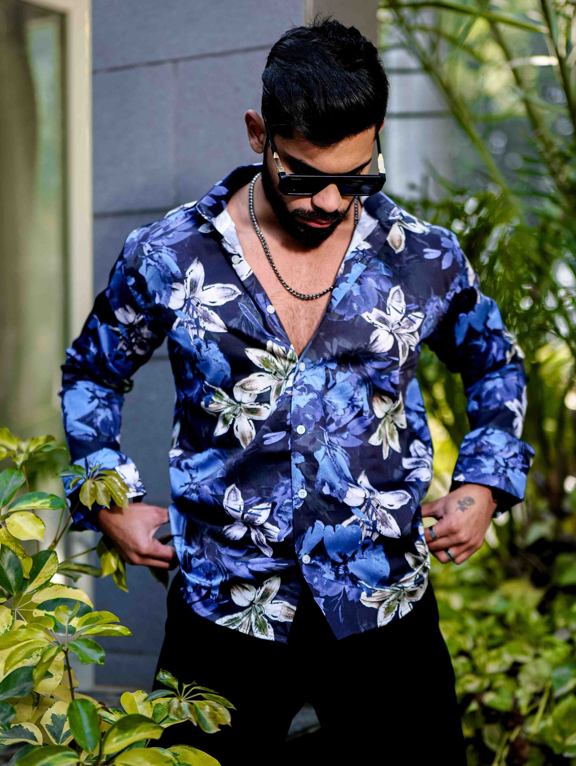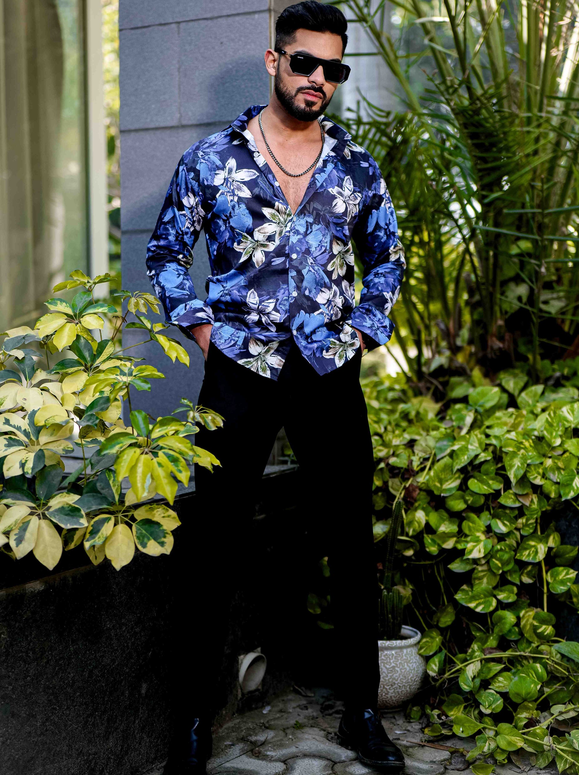 Blue Flower Giza Cotton Print Premium Shirt