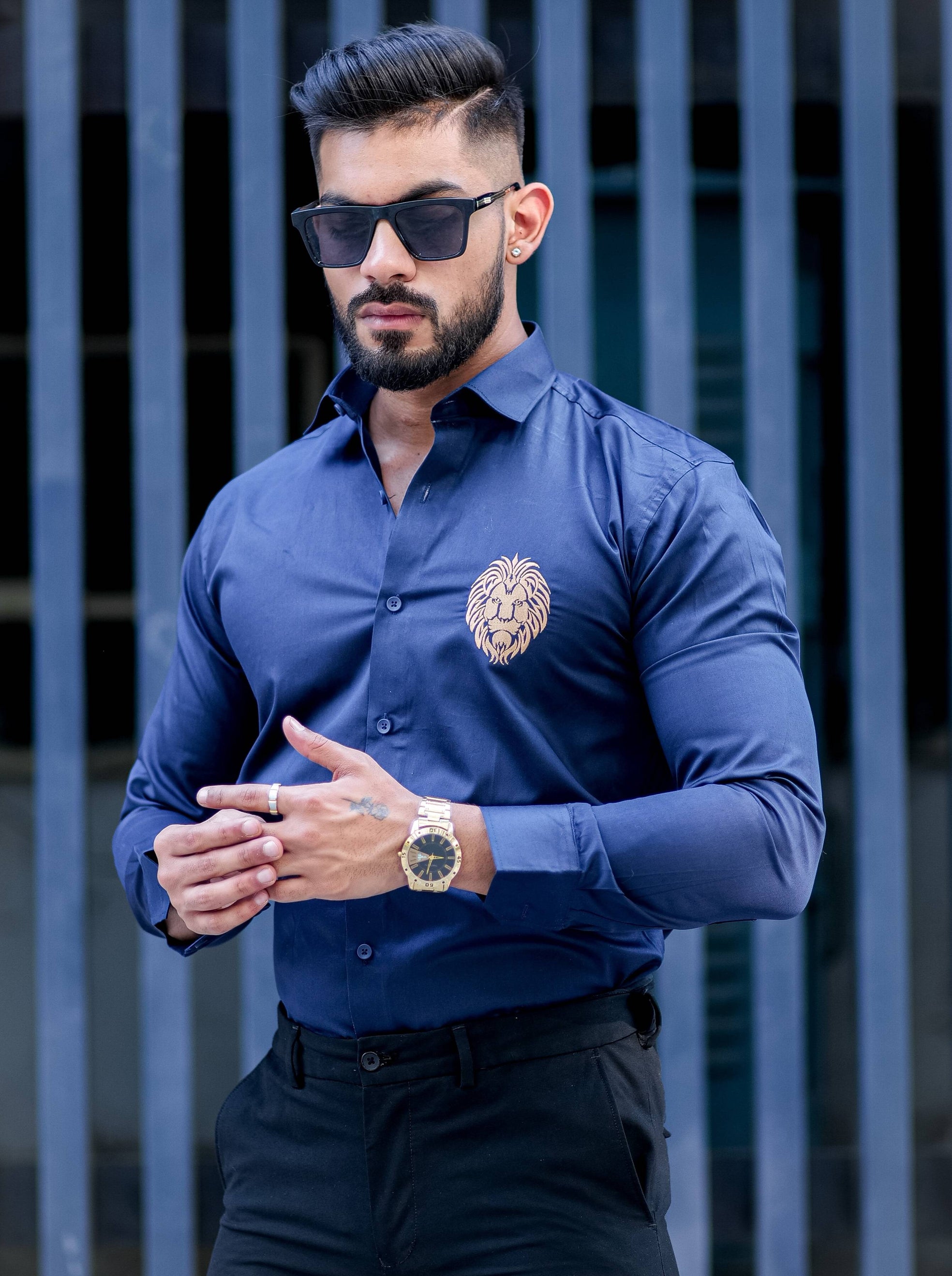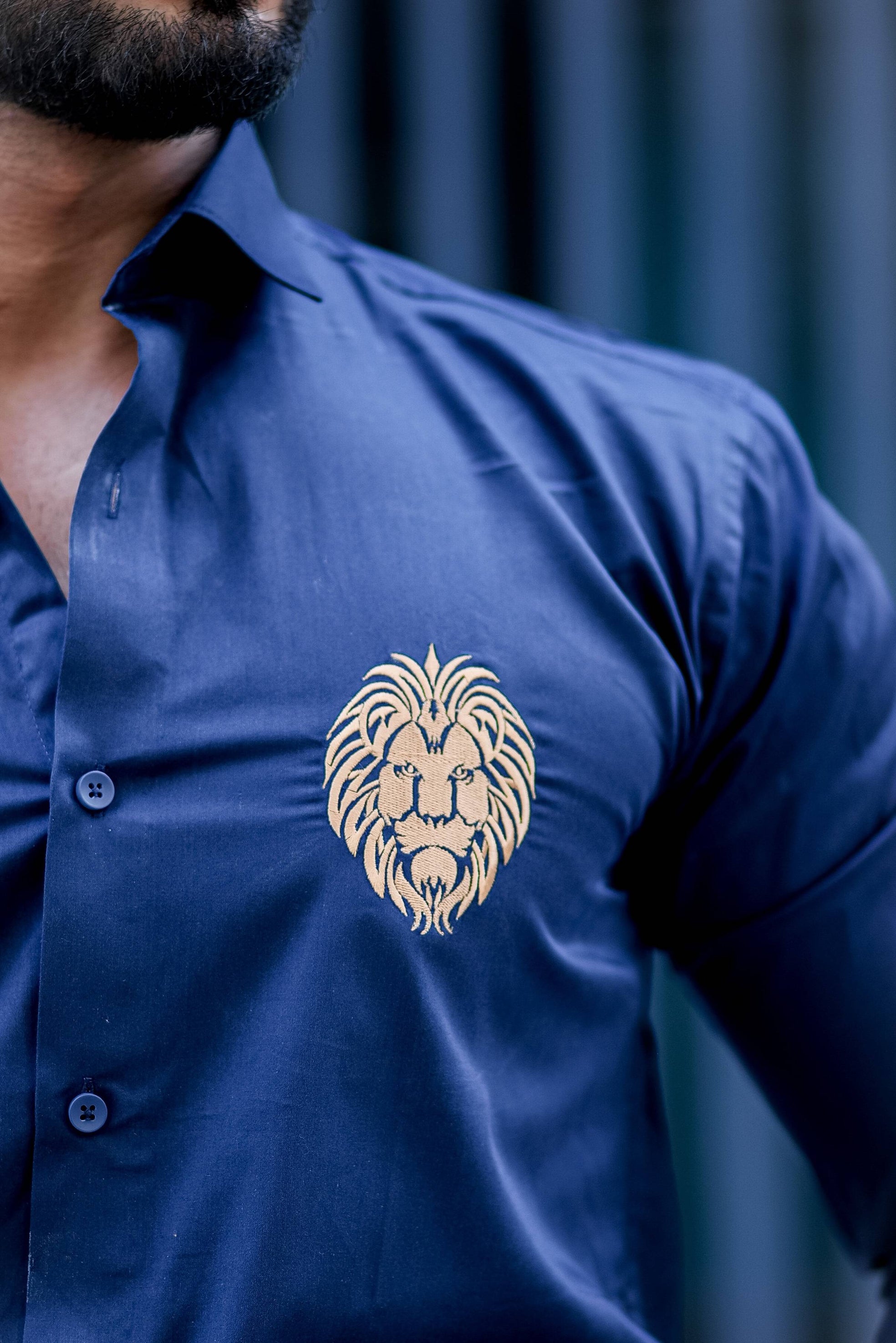 Mufasa Golden Embroidered Blue Premium Shirt For Men