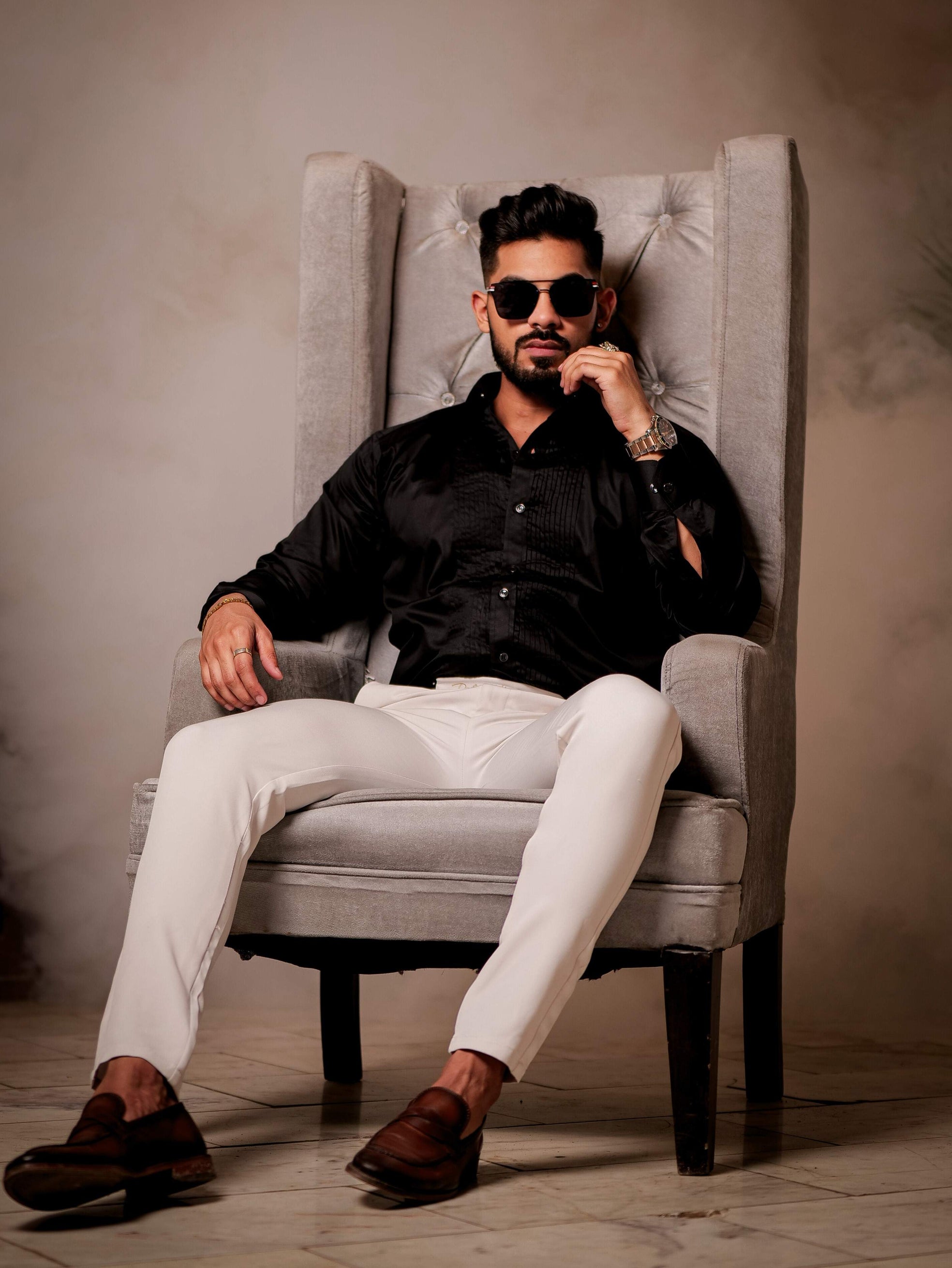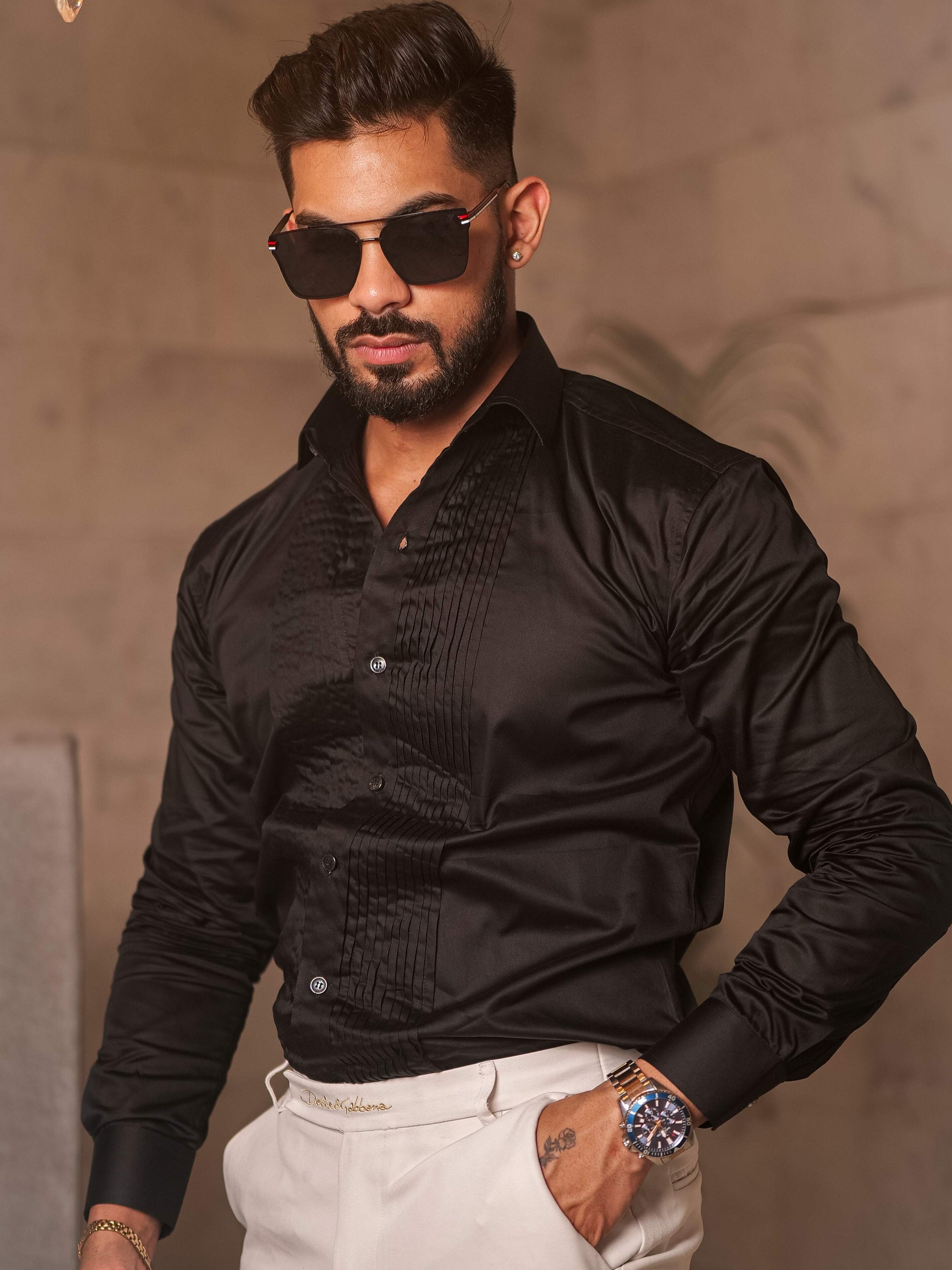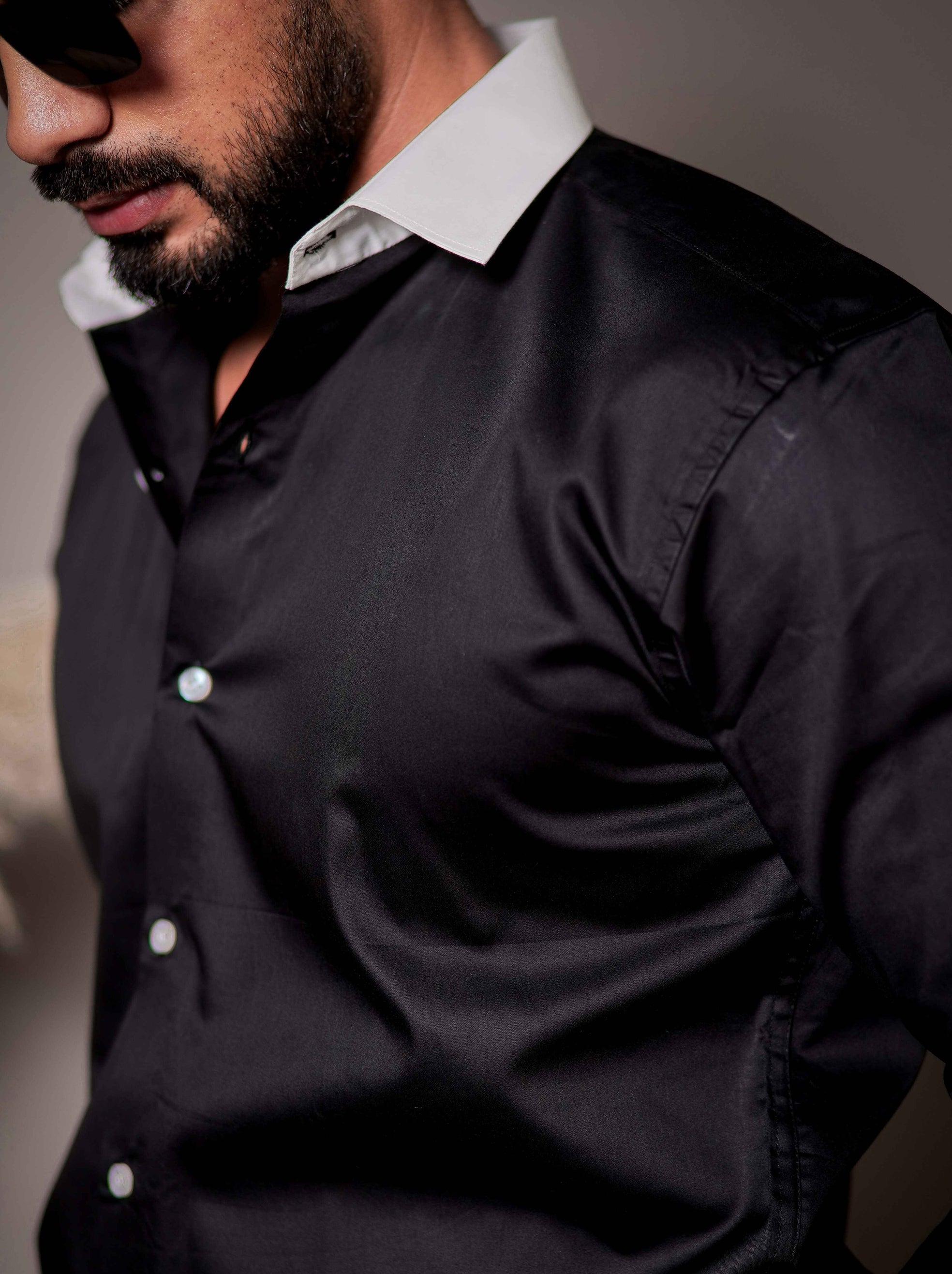Black Subtle Sheen Tuxedo Premium Giza Satin Cotton Shirt