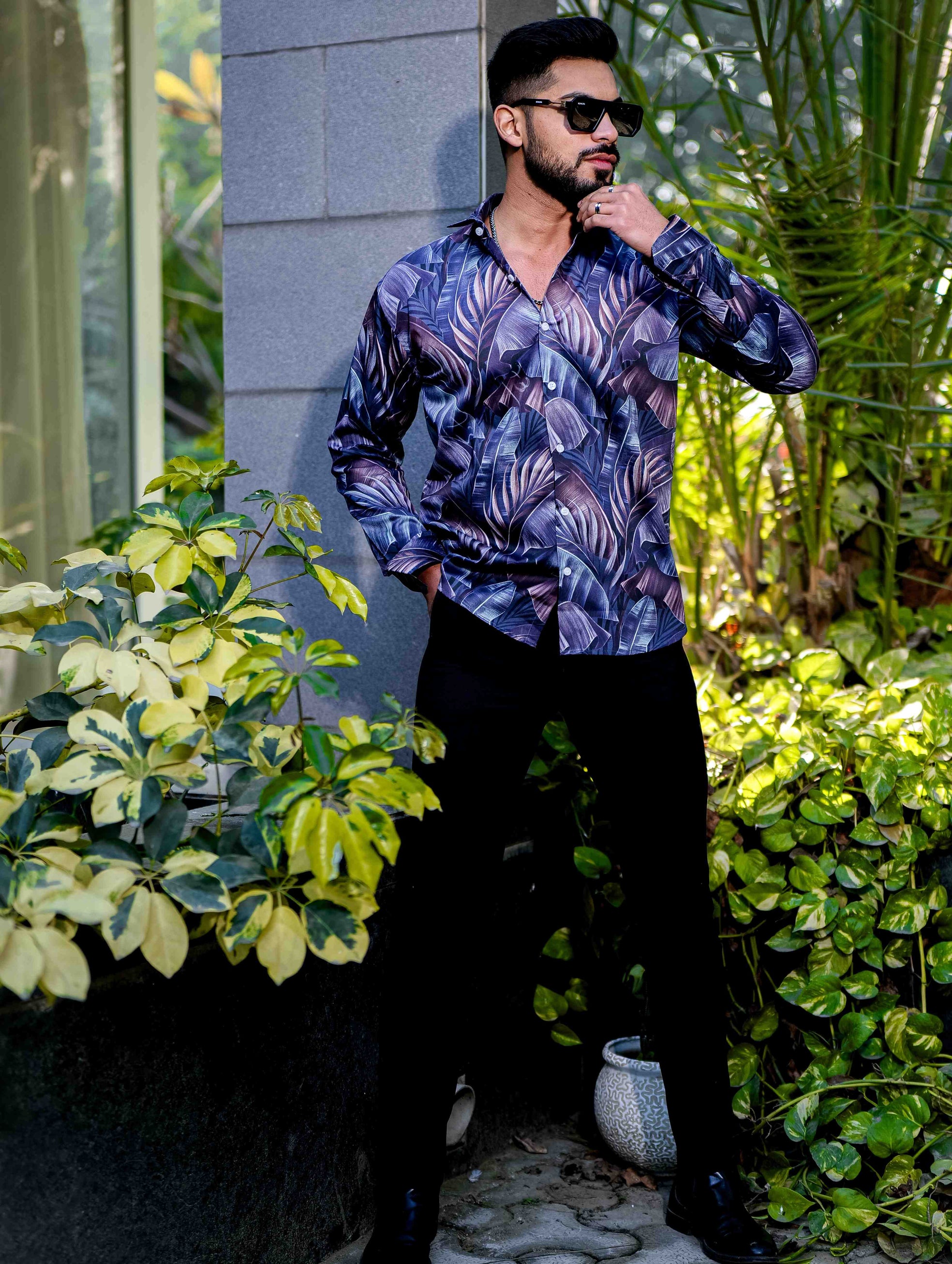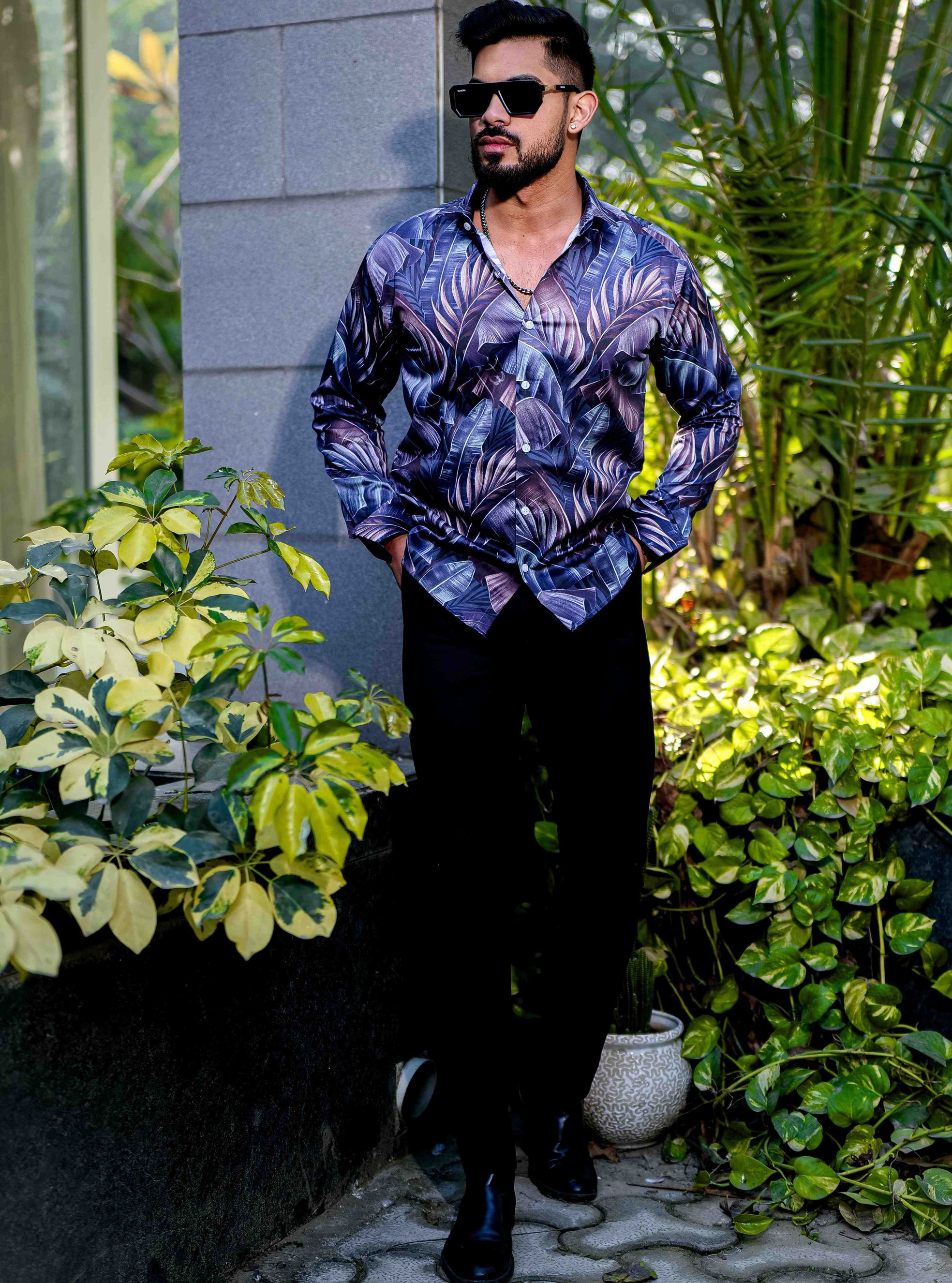 Blue Satin Print Premium Shirt