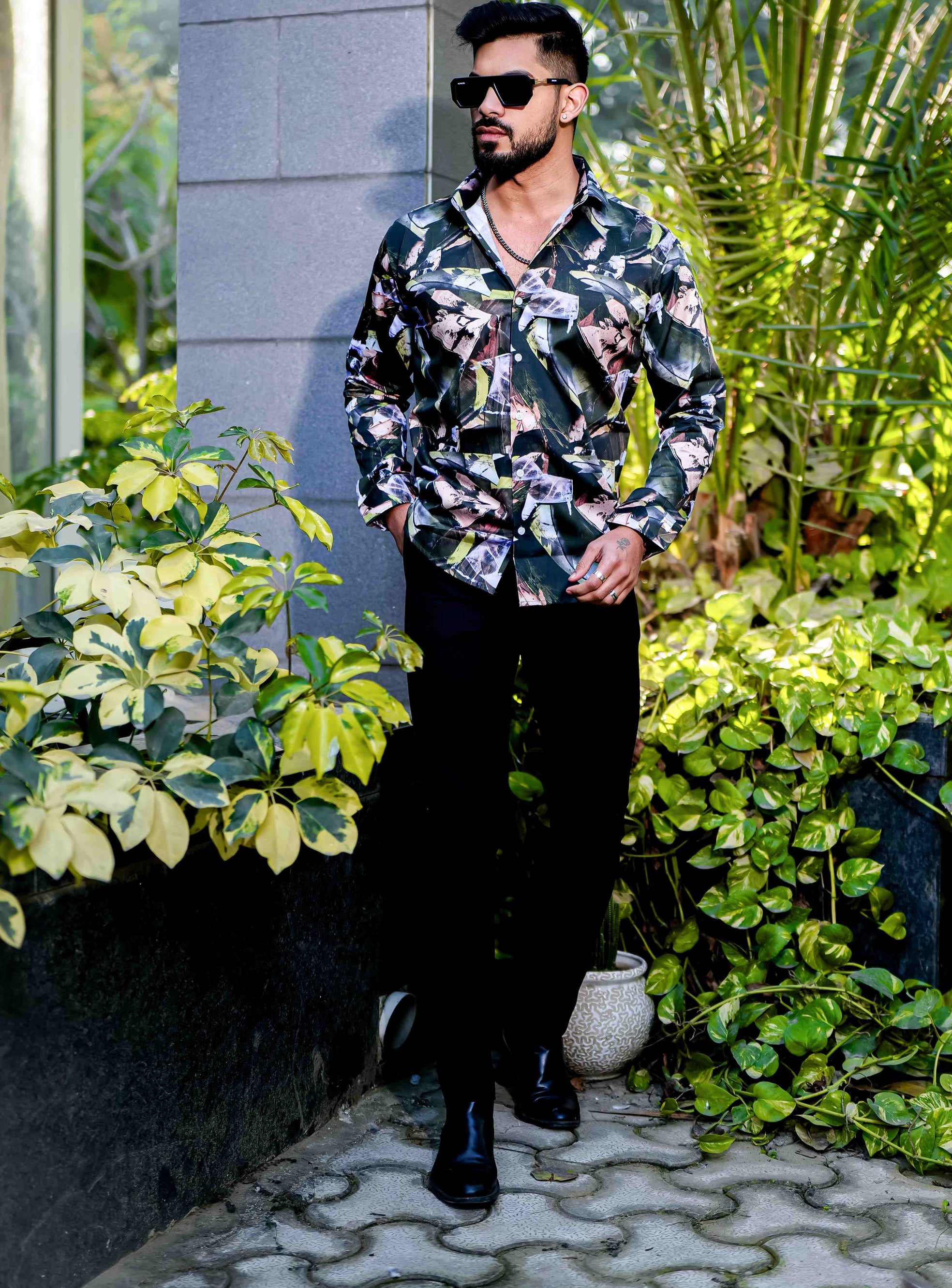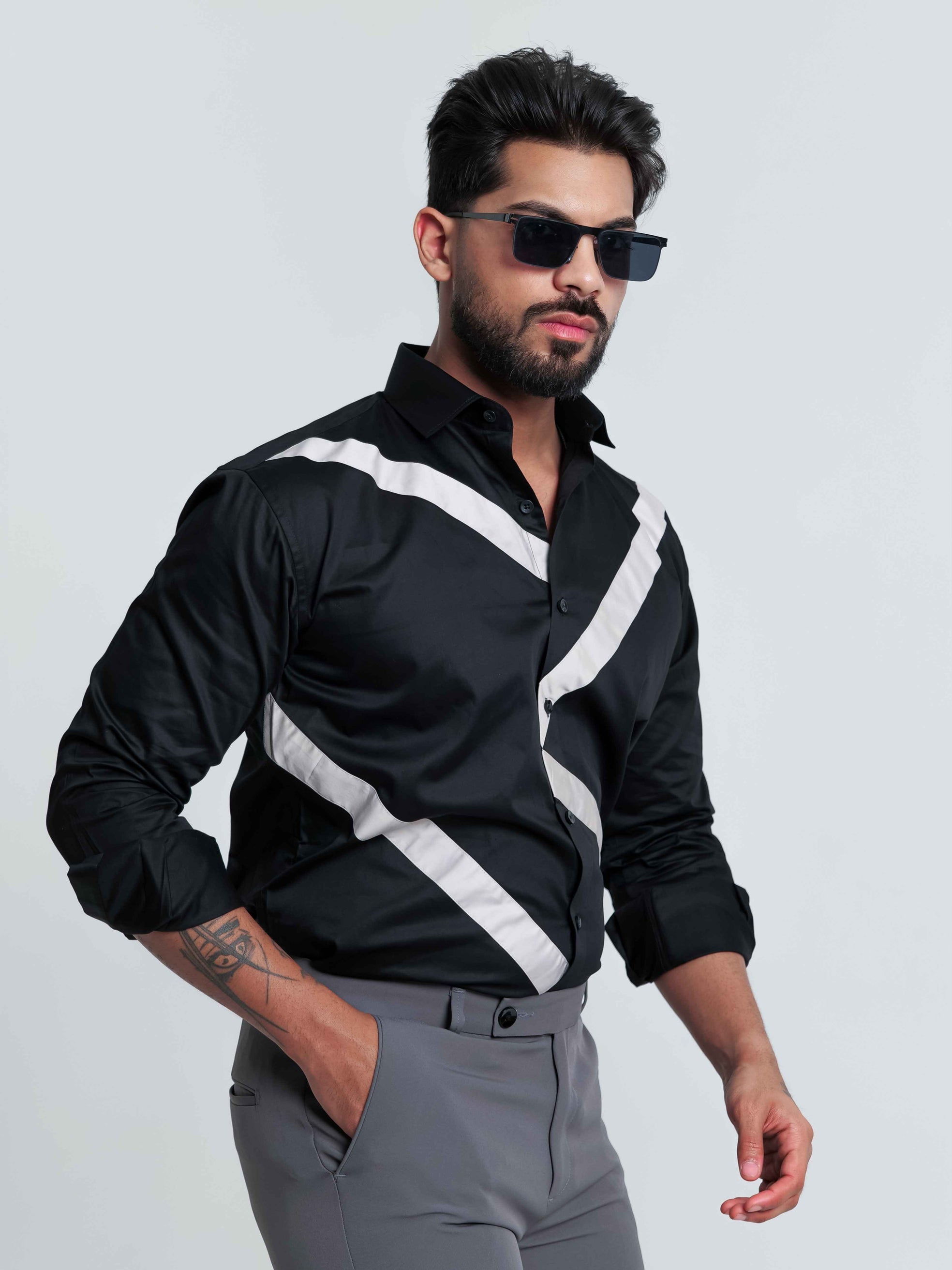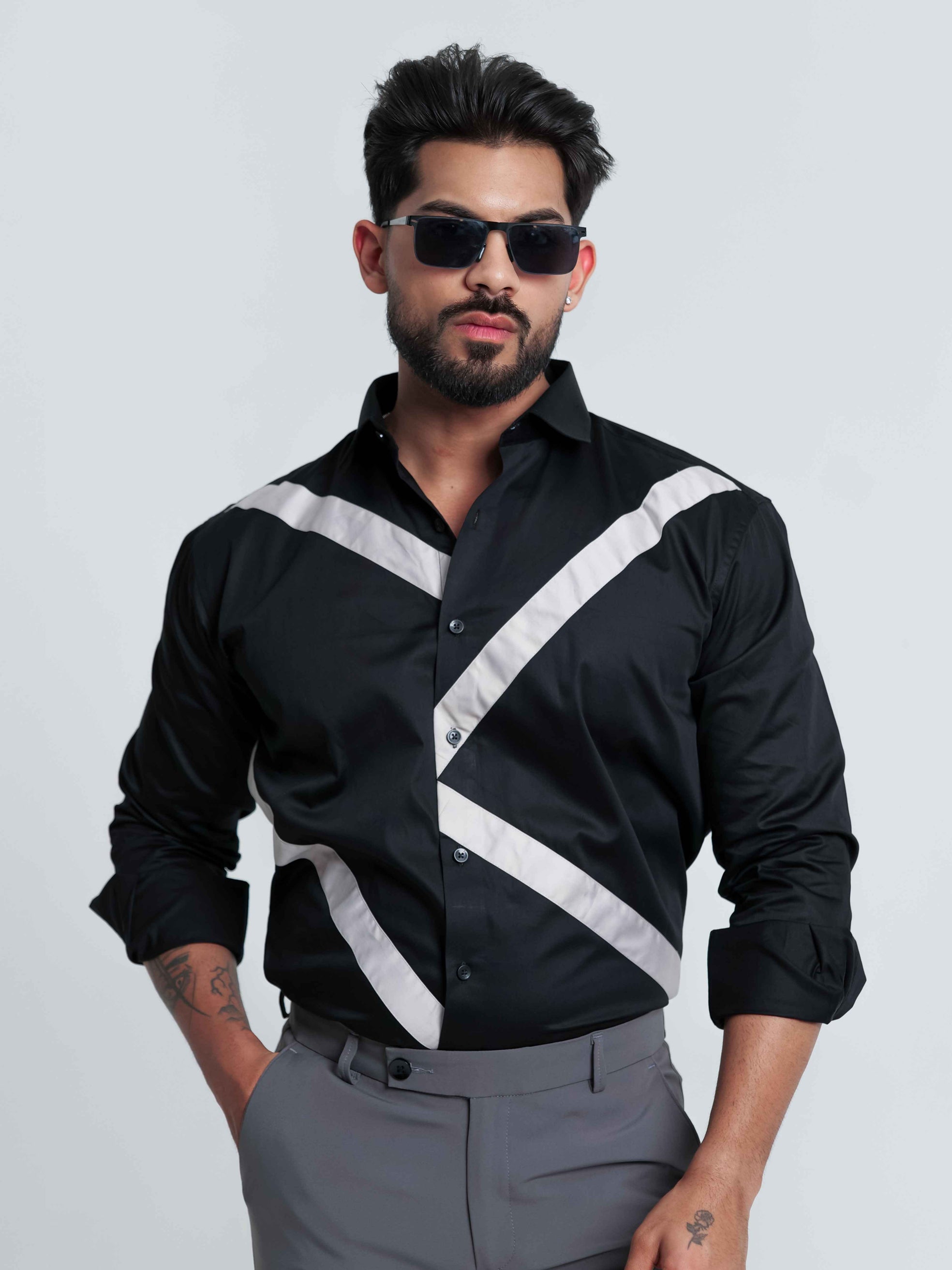 FOOMER BLACK CUT N SEW DESIGNER SHIRT FOR MEN'S