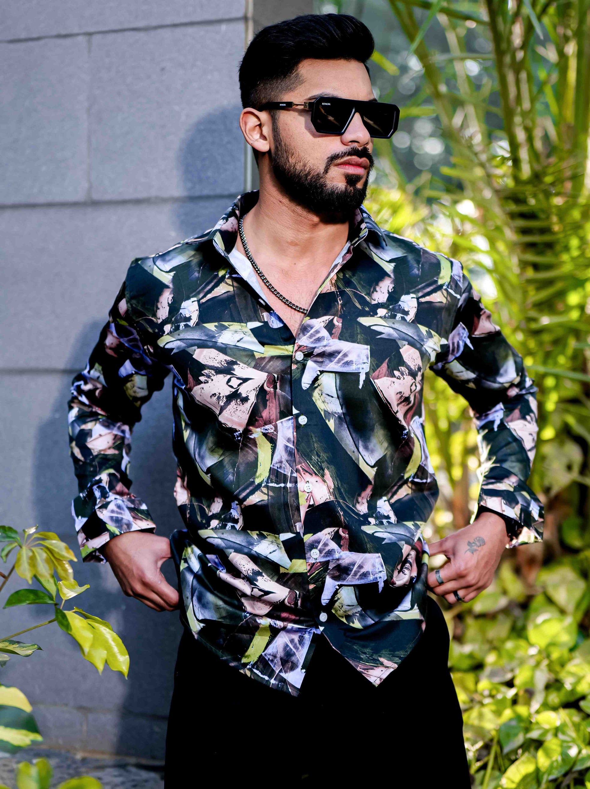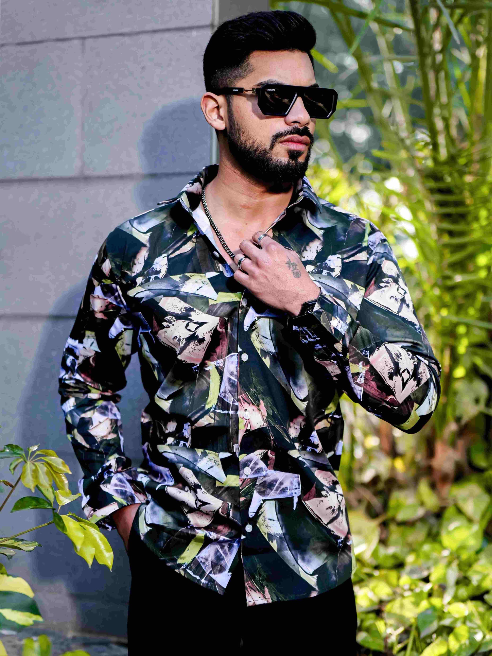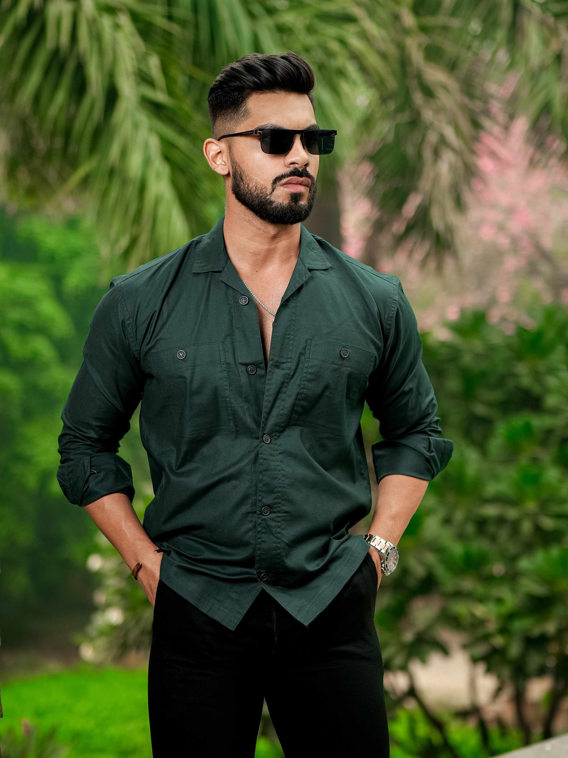 Dark Green Satin Print Premium Shirt