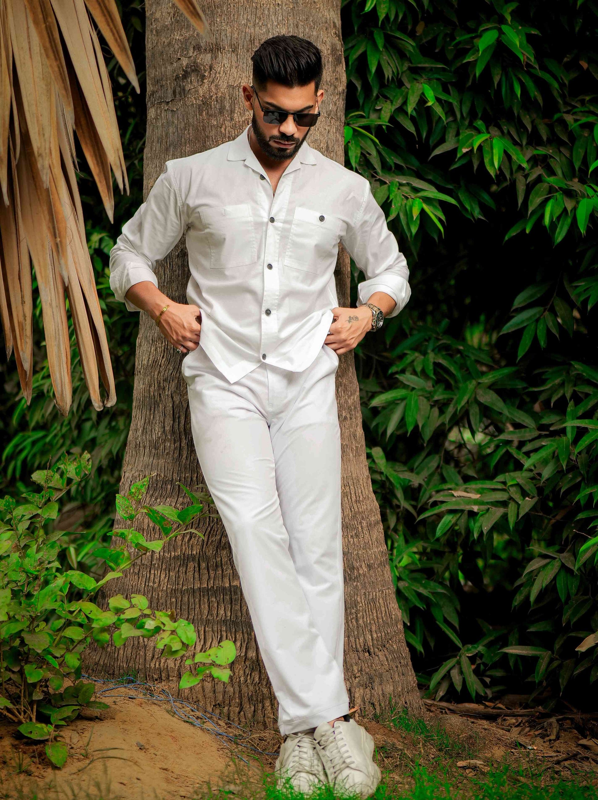White Cut n sew Premium Cotton Shirt For Men