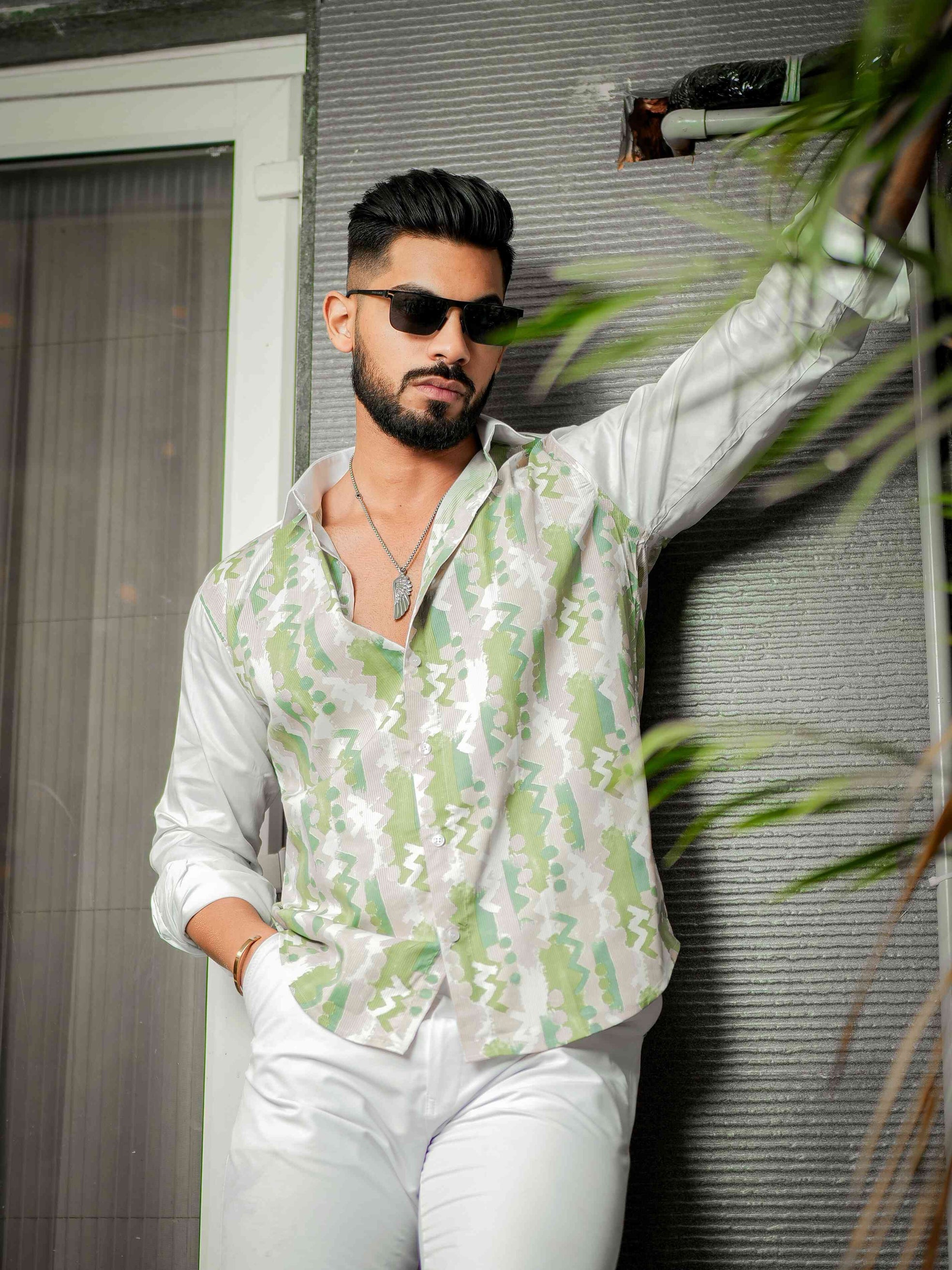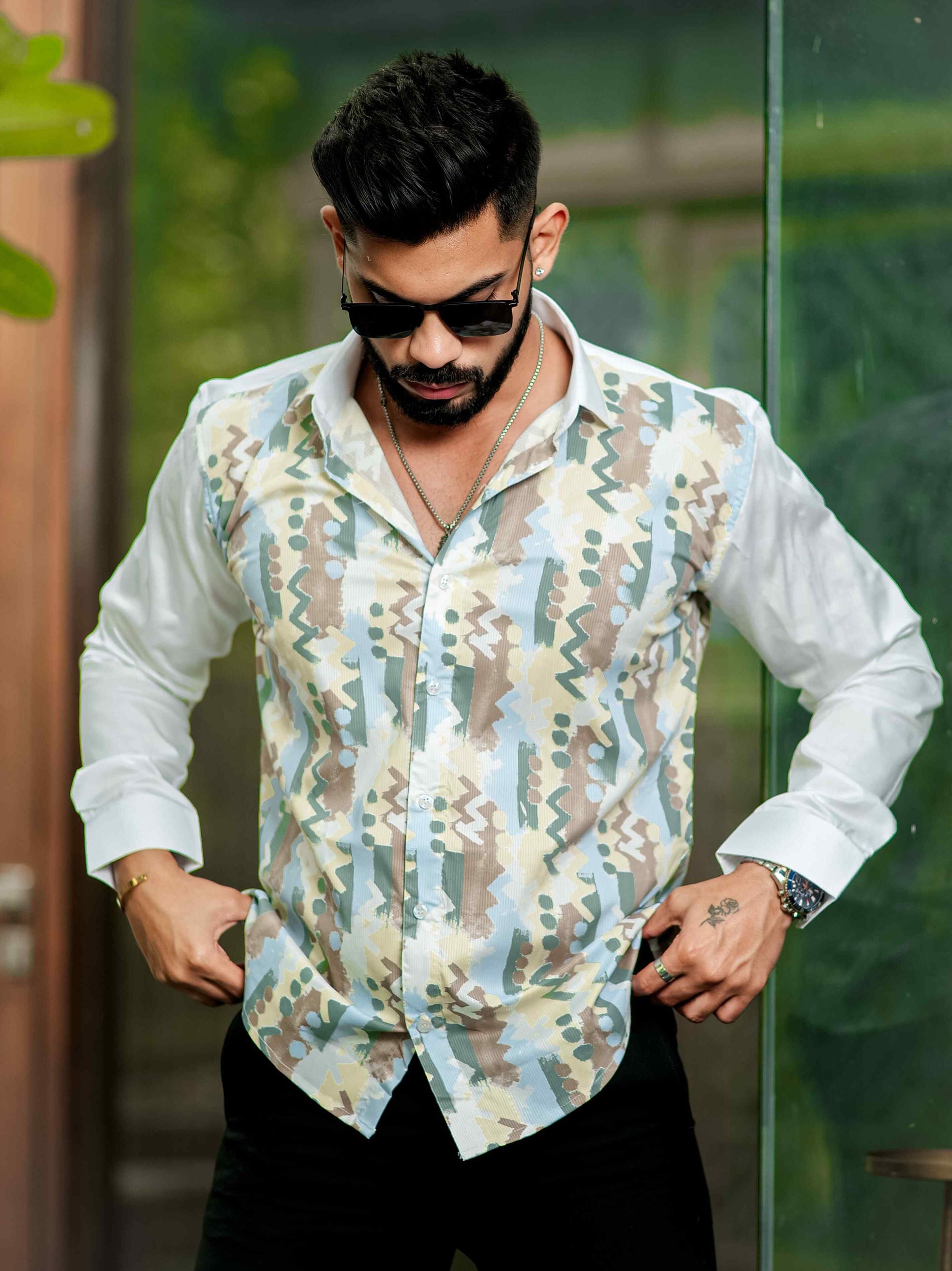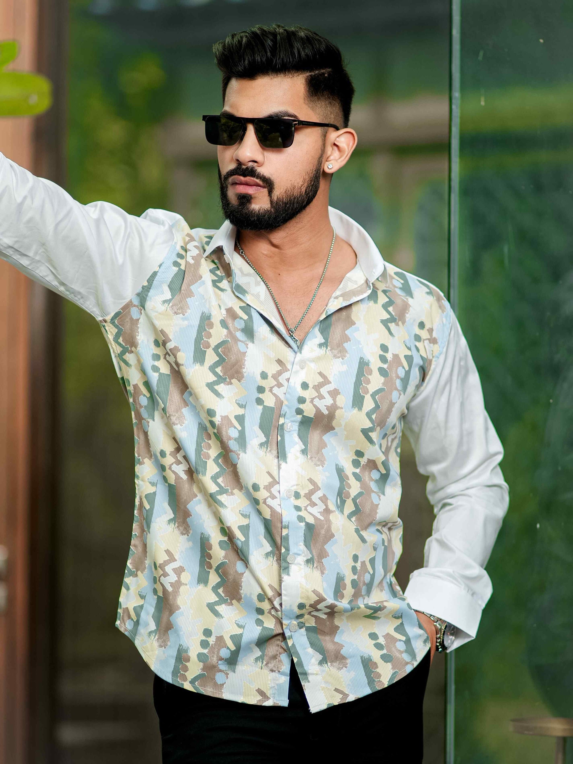 Green Satin Print Premium Shirt