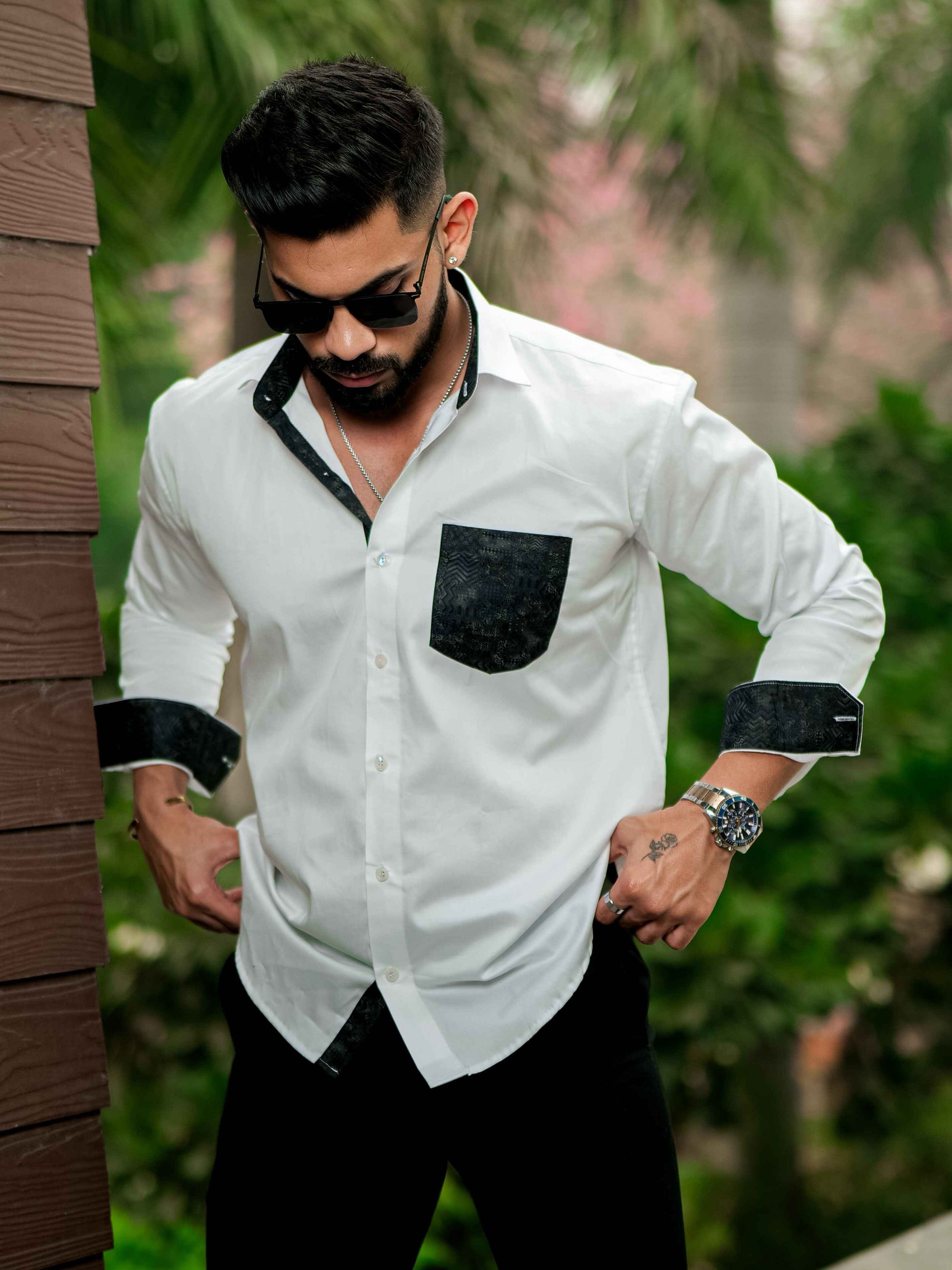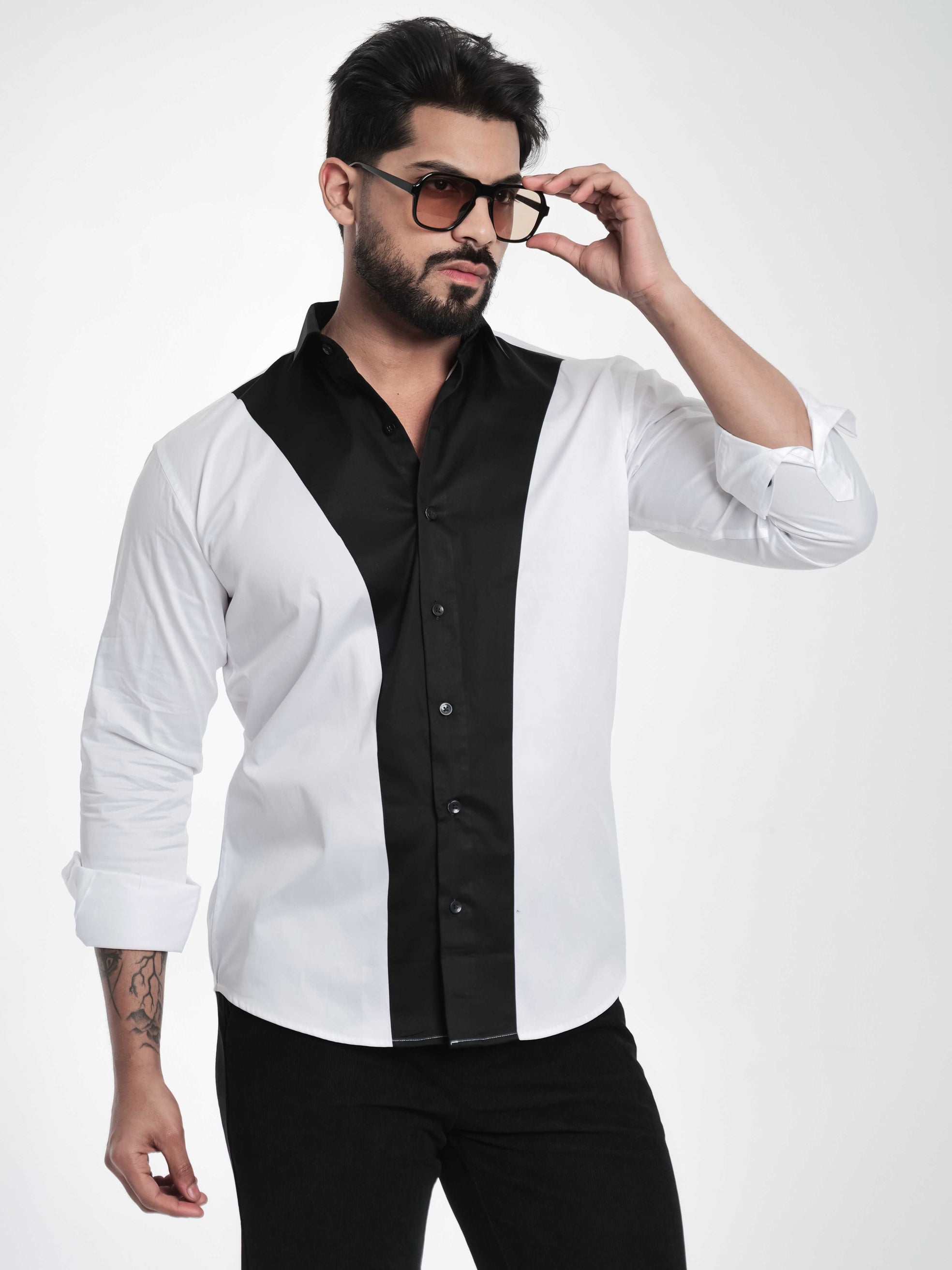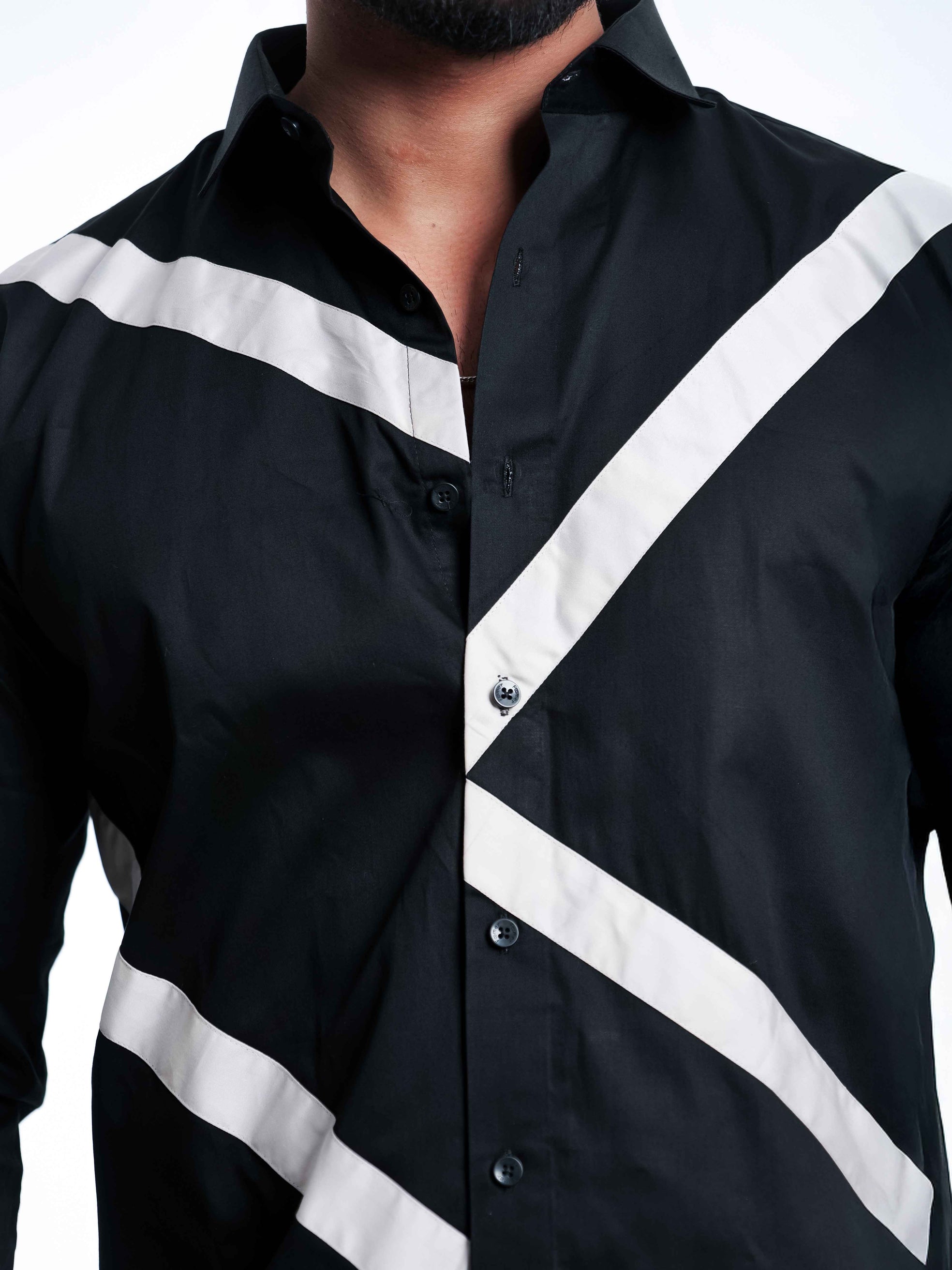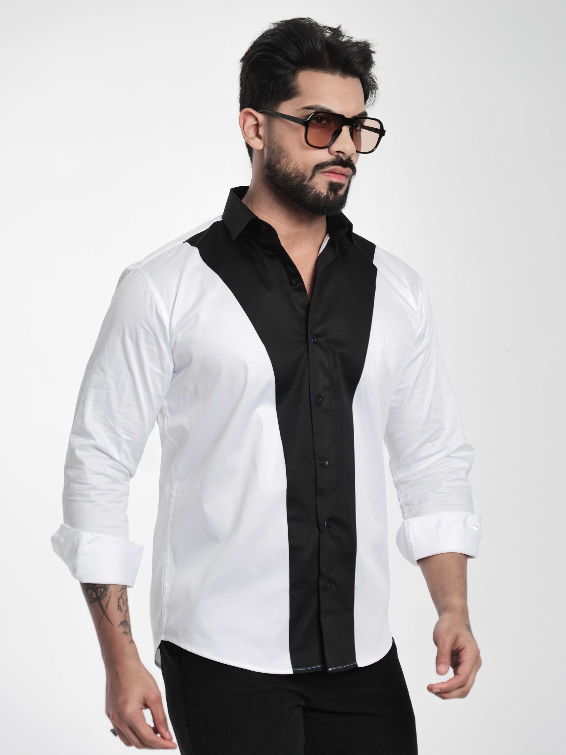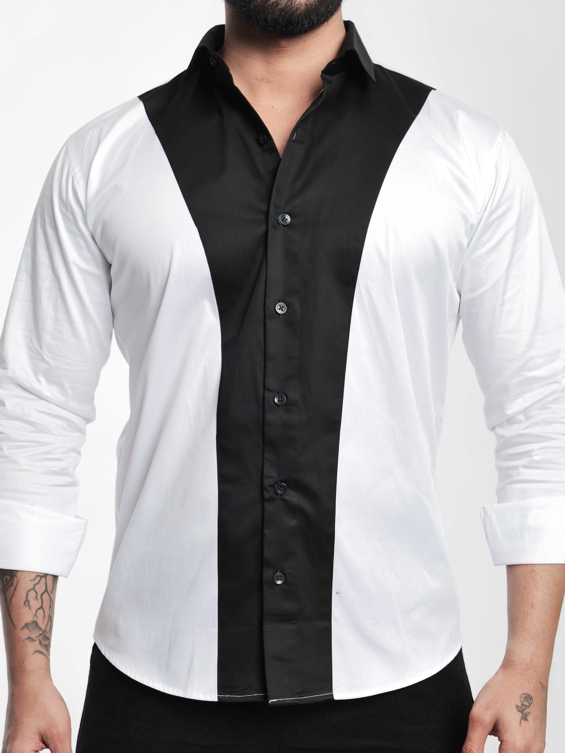 FOOMER WHITE AND BLACK CUT N SEW DESIGNER SHIRT FOR MEN'S