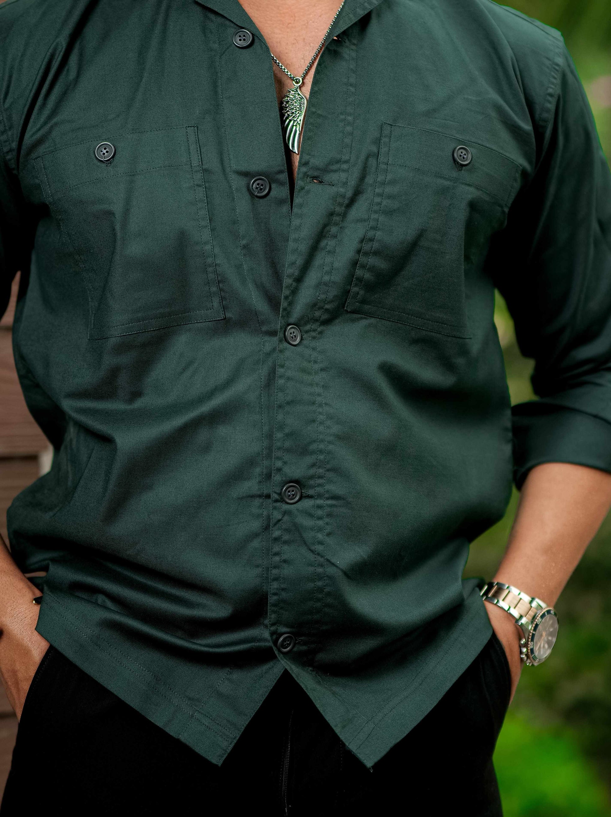 Green Oxford Cotton Over Shirt