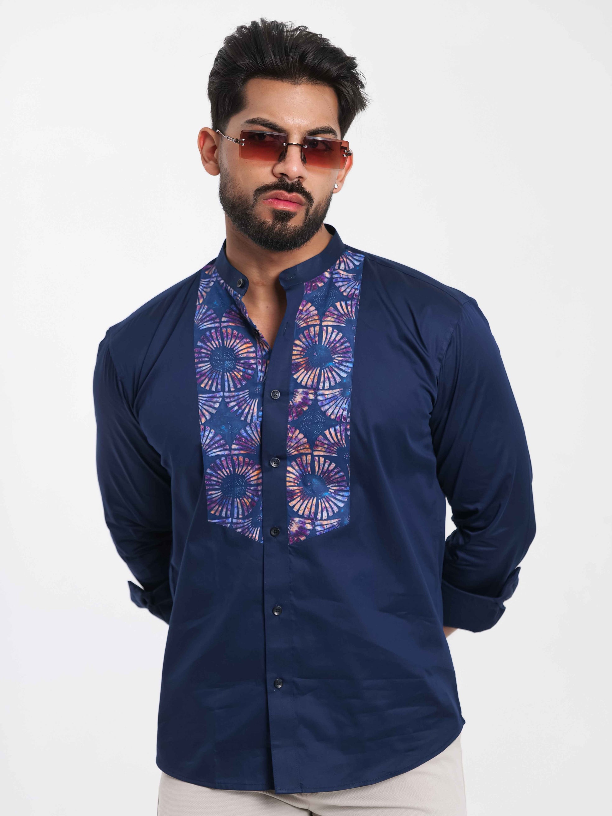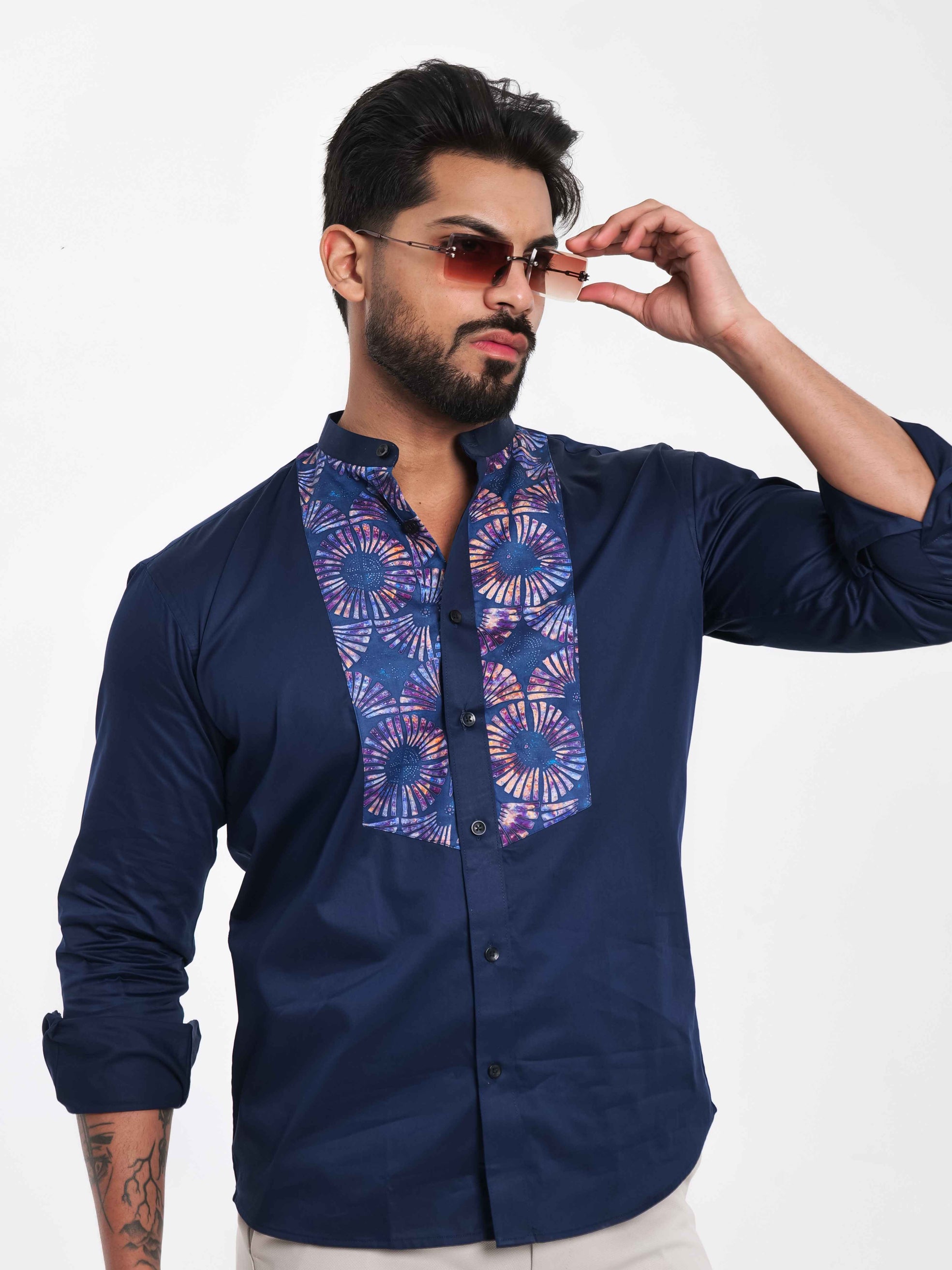 FOOMER NAVY KURTA CUT N SEW DESIGNER SHIRT FOR MEN'S