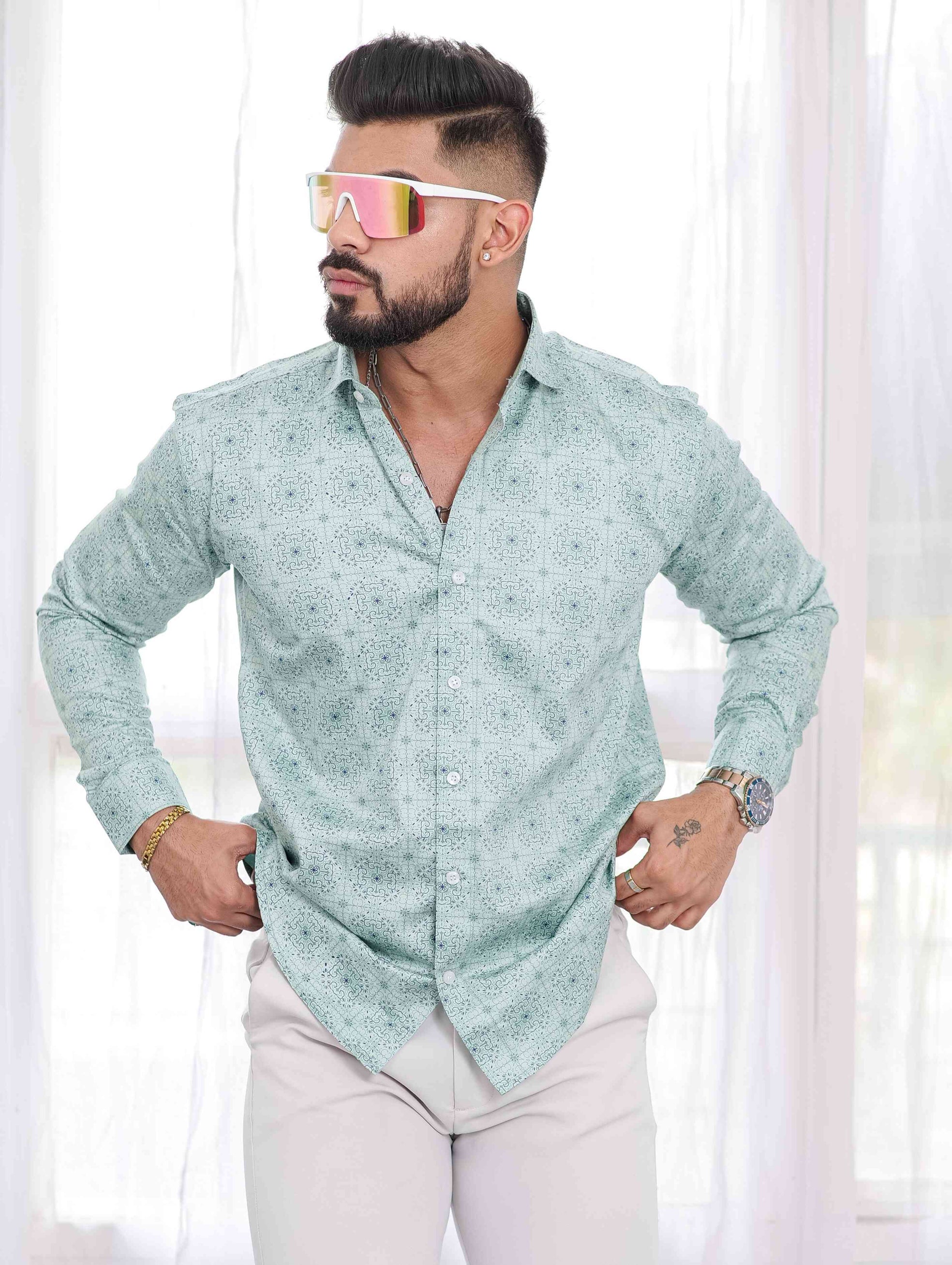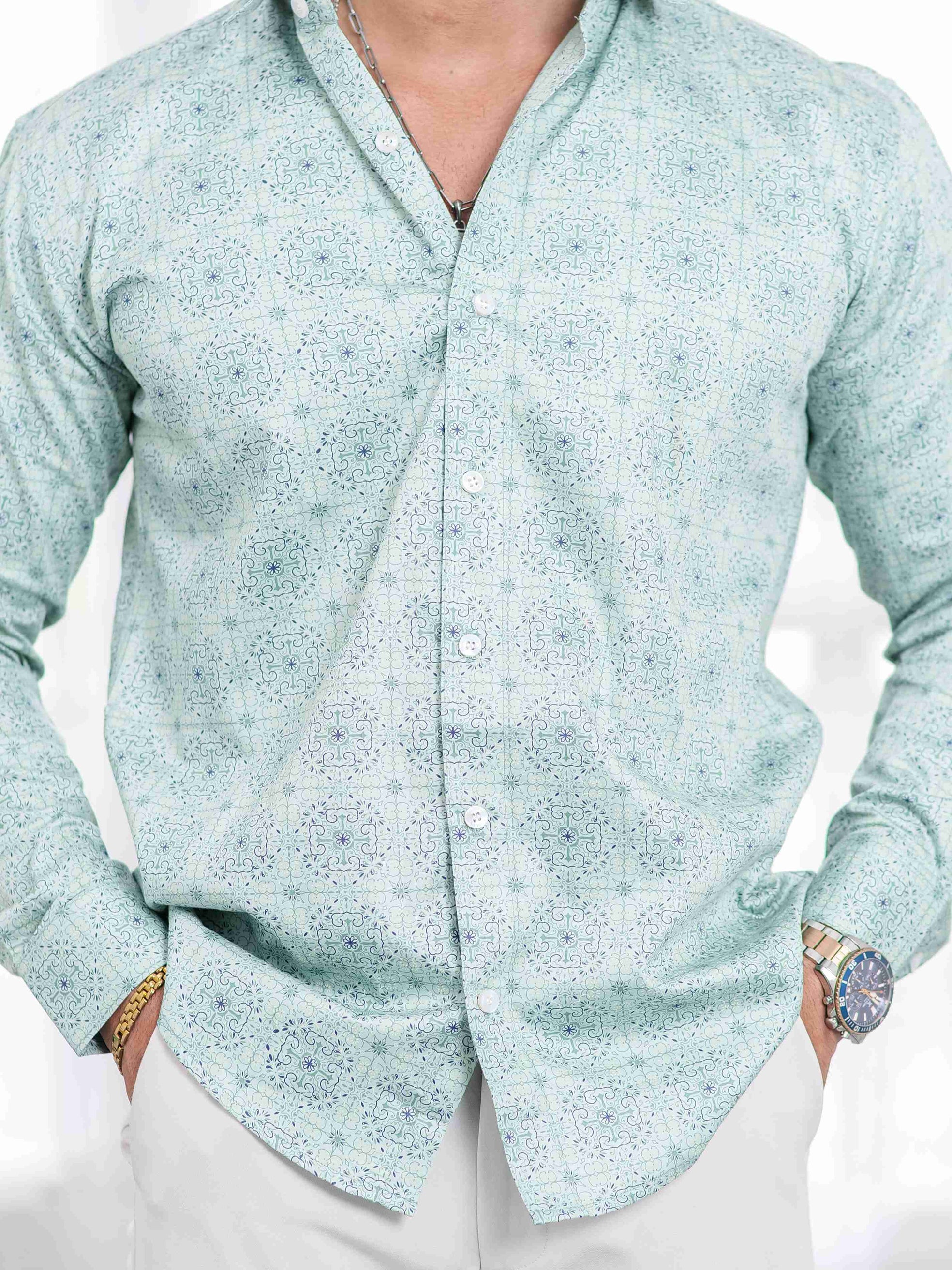 Light Green Satin Print Premium Shirt