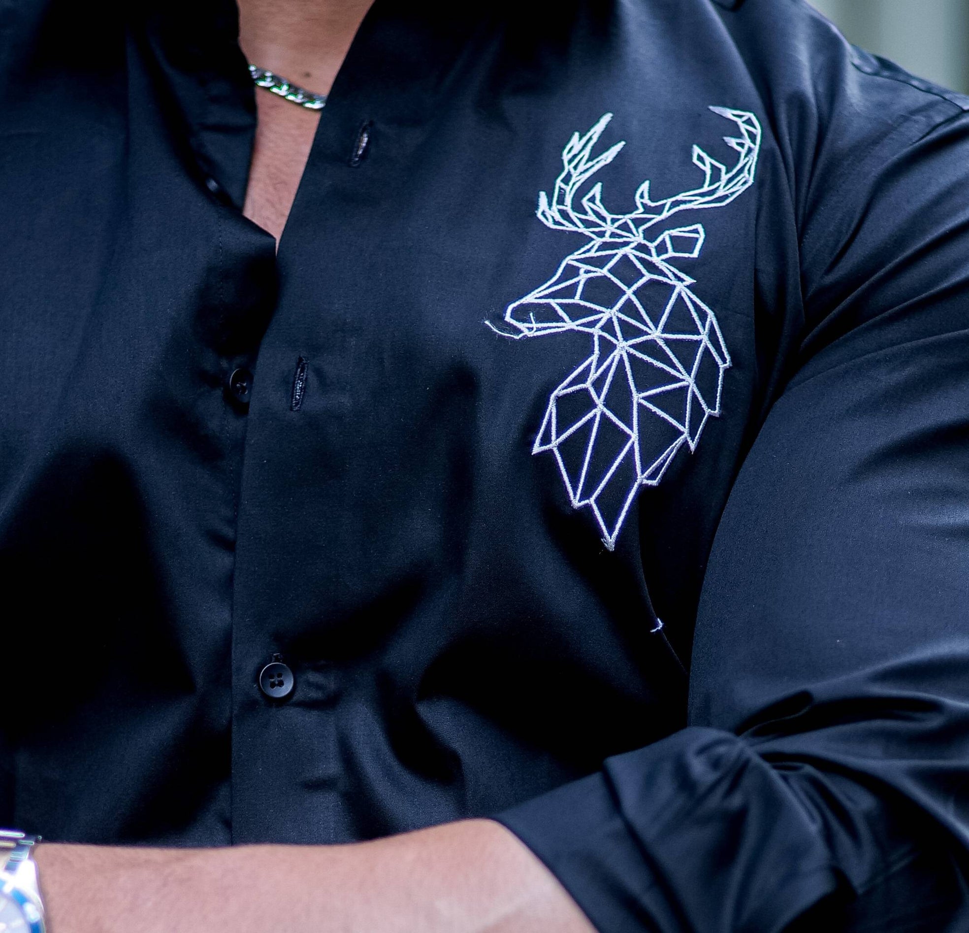 Deer Embroidered Black Premium Cotton Shirt