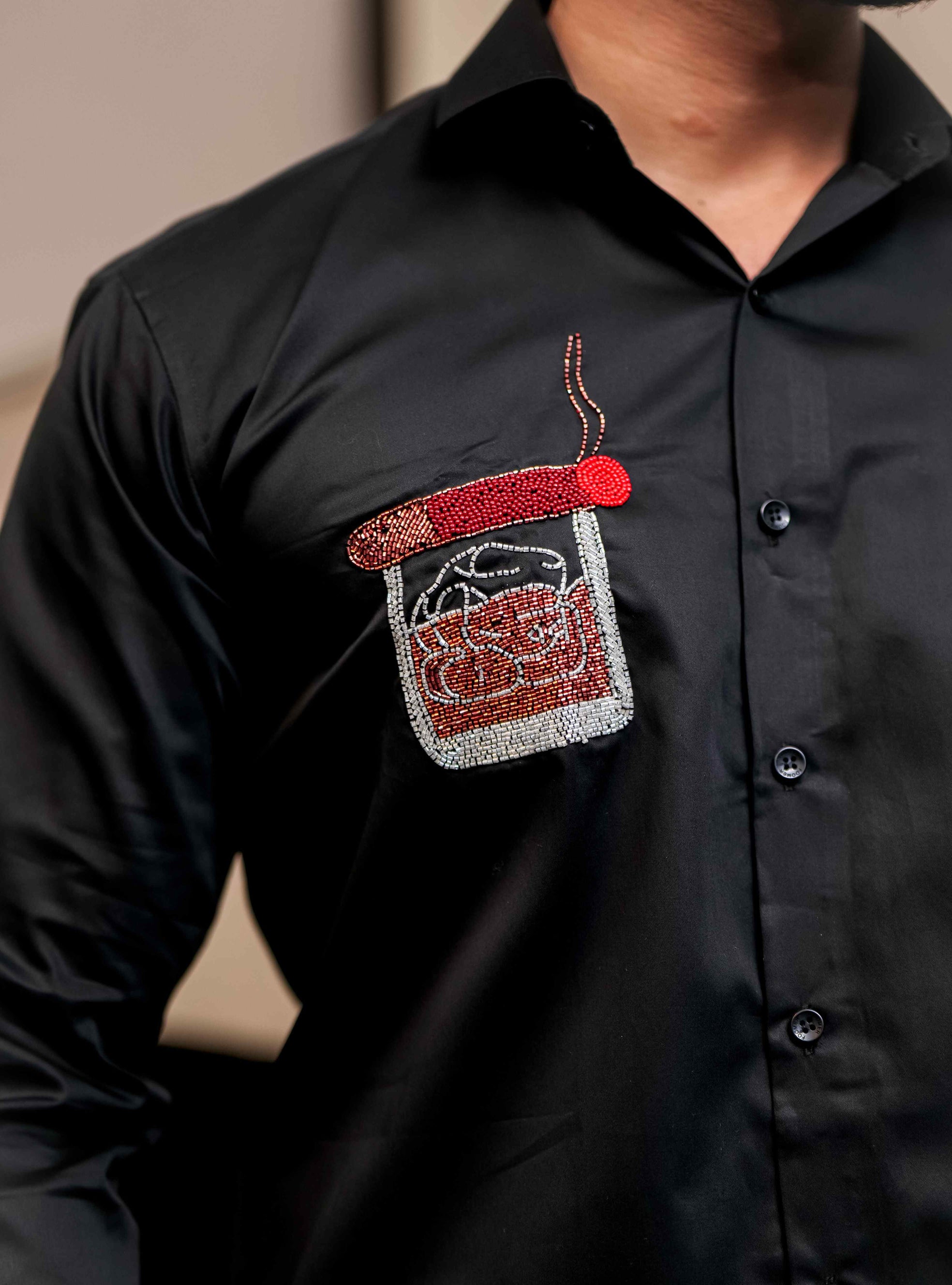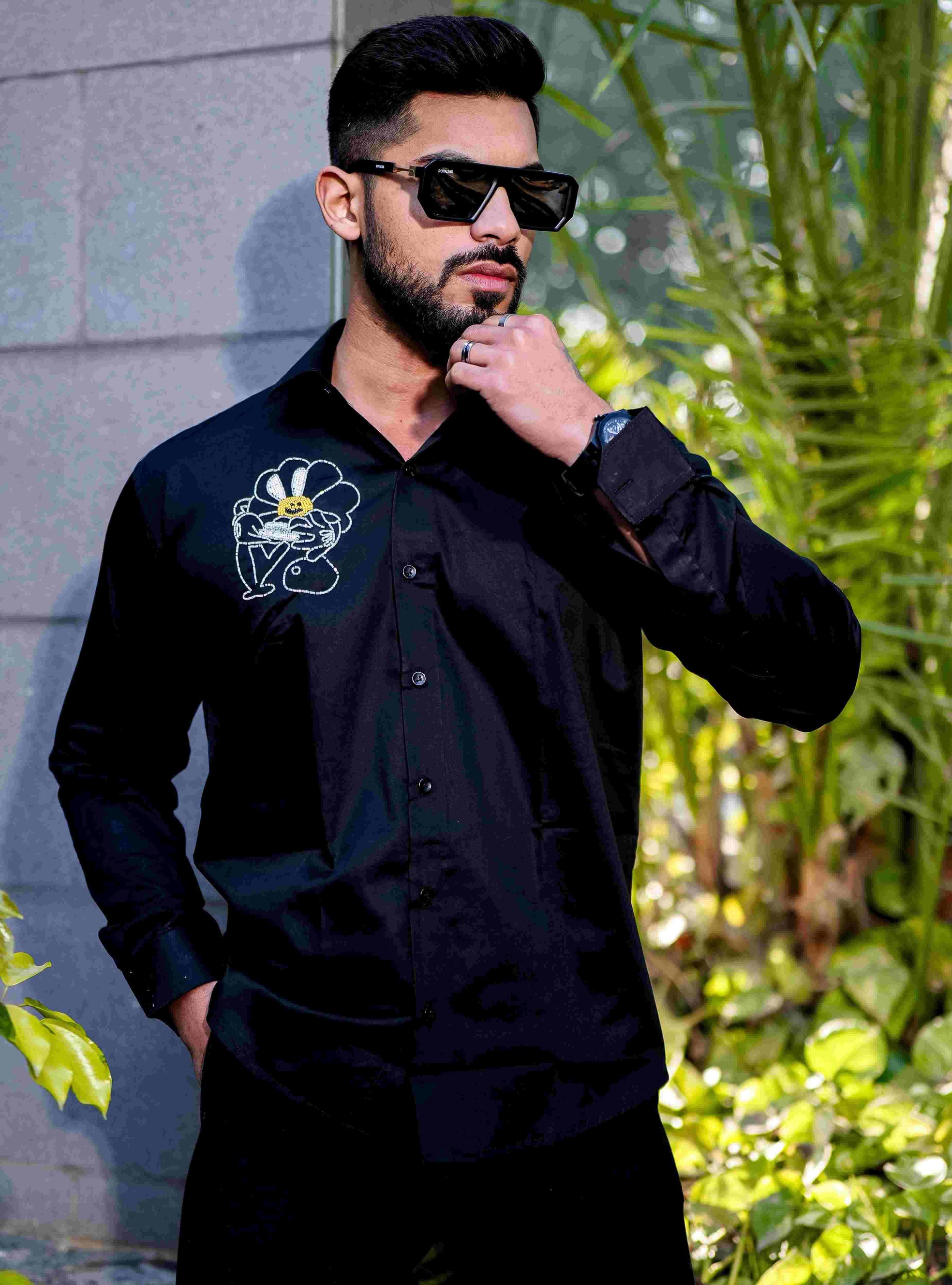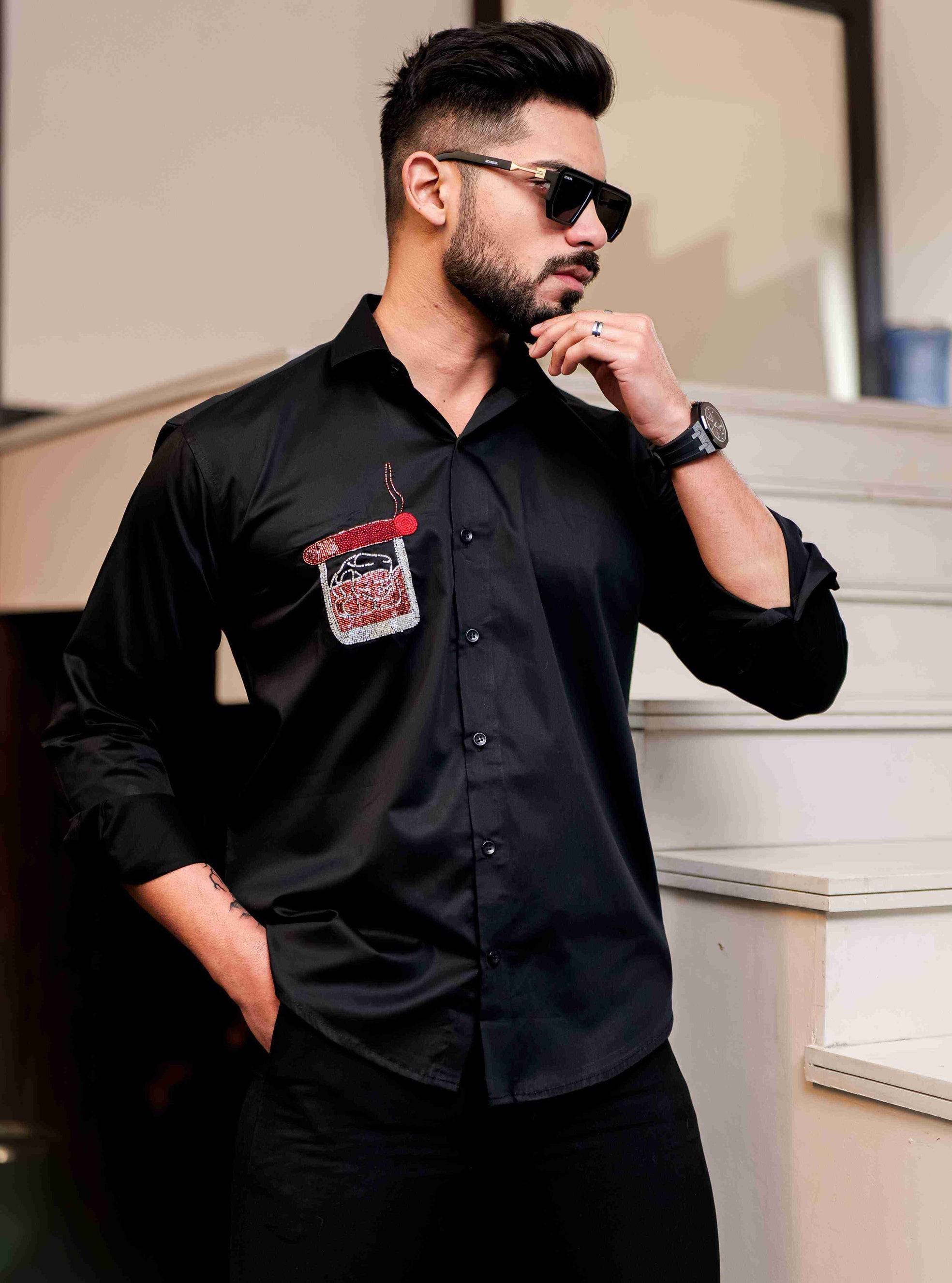 Starry Beaded Black Premium Shirt For Men