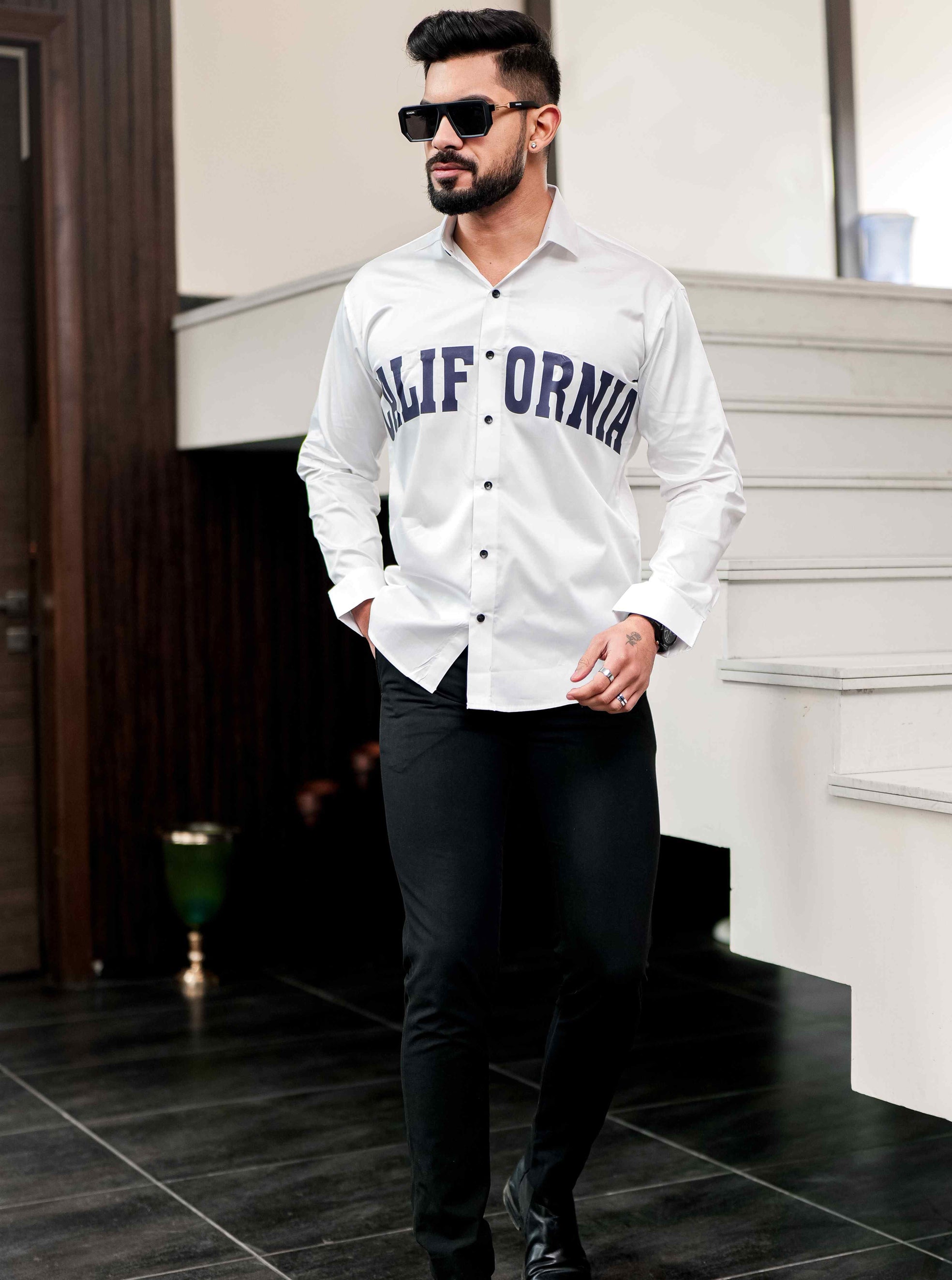 White Club Wear Printed Satin Cotton Shirt
