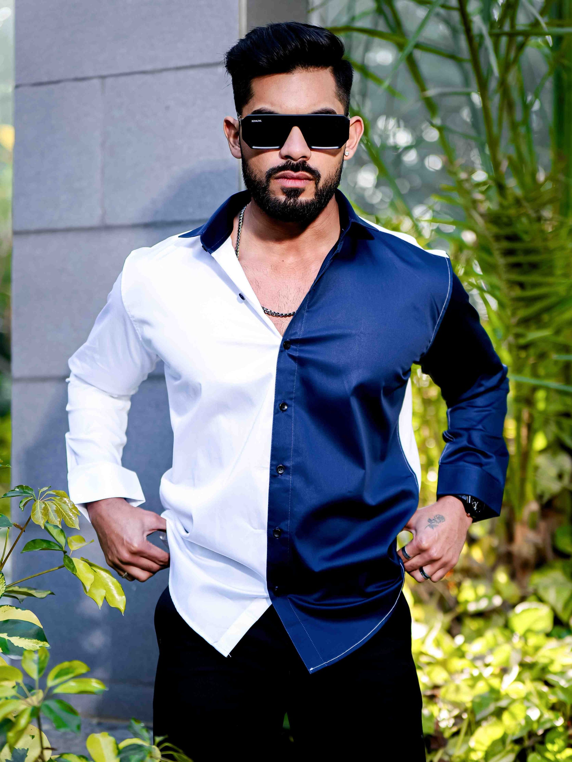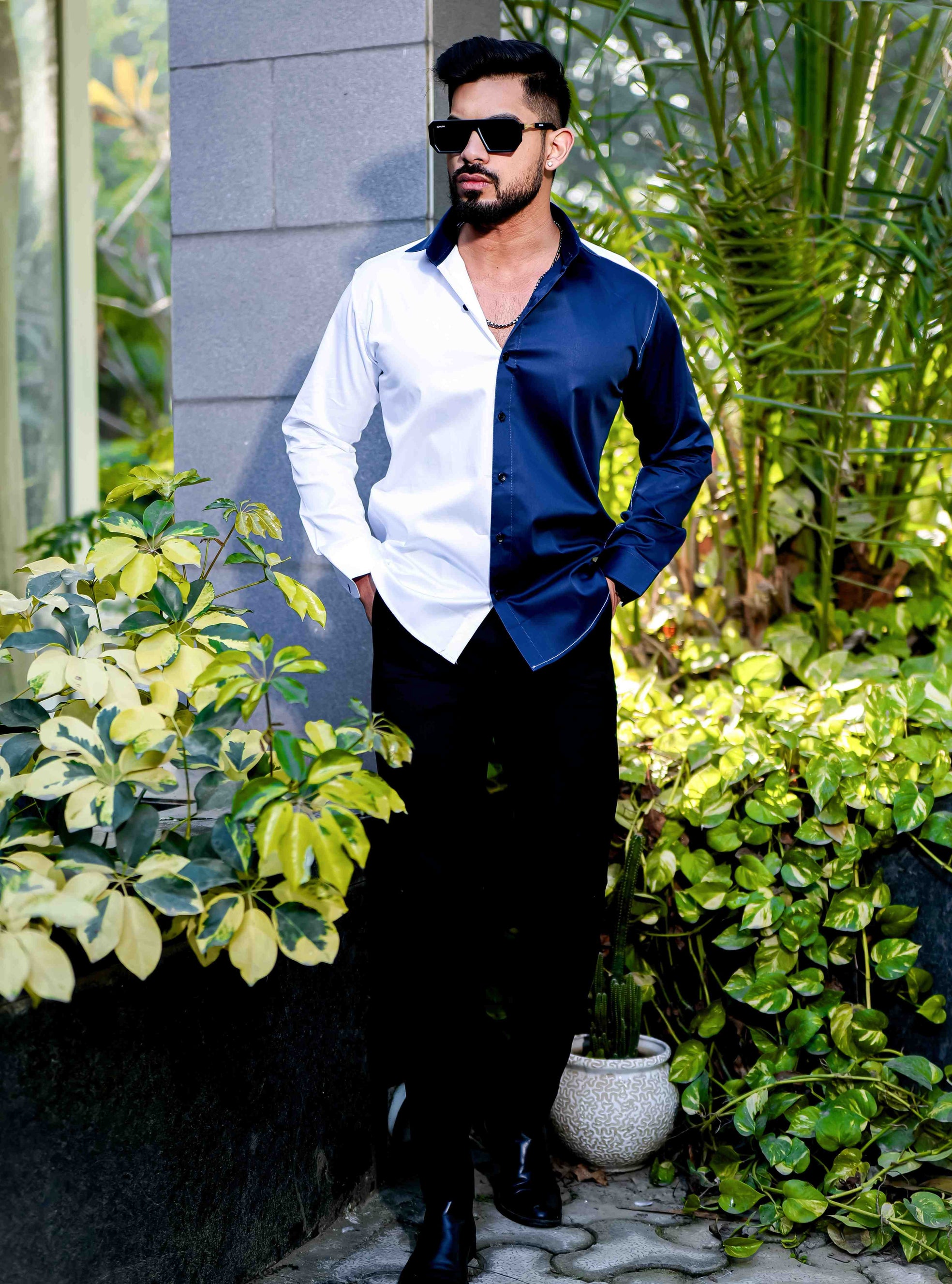 White And Black Satin Cotton Designer Shirt