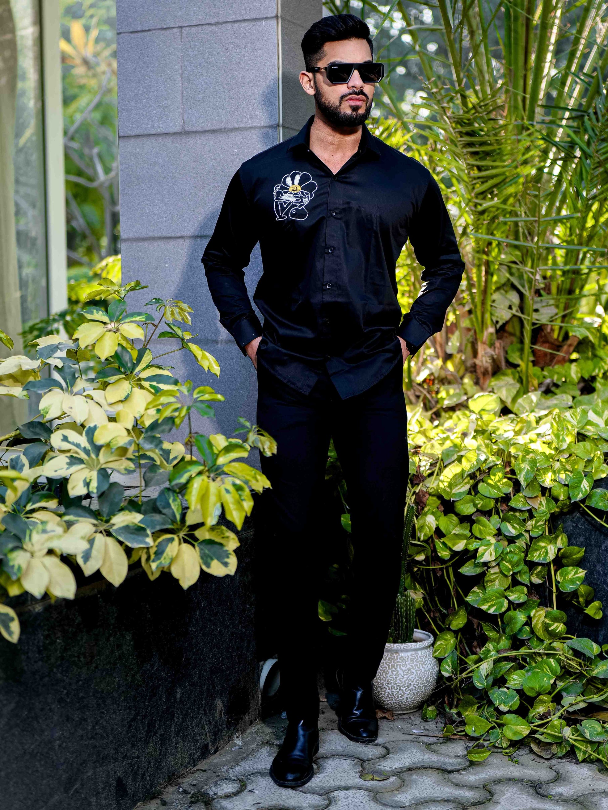 Black Mufasa Embroidered Premium Cotton Shirt For Men