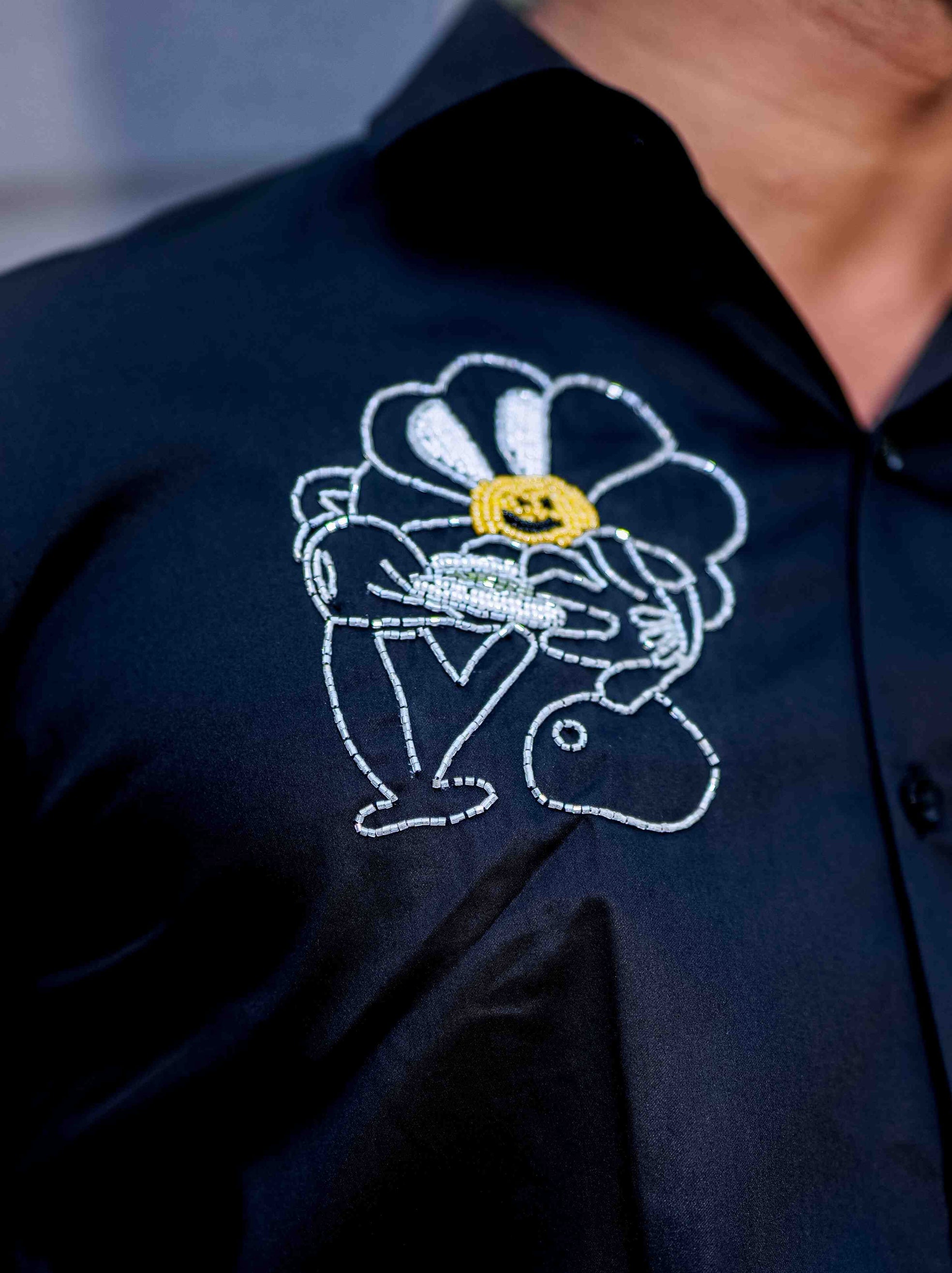 Black Starry Beaded Satin Cotton Premium Party Shirt
