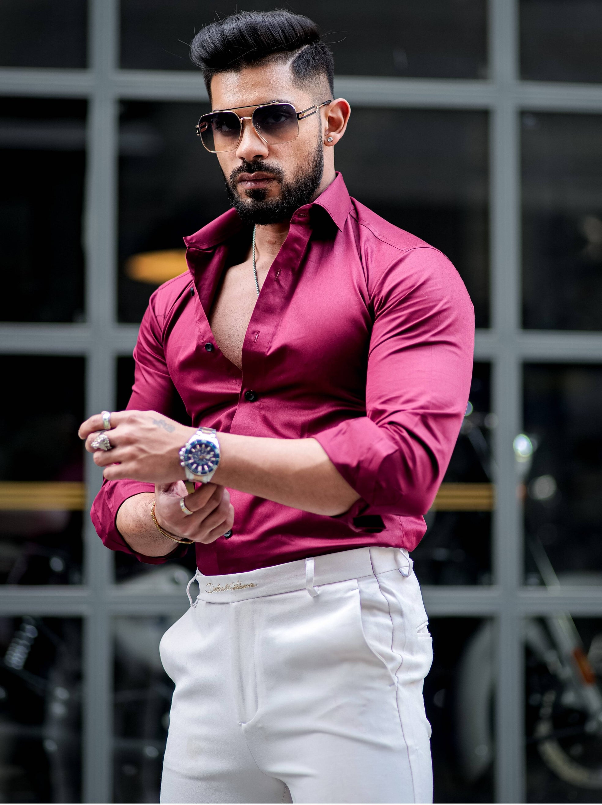 Maroon Rhinestone Hand Work Satin Cotton Premium Shirt
